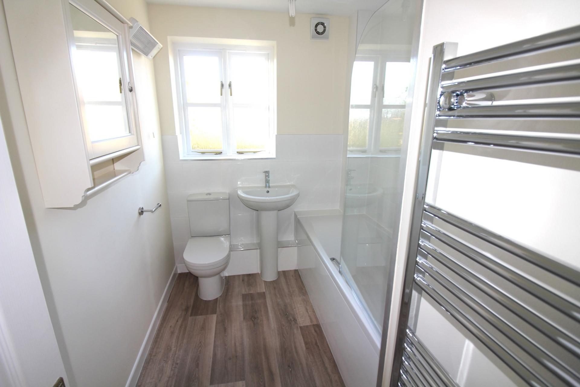 A REFURBISHED THREE BEDROOM END OF TERRACE HOUSE WITH GARAGE & SOUTH FACING REAR GARDEN QUIETLY SITUATED IN THIS POPULAR VILLAGE JUST AROUND THE CORNER FROM THE COMMUNITTY SHOP. THE ACCOMMODATION IS AS FOLLOWS: GROUND FLOOR: ENTRANCE HALL, WC, REFURBISHED KITCHEN, LIVING/DINING ROOM WITH DOOR TO GARDEN. FIRST FLOOR: THREE BEDROOMS, REFURBISHED BATHROOM. OTHE DETAILS: REDECORATED, NEW FLOORING, ELECTRIC HEATING DOUBLE GLAZING. OUTSIDE: FRONT & REAR GARDEN, GARAGE. NO ONWARD CHAIN.