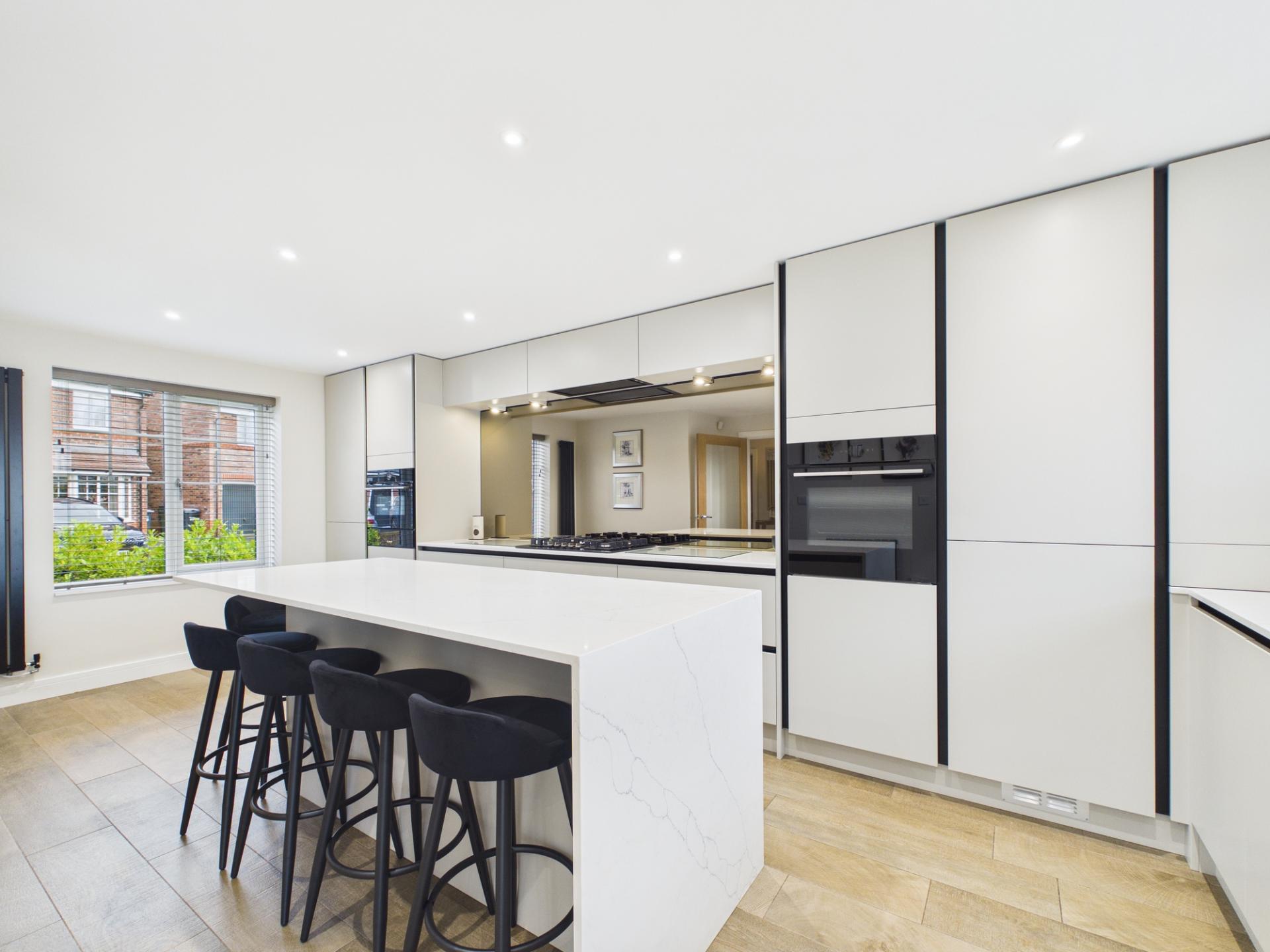 The ground floor welcomes you into an entrance hallway and having accommodation comprising of a cloakroom/WC, utility, and a wonderfully designed, contemporary kitchen complete with integrated appliances and dual aspects that maximise natural light. Unique French doors in the dual aspect living room lead to a picturesque rear garden, blending indoor and outdoor living beautifully.