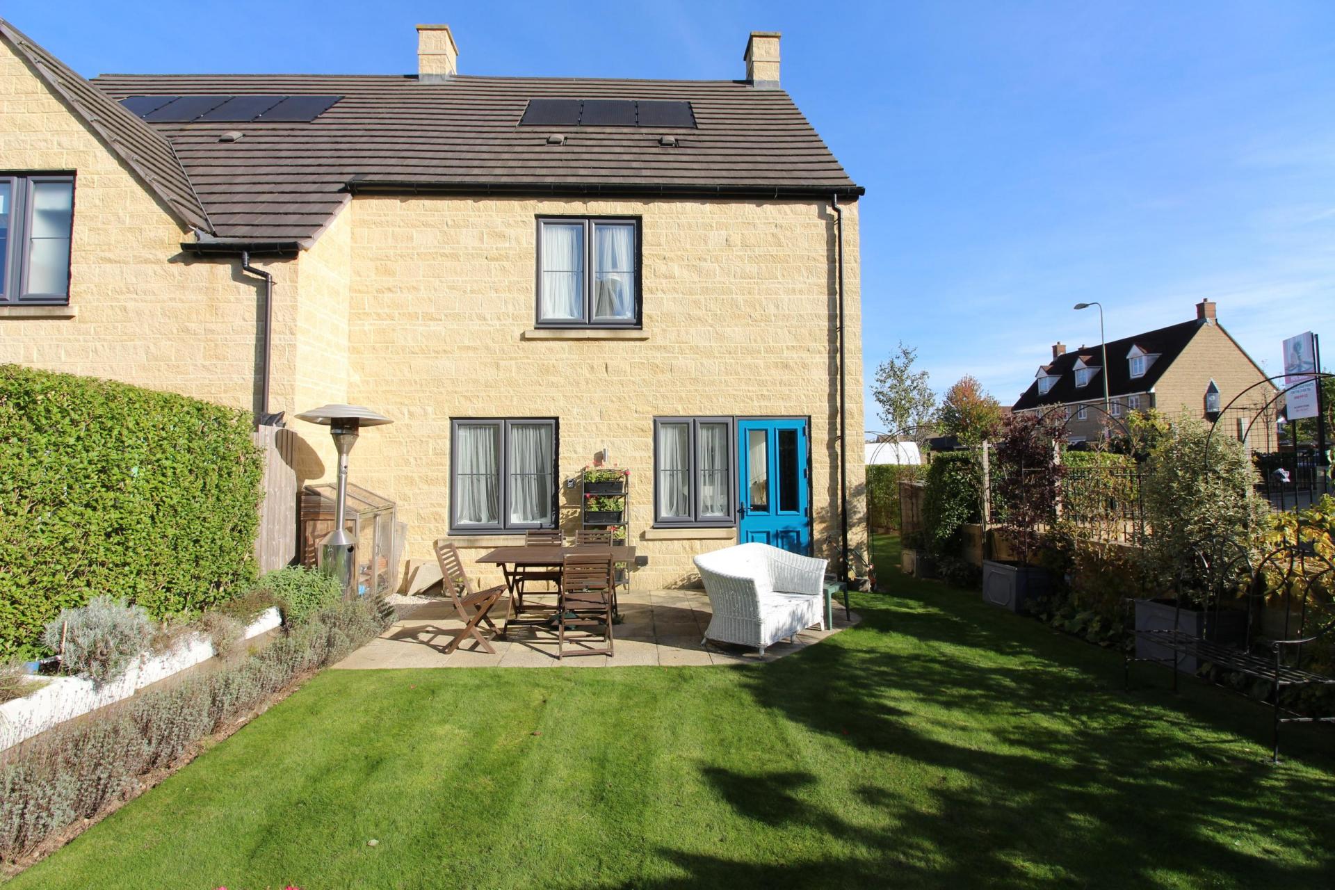 CONVENIENTLY LOCATED JUST AROUND THE CORNER FROM MARKS & SPENCER FOOD HALL, CHIPPING NORTON HEALTH CENTRE & A REGULAR BUS STOP FOR OXFORD, THIS BEAUTIFULLY PRESENTED STONE BUILT HOUSE (CONSTRUCTED CIRCA. 2019) HAS AN EAST-WEST ORIENTATION ON A CORNER PLOT SETTING WITHIN THE GATED DEVELOPMENT OF WATSON PLACE. THE ACCOMMODATION IS AS FOLLOWS: GROUND FLOOR: RECEPTION HALL, SHOWER ROOM/WC, DOUBLE BEDROOM, DOUBLE ASPECT SITTING ROOM OPENING TO GARDEN, MODERN INTEGRATED KITCHEN WITH NEFF APPLIANCES & LIFT TO FIRST FLOOR. FIRST FLOOR: STUDY LANDING, PRINCIPAL BEDROOM WITH LIFT TO GROUND FLOOR, EAST- FACING BALCONY, DRESSING ROOM + EN-SUITE BATHROOM, GUEST BEDROOM OVERLOOKING GARDENS WITH EN- SUITE SHOWER ROOM. OTHER DETAILS: LIFT & STAIRCASE, SOLAR PANELS + ELECTRIC HEATING, ANNUAL SERVICE CHARGE IN THE SUM OF £1099.39 PROVIDES WINDOW & GUTTER CLEANING, GRASS & HEDGE CUTTING FOR THIS HOUSE, UPKEEP OF COMMUNAL GARDENS. FURTHER FACILITIES ARE AVAILABLE IN WATSON PLACE INCLUDING ON SITE BISTRO/RESTAURANT ETC. & ADDITIONAL DOMESTIC/LIFESTYE SERVICES ARE AVAILABLE AS REQUIRED. OUTSIDE: LOVELY CORNER PLOT COTTAGE STYLE GARDENS LAID TO LAWN WITH DIVERSELY PLANTED FLOWER/SHRUB BORDERS, GARDEN STORAGE SHED, PAVED SEATING AREA. TO THE FRONT GARDEN THERE IS AN ADDIIONAL TIMBER STORAGE SHED WITH POWER SUPPLY (FOR ELECTRIC SCOOTERS/BUGGIES ETC.). ALLOCATED PRIVATE PARKING FOR TWO CARS (ONE IMMEDIATELY ADJACENT TO THE PROPERTY).