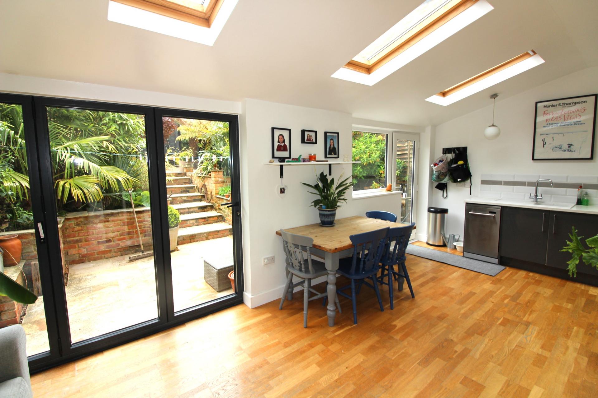 AN EXTENDED 3 - 4 BEDROOM SEMI DETACHED HOUSE WITH OFF ROAD PARKING & PRVATE LANDSCAPED GARDEN SITUATED WITHIN A SHORT WALK OF THE TOWN CENTRE. GROUND FLOOR: ENTRANCE HALL, UTILITY, WC, STUDY/BEDROOM 4, SITTING ROOM, OPEN PLAN FAMILY DINING KITCHEN TO GARDEN. FIRST FLOOR: THREE GOOD SIZED BEDROOMS (ONE EN SUITE), FAMILY BATHROOM. OTHER DETAILS: GAS CENTRAL HEATING, DOUBLE GLAZING. OUTSIDE: FRONT PRIVATE DRIVEWAY, SMALL DECORATIVE GARDEN. REAR: EXTENSIVELY LANDSCAPED PRIVATE GARDEN.