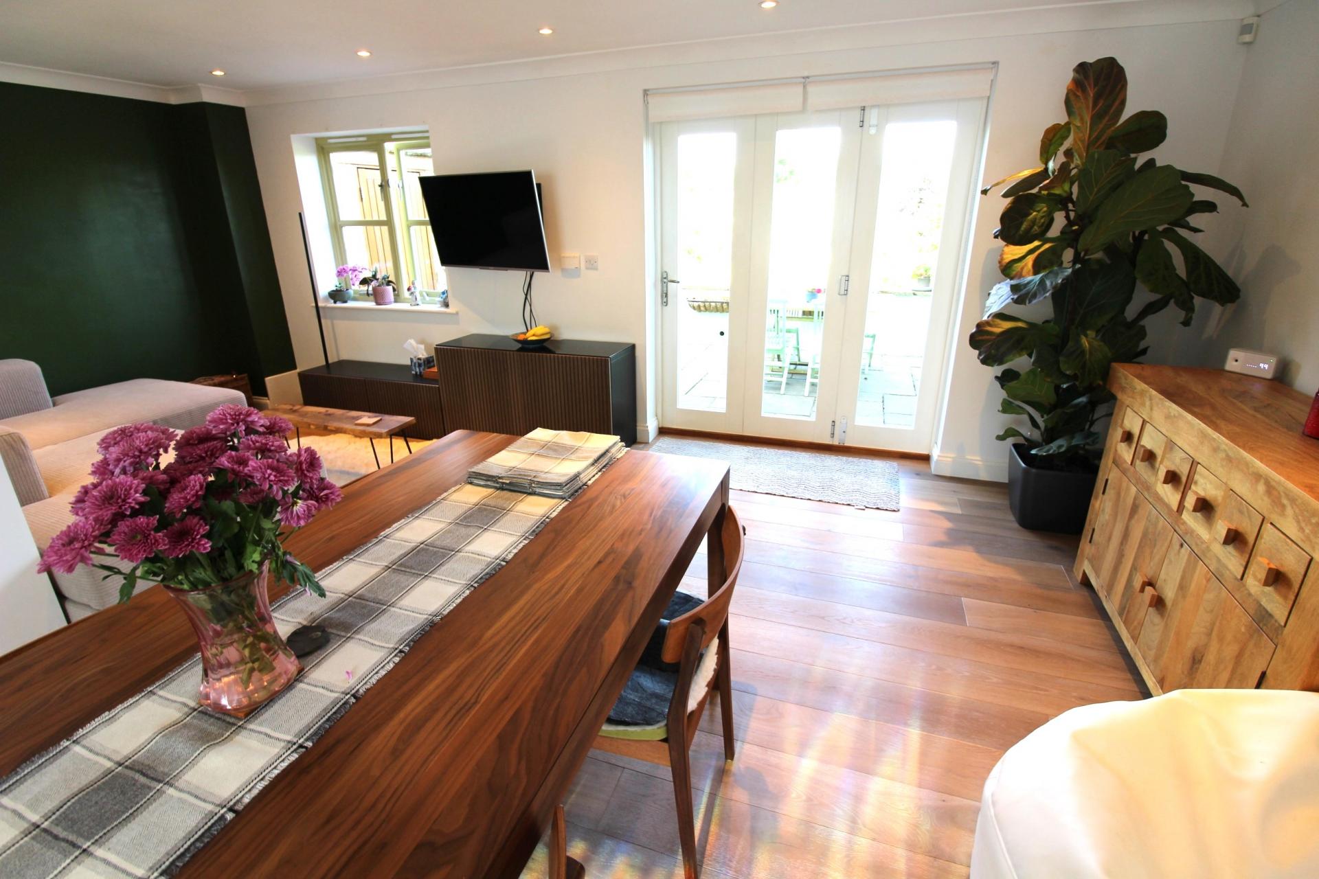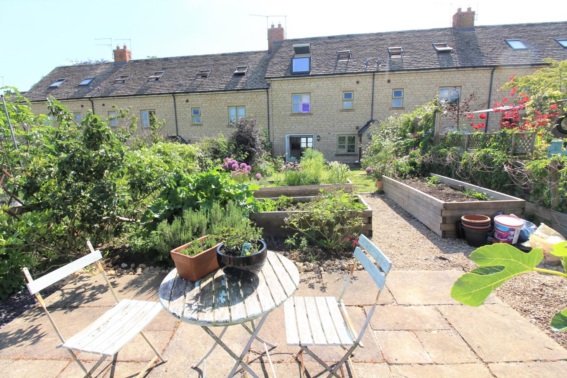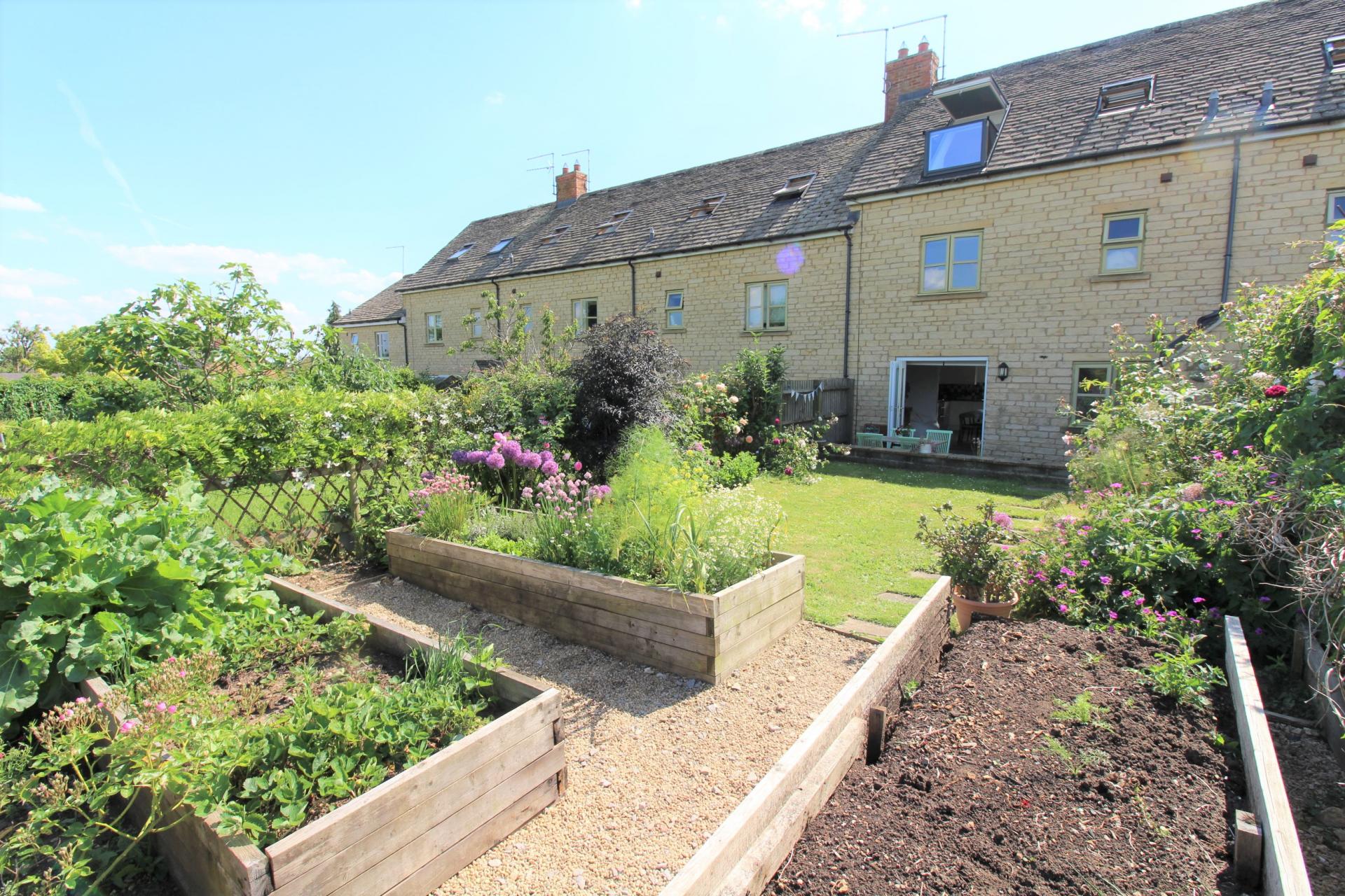 AN UPGRADED/SPACIOUS THREE BEDROOM THREE STOREY STONE BUILT COTTAGE HOME WITH TWO PARKING SPACES + LOVELY GARDENS BACKING ONTO ALLOTMENTS. GROUND FLOOR: ENTRANCE HALL, WC, OPEN PLAN LIVING/DINING/KITCHEN SPACE WITH FRENCH DOORS TO GARDEN. FIRST FLOOR: LANDING, TWO DOUBLE BEDROOMS, BATH/SHOWER ROOM. SECOND FLOOR: PRINCIPAL BEDROOM WITH VELUX BALCONY WINDOW & SKYLIGHT, BATH/SHOWER ROOM. OTHER DETAILS: NEW GAS BOILER 2022, REFITTED EN SUITE BATH/SHOWER ROOM, CUSTOM BUILT IN WARDROBE & DRAWERS TO BEDROOM 1, HARDWOOD/ENGINEERED OAK FLOORING TO GROUND & SECOND FLOOR. OUTSIDE: FRONT: PRIVATE CAR PARK WITH TWO ALLOCATED SPACES. REAR: PATIO LEADING TO COTTAGE/VEGETABLE GARDEN BACKING ONTO ALLOTMENTS (£12/MONTH RENT). FREEHOLD PROPERTY.