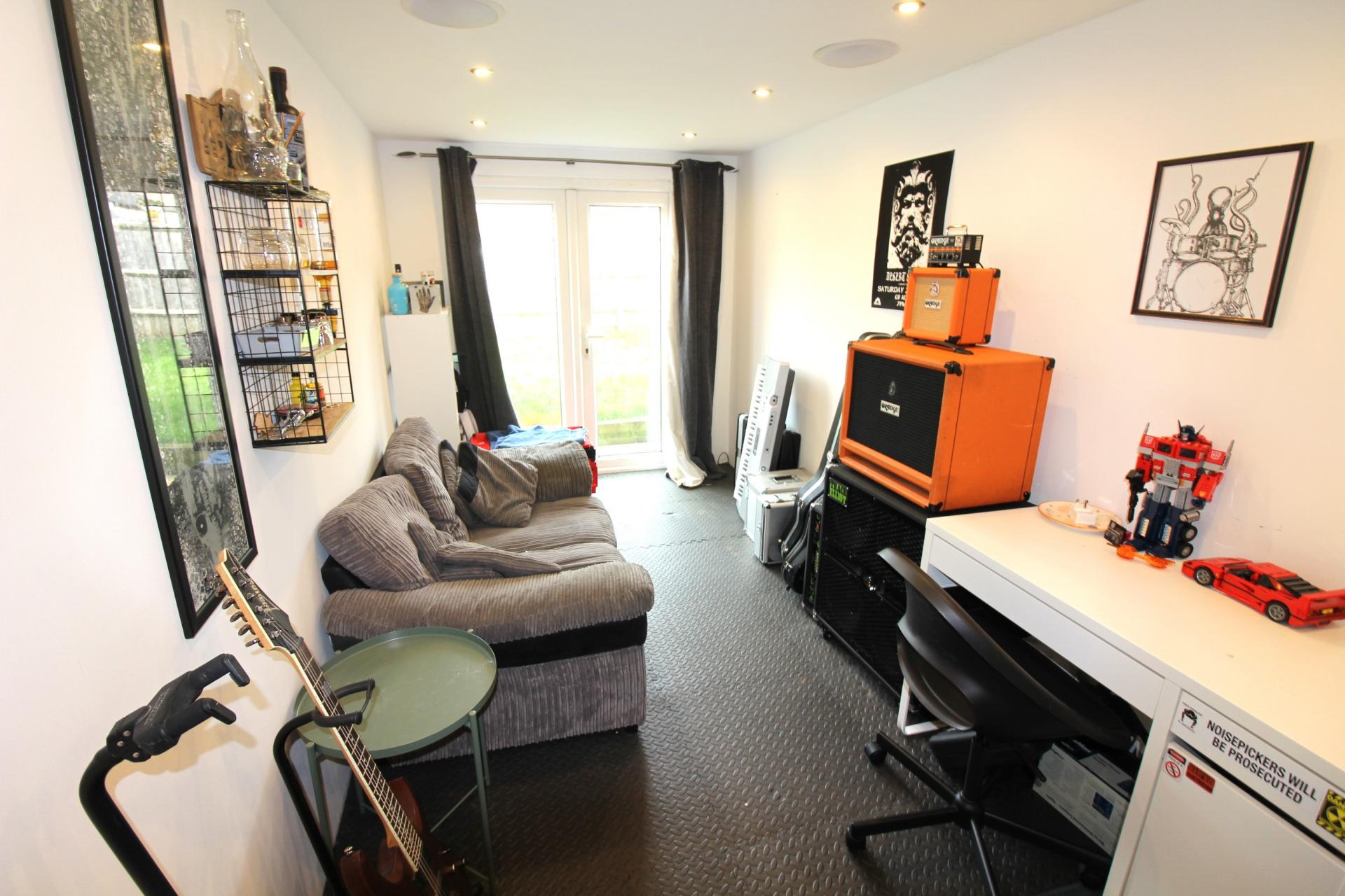 A beautifully presented energy efficient three-bedroom semi-detached family home with driveway parking for two cars, garage with power + lighting & garden studio/office. The accommodation is arranged as follows: ground floor: entrance hall, WC, living room, fully integrated kitchen dining room to garden. First floor: three bedrooms (one en-suite) family bathroom. Other details: gas central heating, double glazing. Outside: front: decorative garden, private driveway parking, garage + side access. Rear of property: private landscaped garden, studio/office with power & lighting.
