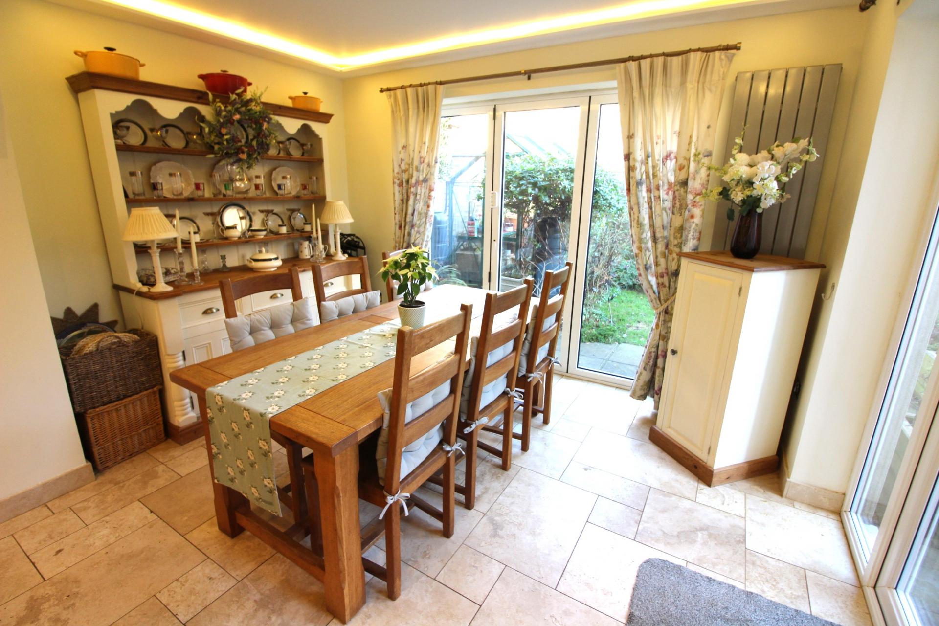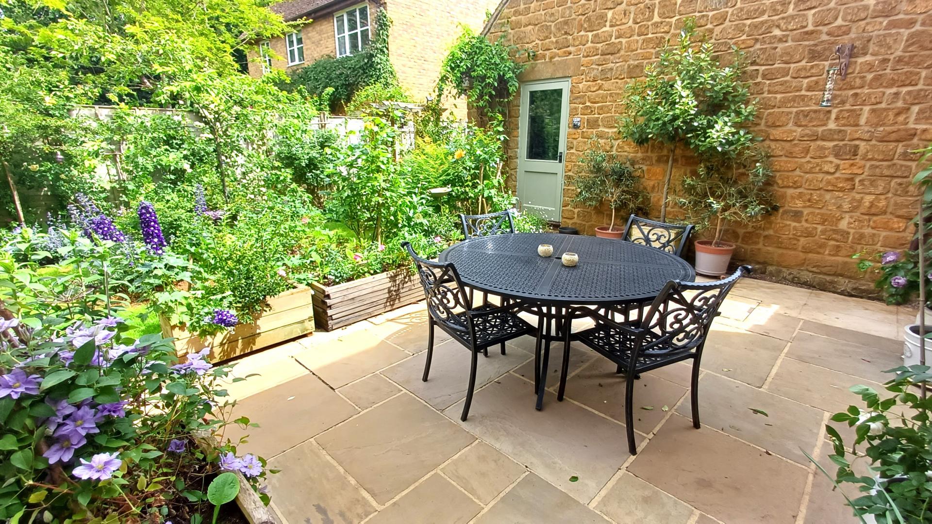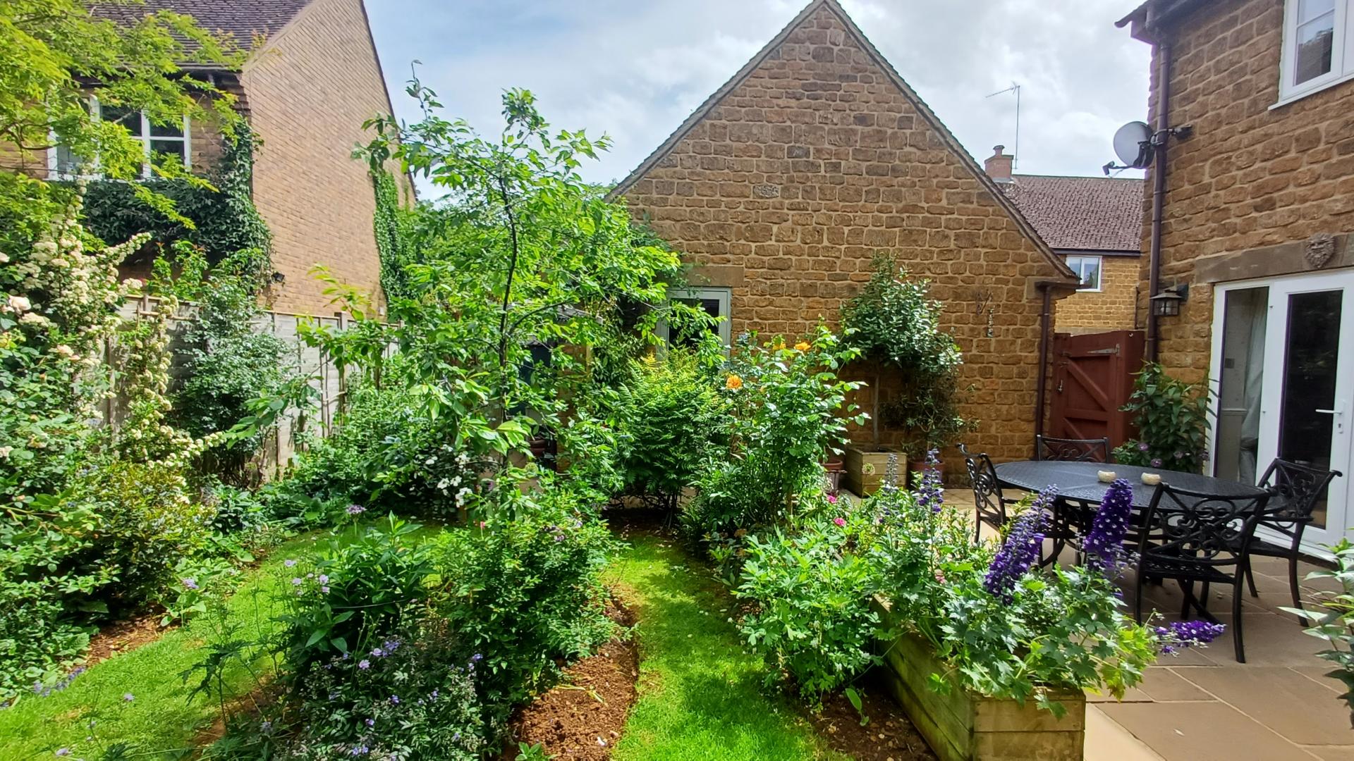 AN EXTENDED FOUR BEDROOM DETACHED HOUSE IN LOCAL IRONSTONE WITH DOUBLE GARAGE & LOVELY COTTAGE STYLE GARDENS QUIETLY SITUATED IN THIS EXCEPTIONALLY POPULAR VILLAGE WITH EXTENSIVE FACILITIES. THE ACCOMMODATION IS ARRANGED AS FOLLOWS: GROUND FLOOR: ENTRANCE HALL, STUDY, LIVING ROOM WITH WOOD BURNING STOVE & FRENCH DOORS TO GARDEN, FAMILY DINING KITCHEN (25'8" X 14'4") WITH BI-FOLD DOORS TO GARDEN, UTILTY ROOM + WC WITH ACCESS TO GARDEN. FIRST FLOOR: PRINCIPAL BEDROOM SUITE WITH VAULTED CEILING + DRESSING ROOM & EN-SUITE SHOWER ROOM, THREE FURTHETR BEDROOMS, FAMILY BATHROOM. OTHER DETAILS: OIL FIRED CENTRAL HEATING, DOUBLE GLAZING. OUTSIDE: FRONT: DECORATIVE GARDEN WITH BIRCH TREE. REAR: DOUBLE WIDTH DRIVEWAY, DOUBLE GARAGE WITH POWER, LIGHTING & MEZZANINE STORAGE, PRIVATE ENCLOSED GARDEN EXTENSIVELY PLANTED WITH CREATIVITY & IMAGINATION (SEE SUMMER PHOTOGRAPHS), DOOR TO GARAGE, GATED SIDE ACCESS.