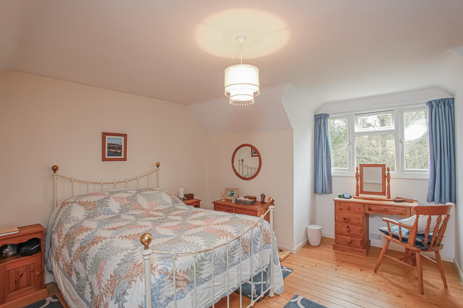 This is an immaculately presented detached house, quietly situated in this idyllic cul-de-sac with only four other properties and occupying a total plot approaching 1/3rd acre. The accommodation offered is light and spacious and can be flexibly arranged but would most commonly be used as four good double bedrooms with two bathrooms, living/dining room and fully fitted kitchen. There is also a fully insulated garden office. The accommodation is arranged over two floors with two of the double bedrooms and one of the bathrooms on the ground floor. There is excellent built in eaves storage and an unusually large walk-in airing cupboard. Oil fired central heating is installed as is sealed unit double glazing throughout. To the front of the property there is a driveway leading to a double length garage and a pleasantly landscaped front garden. The boundary to the front of the property extends to the village brook. To the rear there is a large area of garden with sweeping lawns, offering an excellent degree of privacy and a good sized patio area.