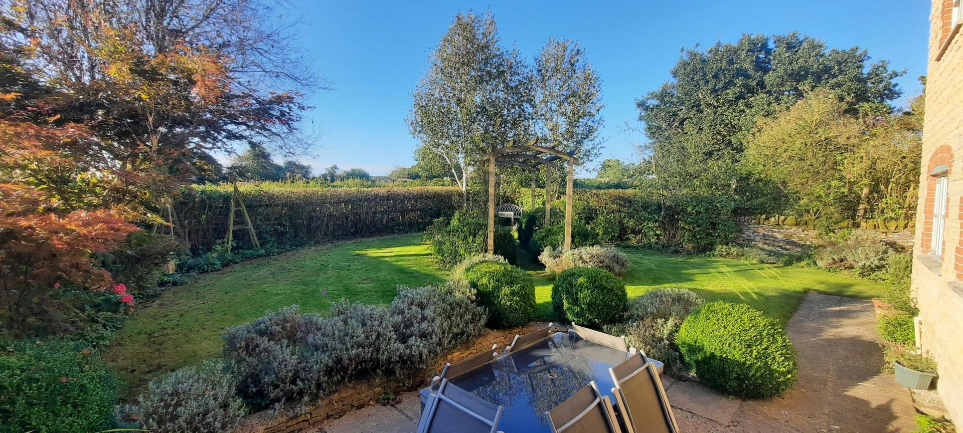 A FOUR BEDROOM STONE BUILT PROPERTY (CIRCA. 2008) WITH TWIN GARAGING SET IN DELIGHTFUL COTTAGE GARDENS & CONVENIENTLY SITUATED WITHIN A SHORT WALK OF THE VILLAGE GREEN, SCHOOL, TWO PUBLIC HOUSES + SHOP. THE ACCMMODATION IS ARRANGED AS FOLLOWS: GROUND FLOOR: UNDERFLOOR HEATING THROUGHOUT, RECEPTION HALL WITH DOOR TO INTEGRAL GARAGE, WC, DOUBLE ASPECT LIVING ROOM WITH FITTED OAK FURNITURE & OAK FLOORING, WOOD BURNING STOVE & FRENCH DOORS TO GARDEN, SEPARATE DINING ROOM WITH FITTED OAK FURNITURE & FLOORING, KITCHEN BREAKFAST ROOM WITH GRANITE WORK TOPS & RANGE COOKER, INTEGRATED FRIDGE/FREEZER, UTILITY/BOOT ROOM HOUSING BOILER, SPACE FOR WASHER DRYER, SINK & DRAINER, ACCESS TO REAR GARDEN. FIRST FLOOR: LANDING, AIRING CUPBOARD HOUSING WATER CYLINDER, ACCESS TO FULLY BOARDED LOFT WITH ELECTRIC AND LIGHT, FOUR BEDROOMS (TWO EN SUITE), (THREE WITH FITTED WARDROBES / STORAGE) FAMILY BATHROOM. OTHER DETAILS: OIL FIRED CENTRAL HEATING, DOUBLE GLAZING. OUTSIDE: FRONT: FLOWER BED, PARKING AREA, TWO GARAGES (ONE ADJACENT & INTEGRAL WITH, REMOTELY OPERATED ELECTRIC UP-AND-OVER DOOR). REAR: ACCESSED THROUGH INTEGRAL GARAGE, A BEAUTIFULLY DESIGNED COTTAGE-STYLE GARDEN FEATURING A PRIVATE PATIO SEATING AREA BORDERED BY LAVENDER, A SHAPED LAWN WITH WELL STOCKED SHRUB BORDERS, A PERGOLA WALKWAY WITH CLIMBING ROSES LEADING TO SECOND SEATING AREA, A RAISED FRUIT/VEGETABLE BED, DRYSTONE WALL & NATIVE HEDGE.