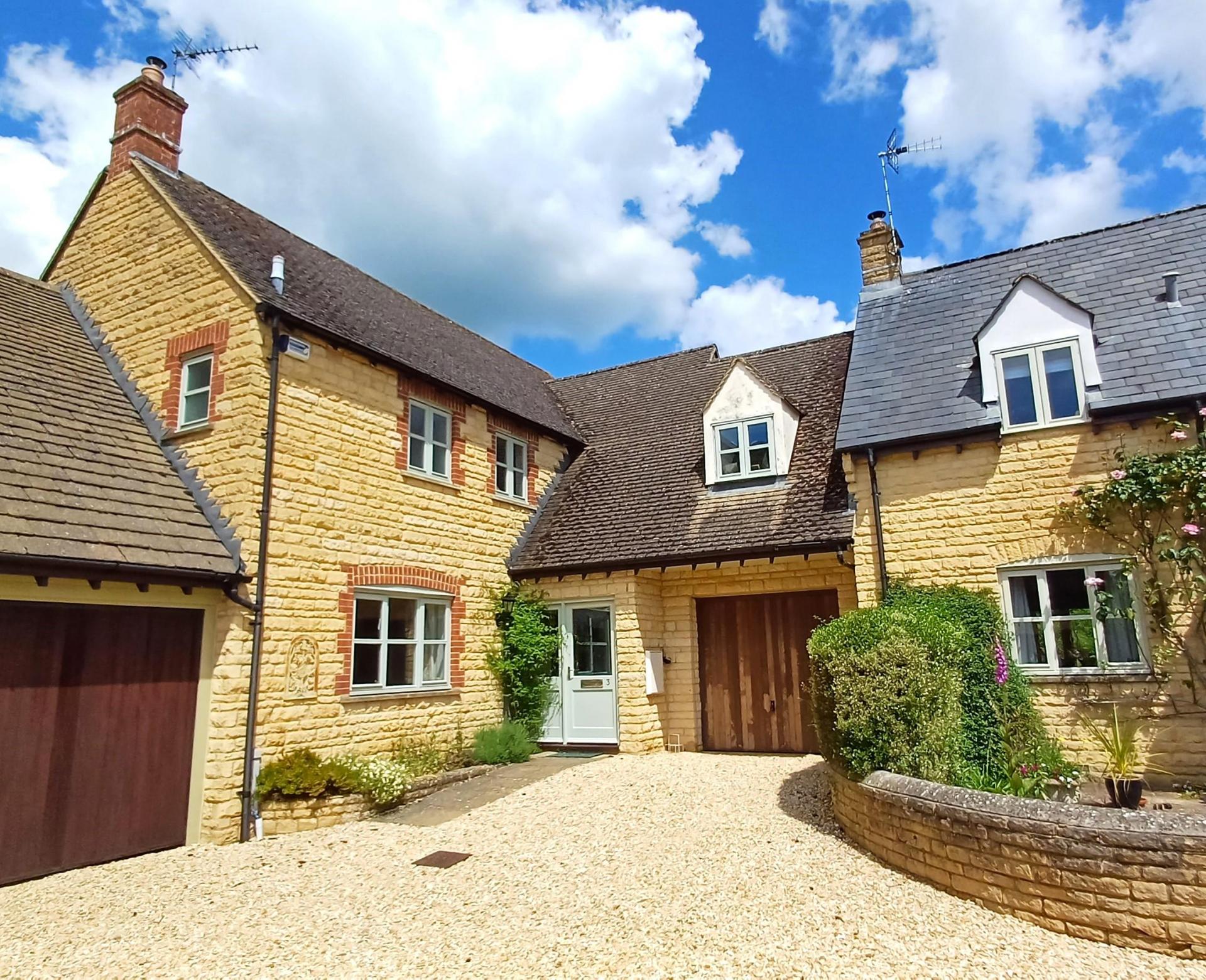 A FOUR BEDROOM COTSWOLD STONE PROPERTY (CIRCA. 2008) WITH TWIN GARAGING SET IN DELIGHTFUL COTTAGE GARDENS & CONVENIENTLY SITUATED WITHIN A SHORT WALK OF THE VILLAGE GREEN, SCHOOL, TWO PUBLIC HOUSES + SHOP/POST OFFICE.