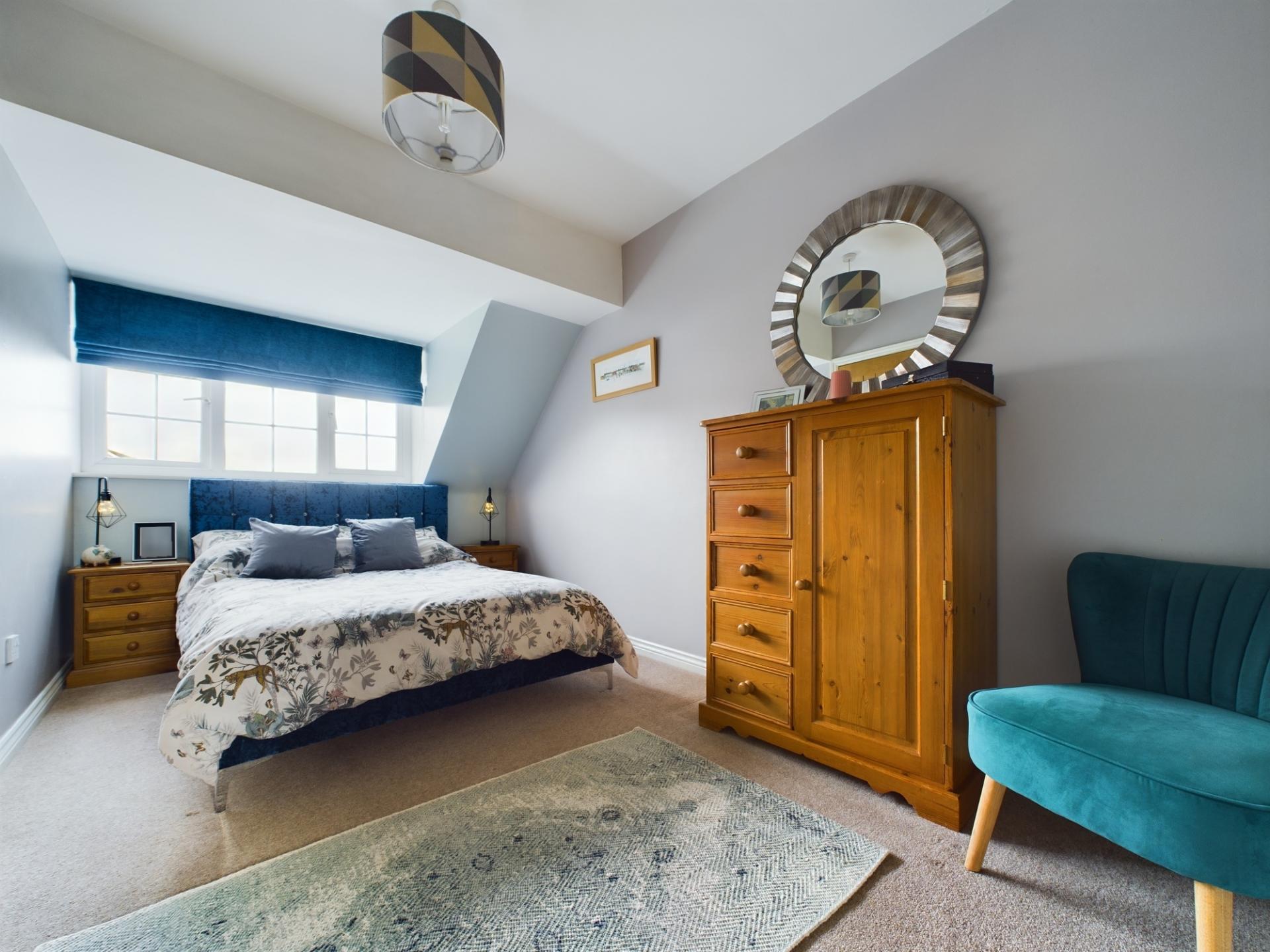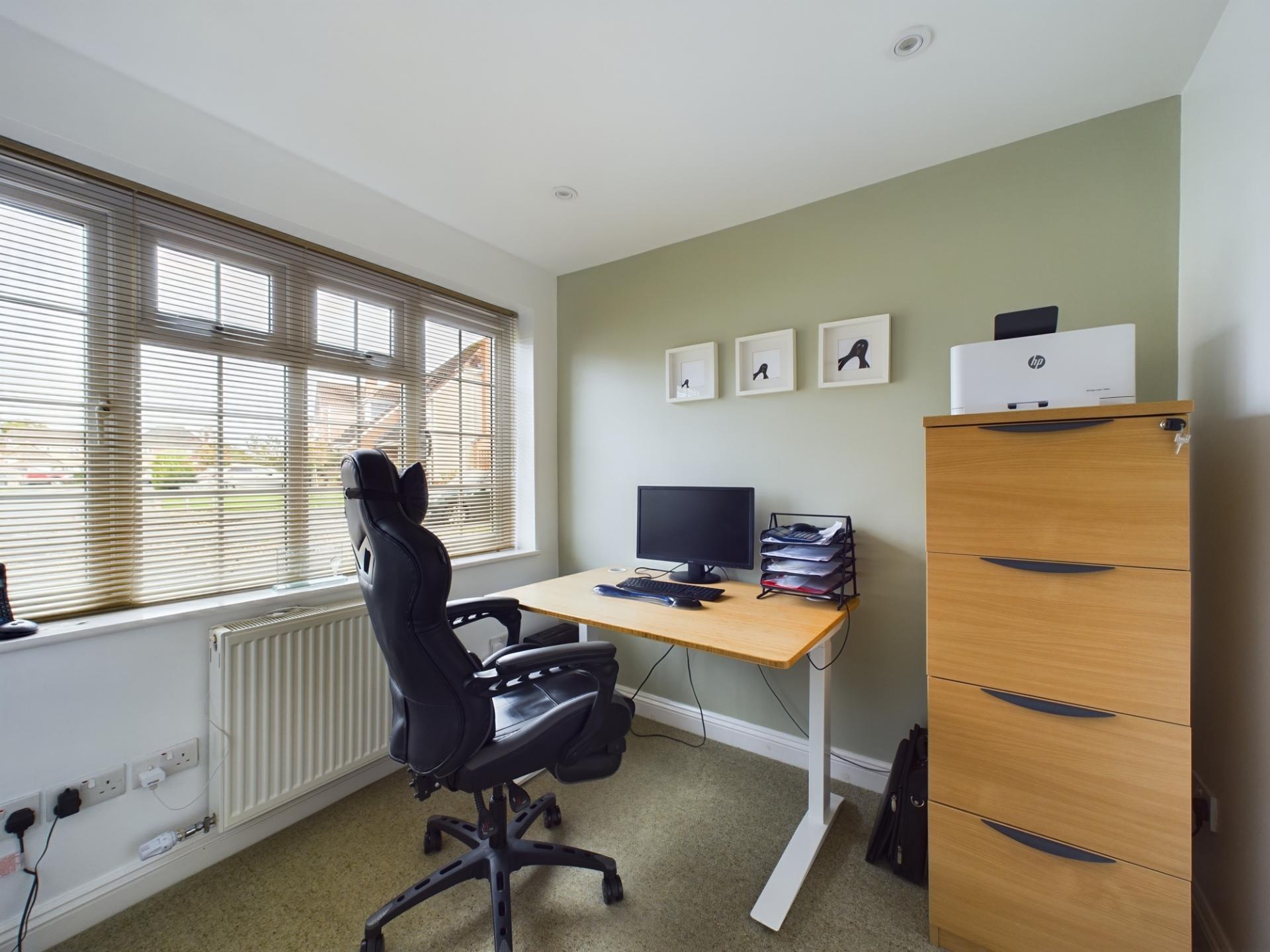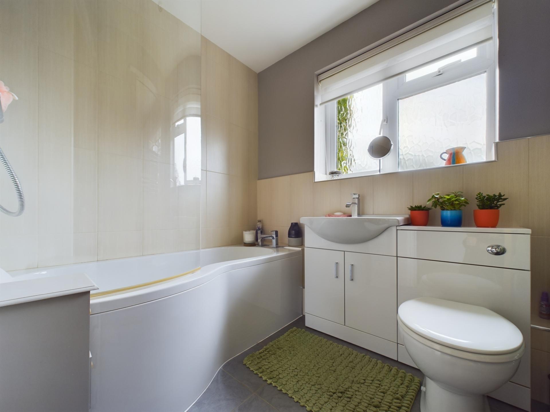 The master bedroom has a fitted double wardrobes and a front garden aspect. The en-suite has a shower cubicle with mains shower, wash hand basin and WC. Bedrooms 2 and 3 are double bedrooms with built in storage. Bedroom 4 is a single room with built in storage. The family bathroom has a P shaped panelled bath with mains shower over, wash hand basin in a vanity unit and WC. The landing has access to an insulated loft.