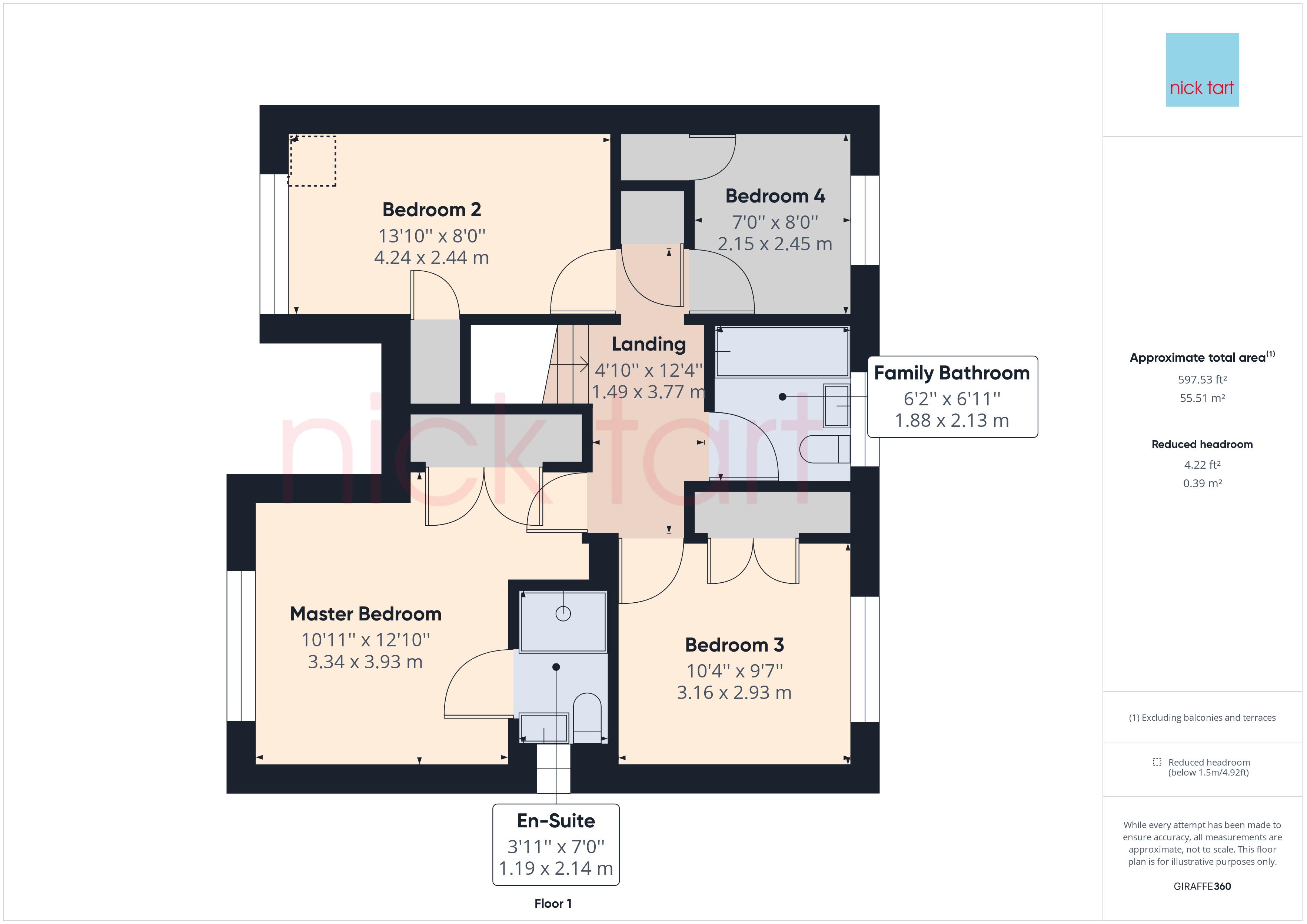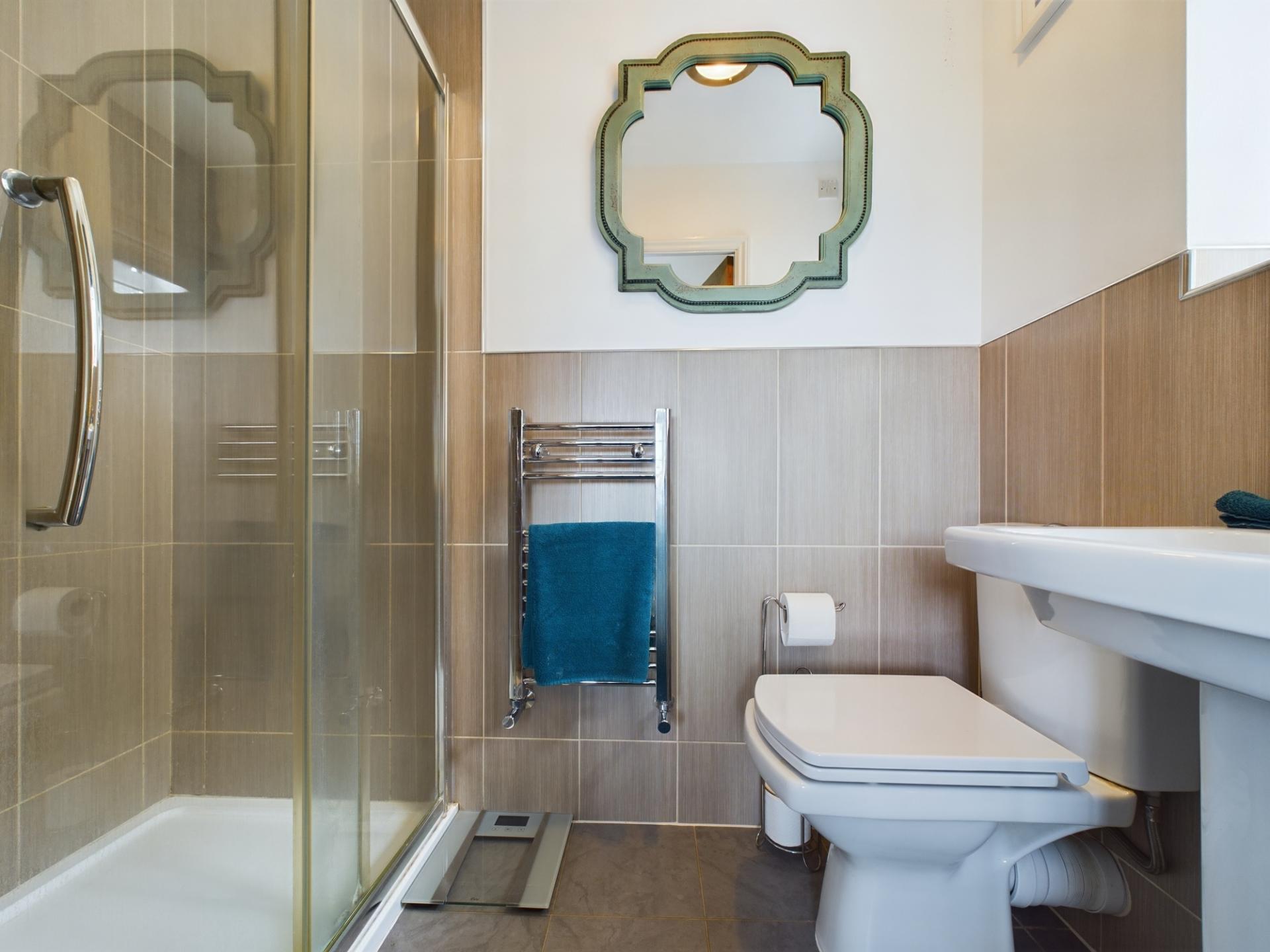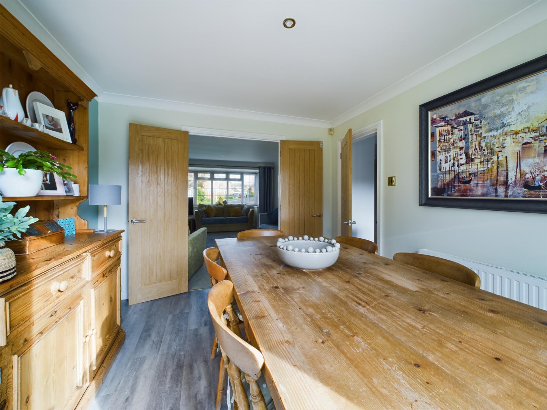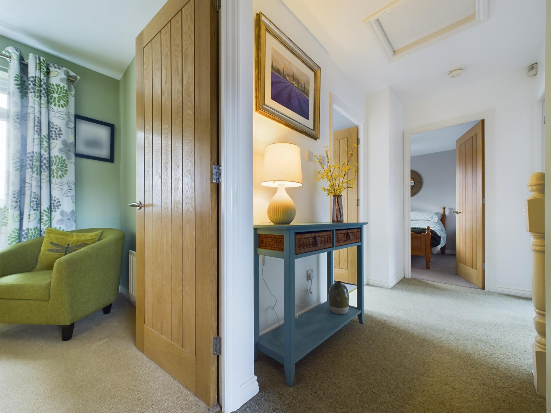 The master bedroom has a fitted double wardrobes and a front garden aspect. The en-suite has a shower cubicle with mains shower, wash hand basin and WC. Bedrooms 2 and 3 are double bedrooms with built in storage. Bedroom 4 is a single room with built in storage. The family bathroom has a P shaped panelled bath with mains shower over, wash hand basin in a vanity unit and WC. The landing has access to an insulated loft.