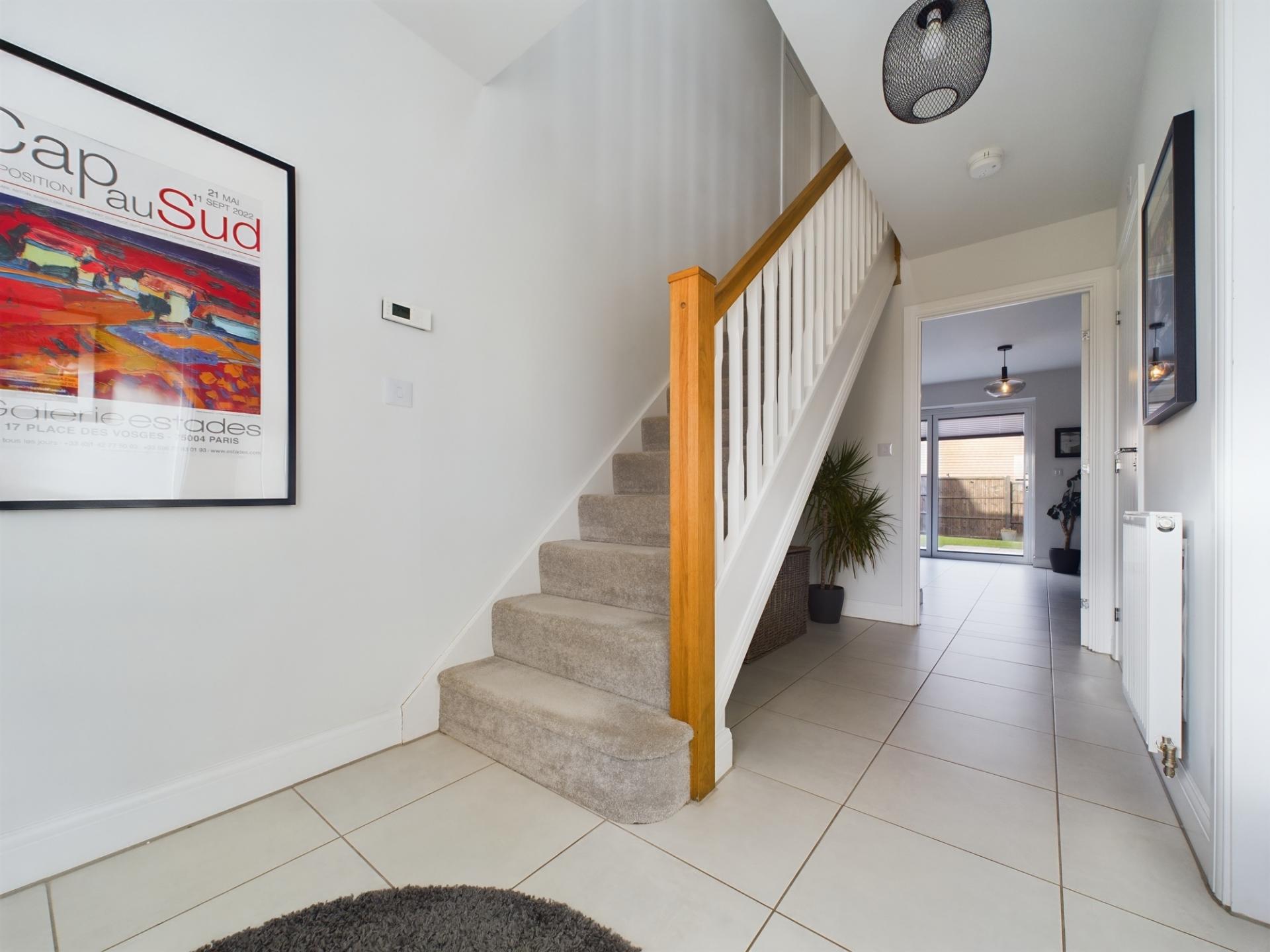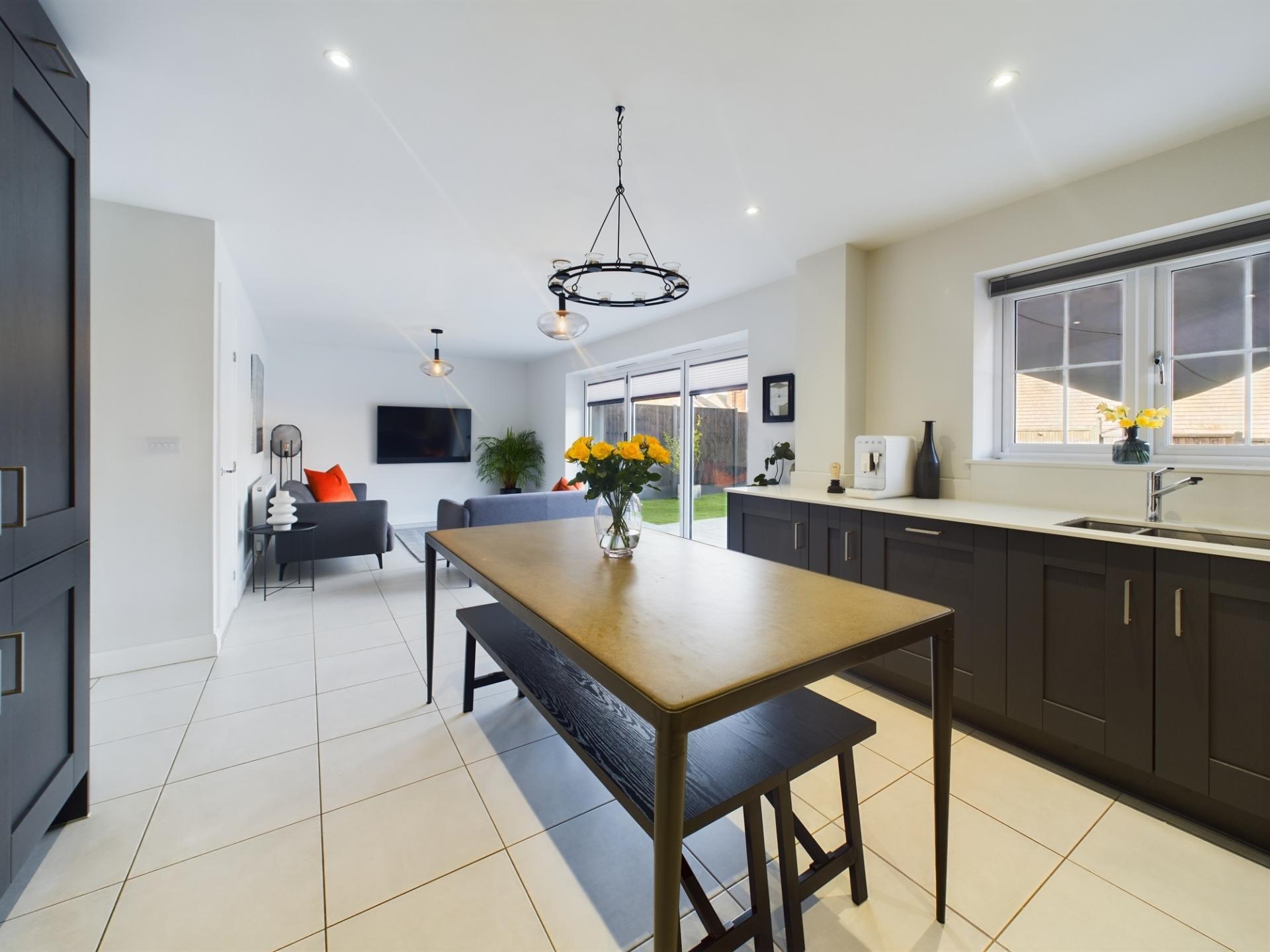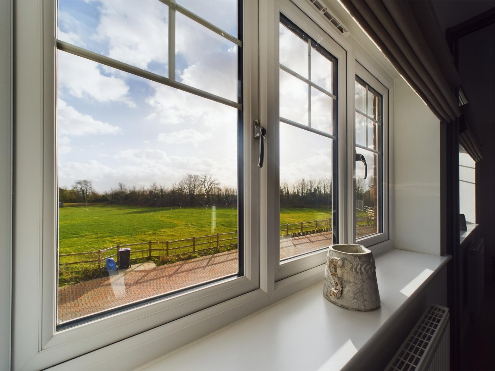 This 4 bedroom, contemporary family home is positioned on an enviable plot consisting of a good size rear garden with countryside views to the front. Built by Galliers in 2021 this property benefits from very spacious, well proportioned accommodation throughout, including four large double bedrooms. The current owners have presented and maintained their home to a show home standard giving consideration to the quality of fixtures and fittings. Recent updates include a large paved rear garden terrace with Porcelanosa ceramic tiles. A double width block paved driveway provides parking for two vehicles and there is additional visitor parking. The single garage has an electric car charging facility.