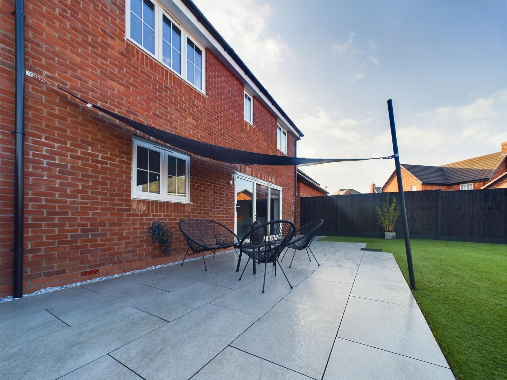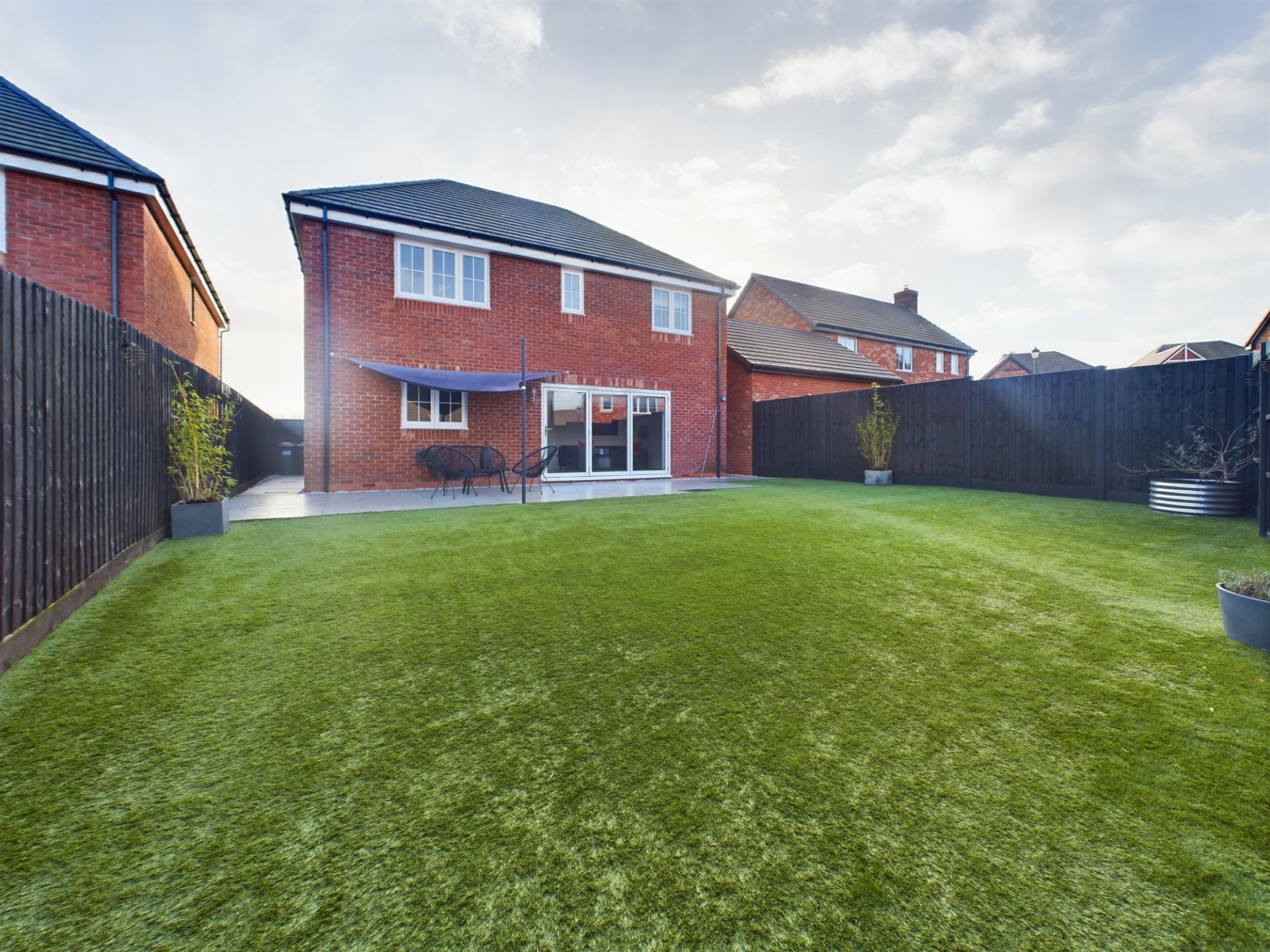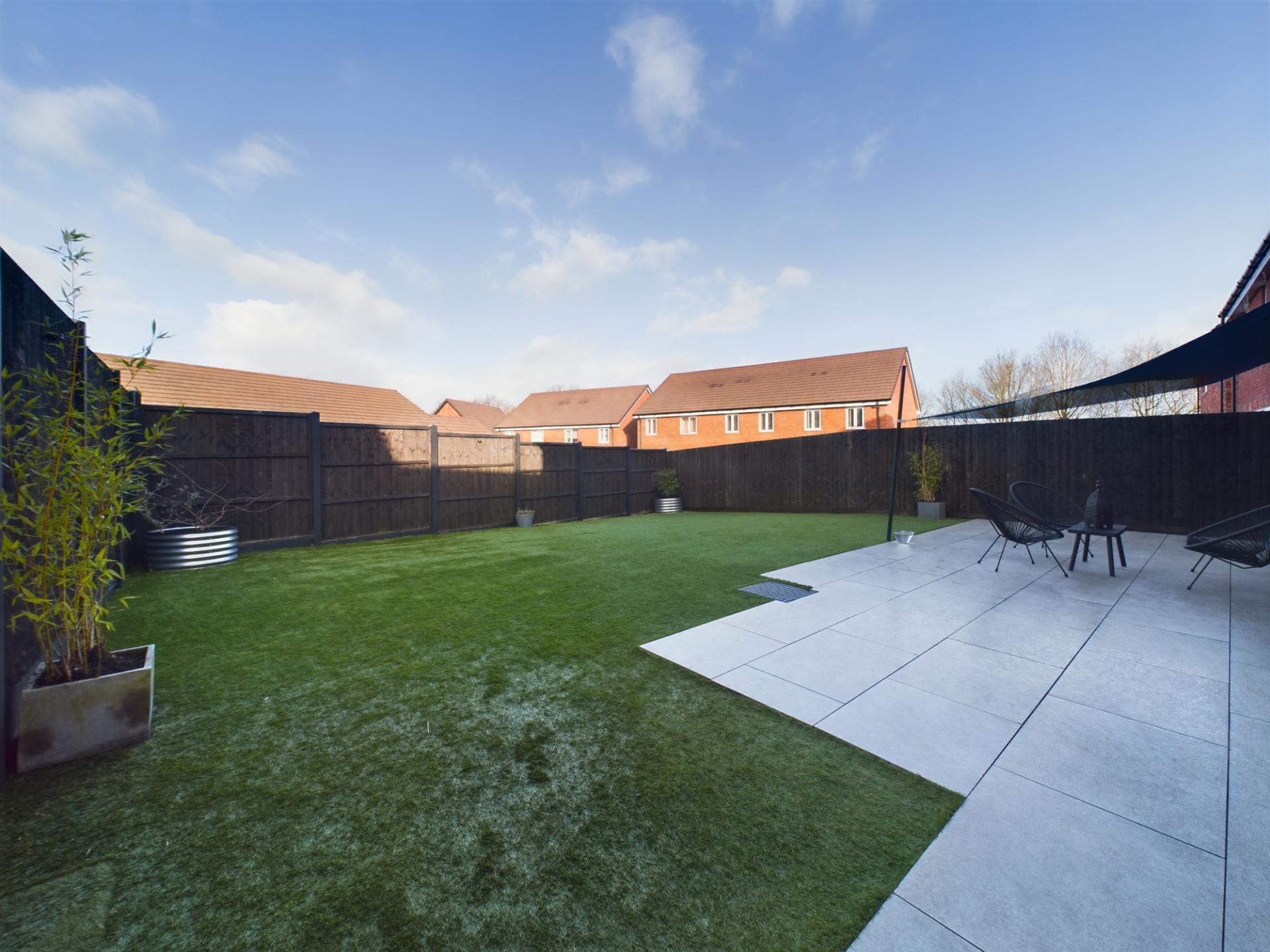 The property is approached over a block paved double width driveway leading to the main entrance under a canopied porch. To the side is gated access leading to the rear garden. The garage has an up and over door, with light, power and an electric car charging point. The garden to the front is laid to lawn with a border of shrubs. The rear garden is fully enclosed and is low maintenance having an artificial lawn and large patio paved with Porcelanosa tiles, outdoor lighting and tap.