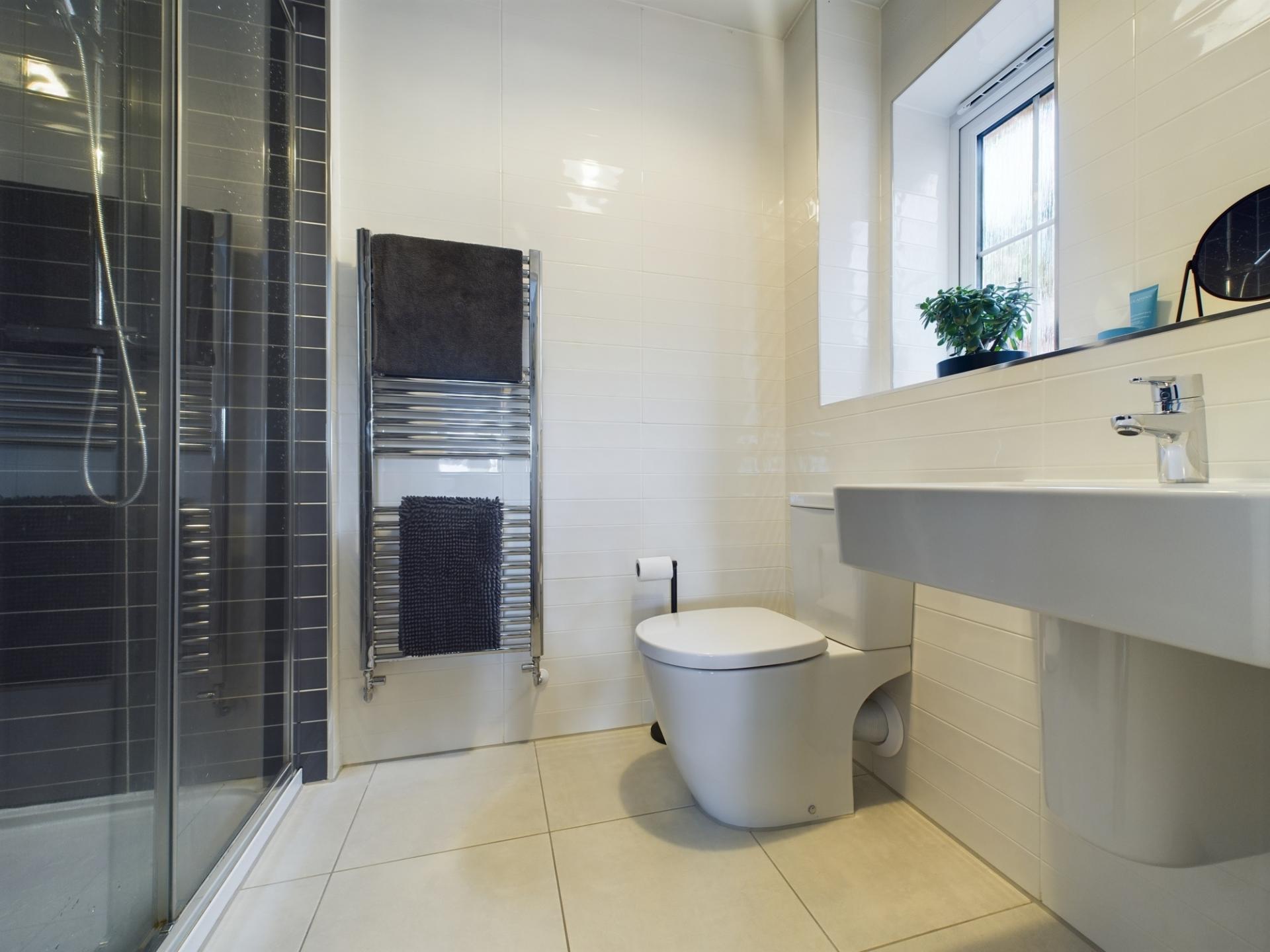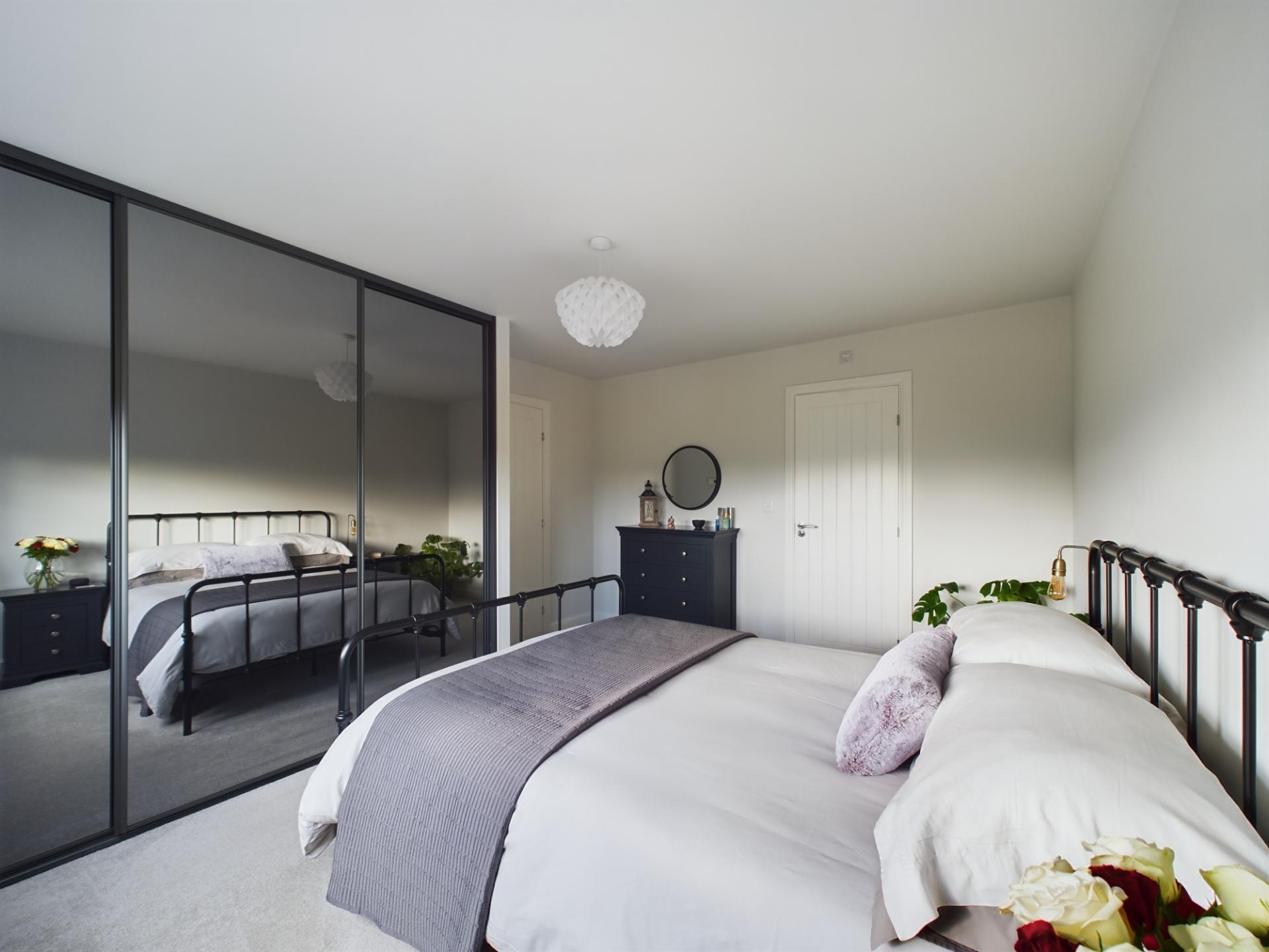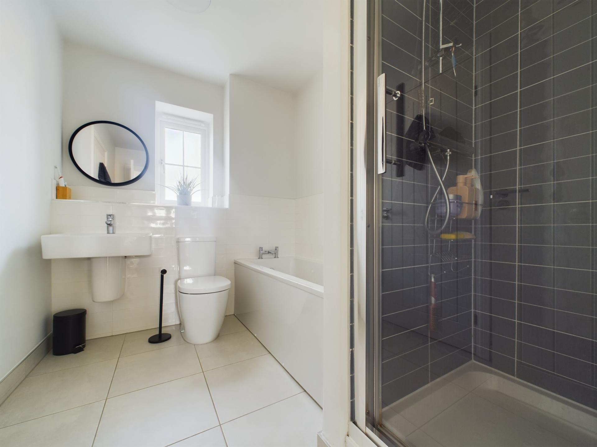Stairs rise from the entrance hall to the first floor galleried landing. The master bedroom is a large double room with fitted smoked glass mirrored wardrobes and a front aspect. The en-suite shower room is fully tiled, has a double shower cubicle with mains shower, wall hung wash hand basin, WC and chrome towel radiator. Bedroom 2 is a large double bedroom with fitted mirrored wardrobes. The Jack and Jill bathroom is accessed from bedroom 2 and the landing. The bathroom consists of a panelled bath, shower cubicle with mains shower, wall hung wash hand basin and WC. Bedroom 3 is a large double bedroom with a rear garden aspect. Bedroom 4 is a double bedroom with countryside views to the front. There is access to a boarded and insulated loft from the landing.