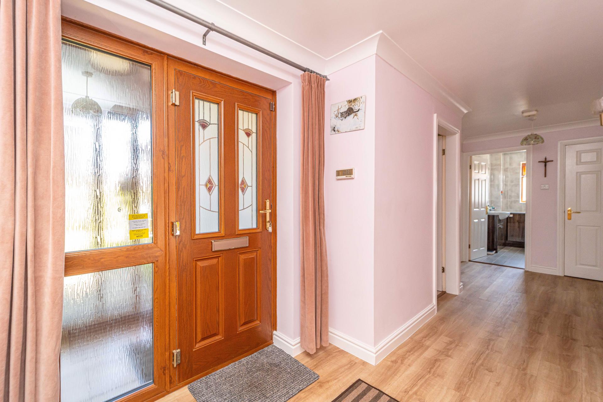 The entrance hall has a guest cloakroom and has access to two reception rooms, three ground floor bedrooms and the bathroom. The kitchen breakfast room has a range of modern wall and base units with worksurfaces over, sink and draining board. Integrated appliances include a gas hob with extractor over, double electric oven, fridge freezer and dishwasher. The utility room has a range of wall and base units with stainless steel sink and draining board. There is plumbing and standing space for a washing machine, gas fired central heating boiler and a door provides access to the rear garden. The Lounge has a coal effect gas fire with marble surround and wooden mantle and double doors open onto the rear garden paved patio. The dining/sitting room
