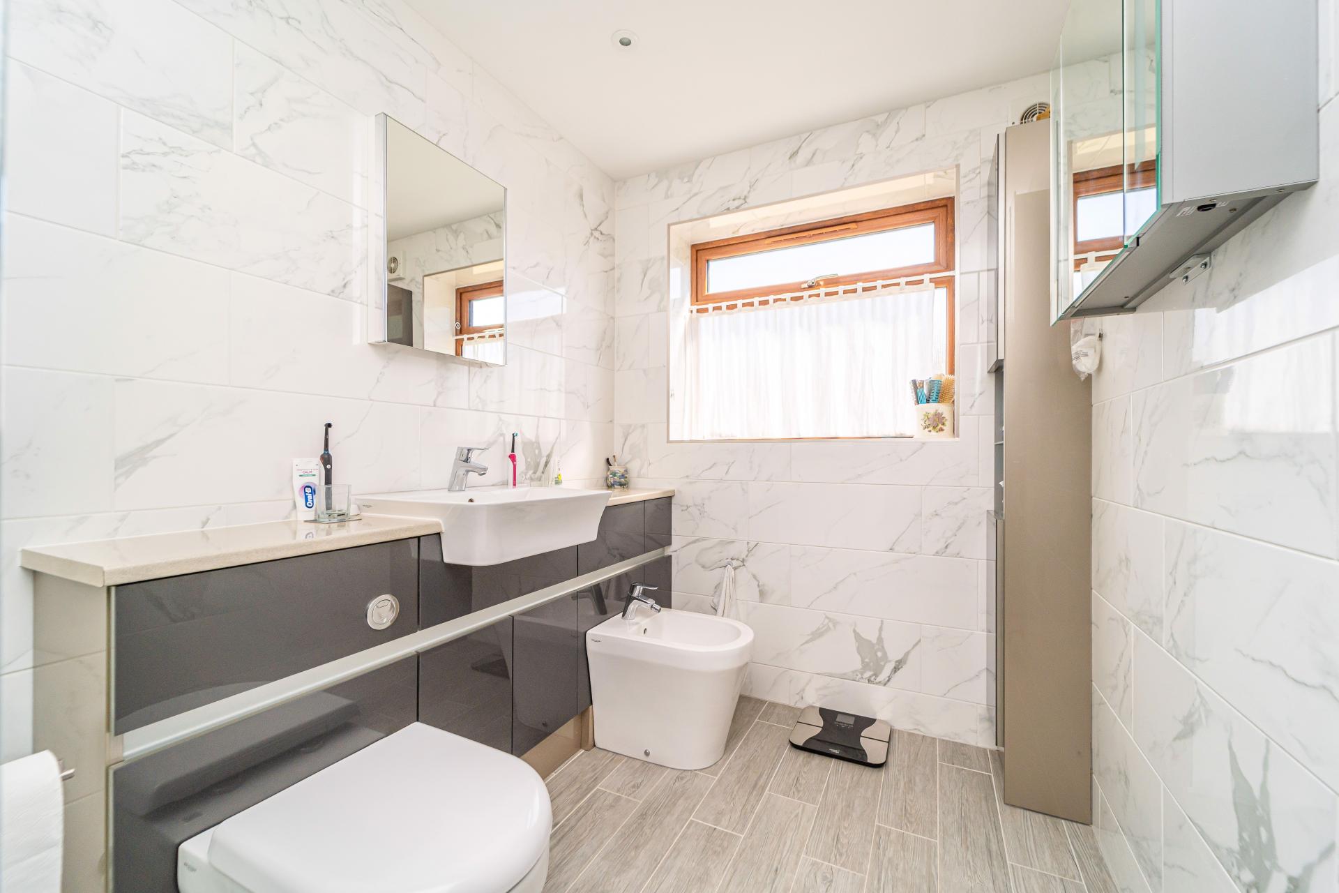 Bedroom 1 has fitted wardrobes to one wall and a rear garden aspect. The en-suite has a shower cubicle with mains shower, pedestal wash hand basin W.C and bidet set into a vanity unit. Bedrooms 2 and 3 are double rooms with a fitted wardrobes and a front garden aspect. The bathroom has a panelled shower bath and wash hand basin and W.C set into a vanity unit.