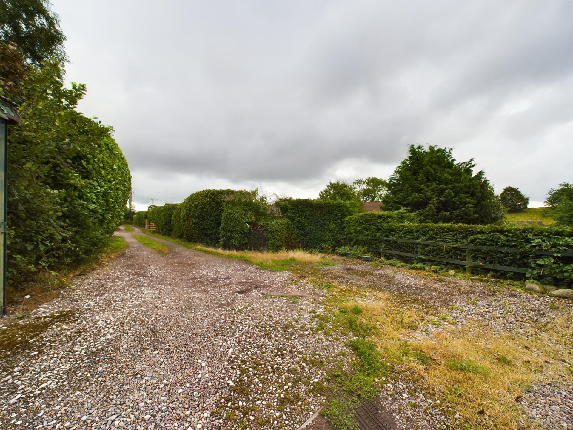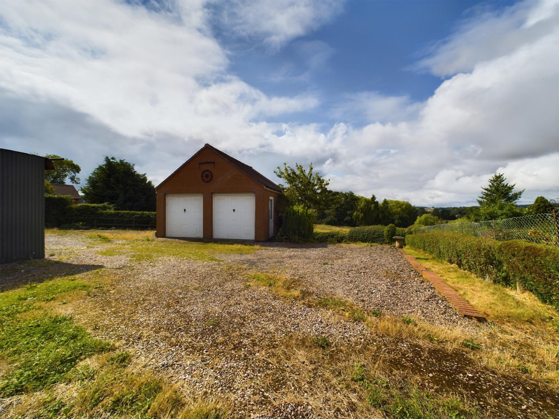 The property is approached over a gated gravel driveway providing access to 1 Dykes Lane and the neighbouring property. There is ample parking and turning space and a detached garage in front of the property. The garage has power, light up and over doors and additional roof storage. The garden to the front is mainly laid to lawn with beds of mature shrubs and trees. The rear garden is on two levels, mainly laid to lawn and includes a vegetable garden. The rear garden has a brick and tile workshop, garden WC, a timber and corrugated tin outdoor storage shed.