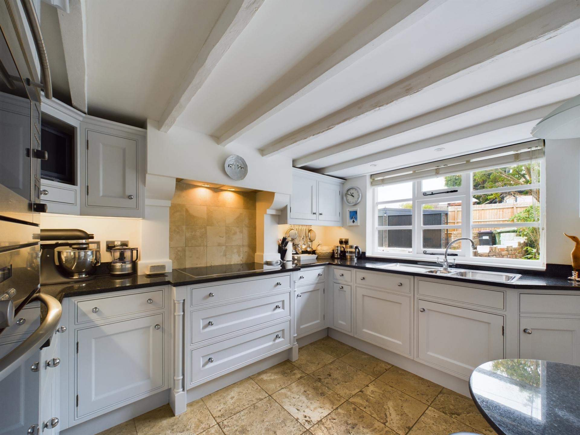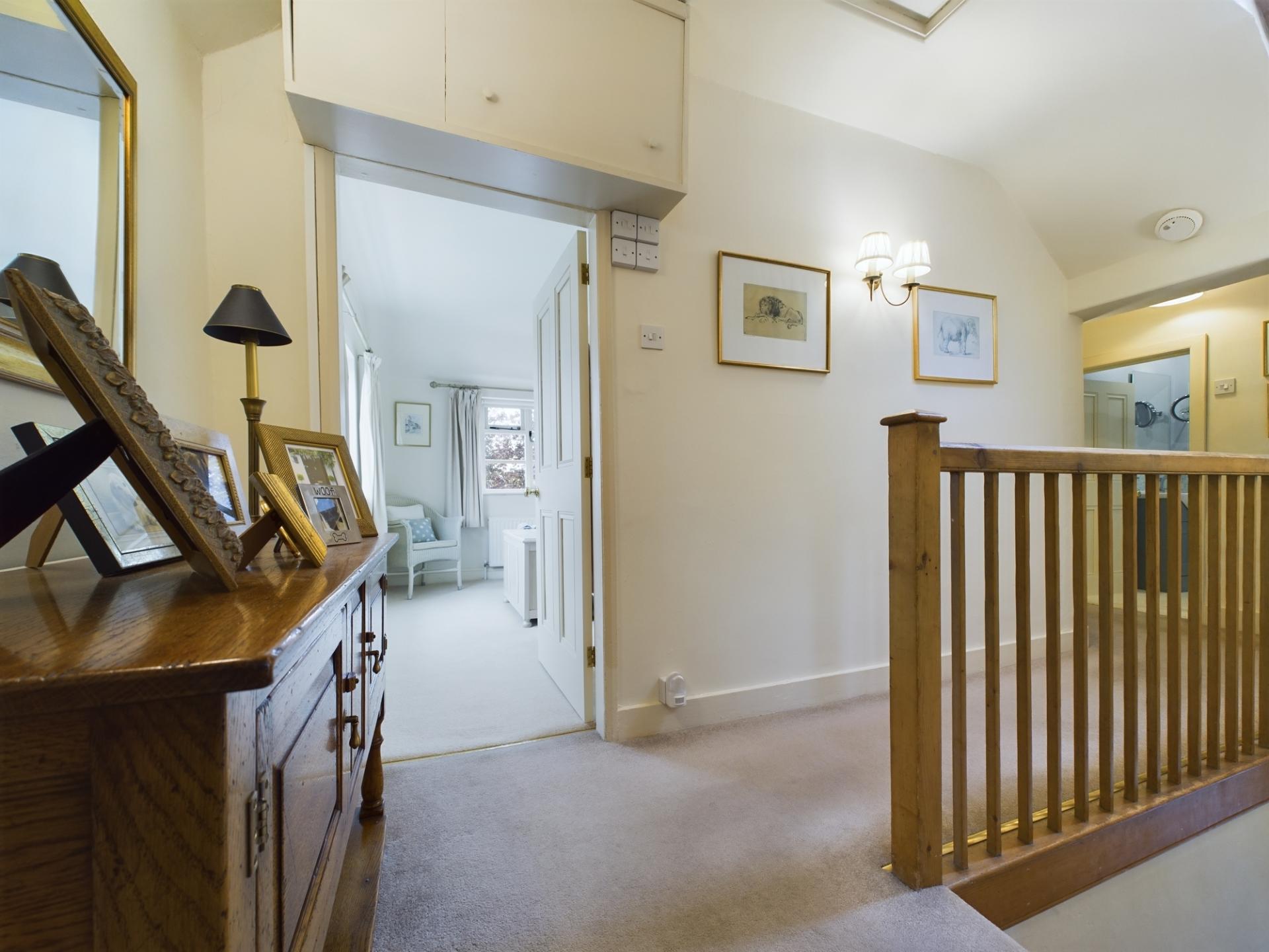 The entrance hall opens into the sitting room. The sitting room has a front garden aspect and to the centre of the room is a large open fire set into the chimney breast. There is access to a walk in storage room currently shelved from floor to ceiling for storing books. The dining room has provision for an open fire within the chimney breast to the centre of the room. The breakfast kitchen has a range of bespoke fitted, painted units with granite worksurfaces over, stainless steel sink and draining board. Integrated appliances include a Neff induction hob with Neff extractor over, Miele single oven, Neff combination oven and microwave, Neff integrated fridge, Miele dishwasher and waste disposer in the sink. Onto the family room with French doors to the rear of the property and access to the guest cloakroom and laundry/boot room. The spacious guest cloakroom currently consists of a WC and wash hand basin set into a bespoke painted wood vanity unit with marble over. The space would be ideally suited to a ground floor shower room. The laundry/ boot room is accessed from the courtyard and consists of a range of fitted floor to ceiling storage and base units with a stainless steel sink over. There is an additional shelved airing cupboard. There is plumbing and standing space for a washing machine and a tumble drier.