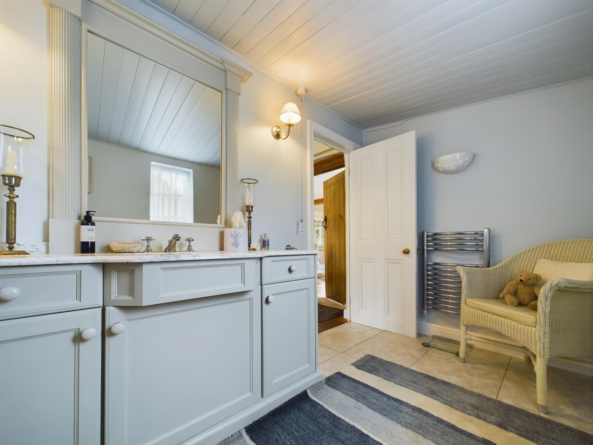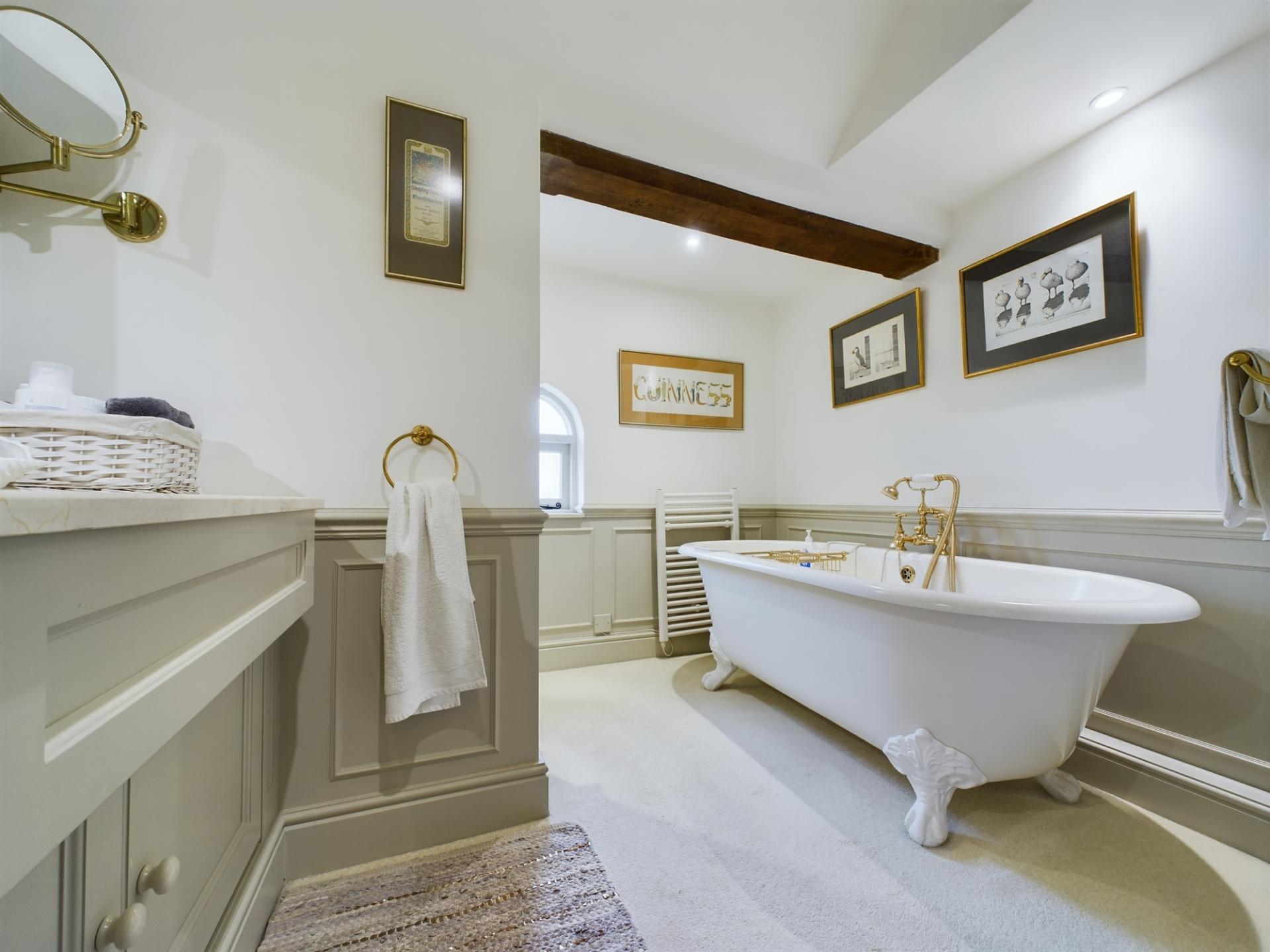 Stairs from the family room lead to the first floor landing. The master bedroom is a large double room with fitted wardrobes and a garden view. The en-suite bathroom consists of a freestanding bath with hand held shower over, wash hand basin set into a bespoke vanity unit and WC. Bedroom 2 has dual aspect windows with garden views, fitted wardrobes and a wash hand basin. Bedroom 3 is a double room and bedroom 4 is a large single bedroom. The family bathroom consists of a double shower cubicle with mains power shower, wash hand basin within a vanity unit with a marble top and WC.