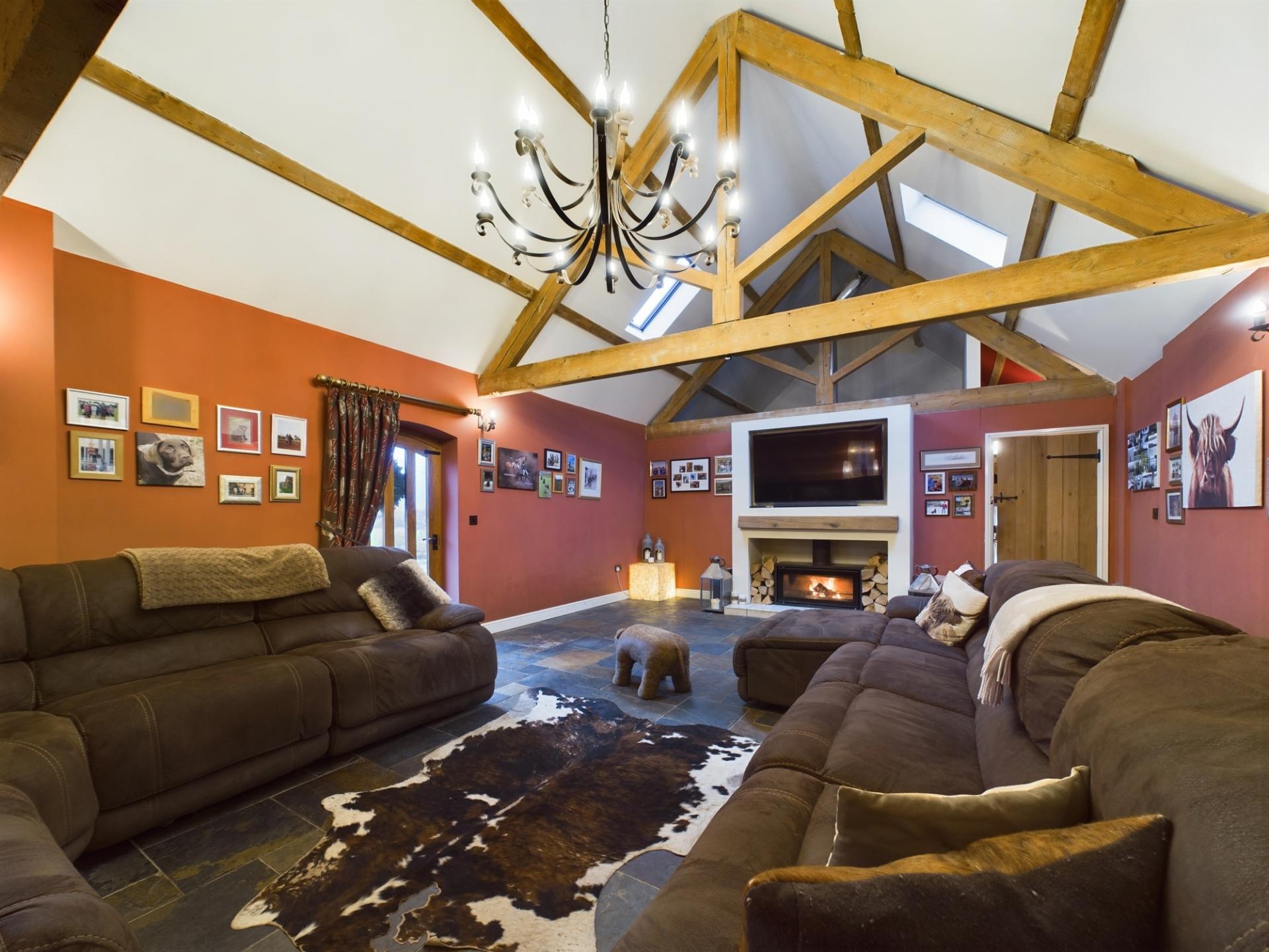 The Byre is positioned within a substantial plot in the sought after hamlet of Field Aston on the fringe of the popular market town of Newport and is being sold with No Onward Chain. This two bedroom barn conversion has been totally renovated by the present owners who have given consideration to light, space and the quality of the fixtures and fittings resulting in a contemporary space while retaining many original character features of The Byre. Accommodation throughout has vaulted ceilings, exposed timbers within this well proportioned, spacious layout combined with granite worksurfaces, quartzite and rustic slate tiling and underfloor heating. The landscaped rear garden includes a Lindum turf wildflower garden, Vast sound system, outdoor lighting and pizza oven. The gated driveway provides parking for several vehicles.