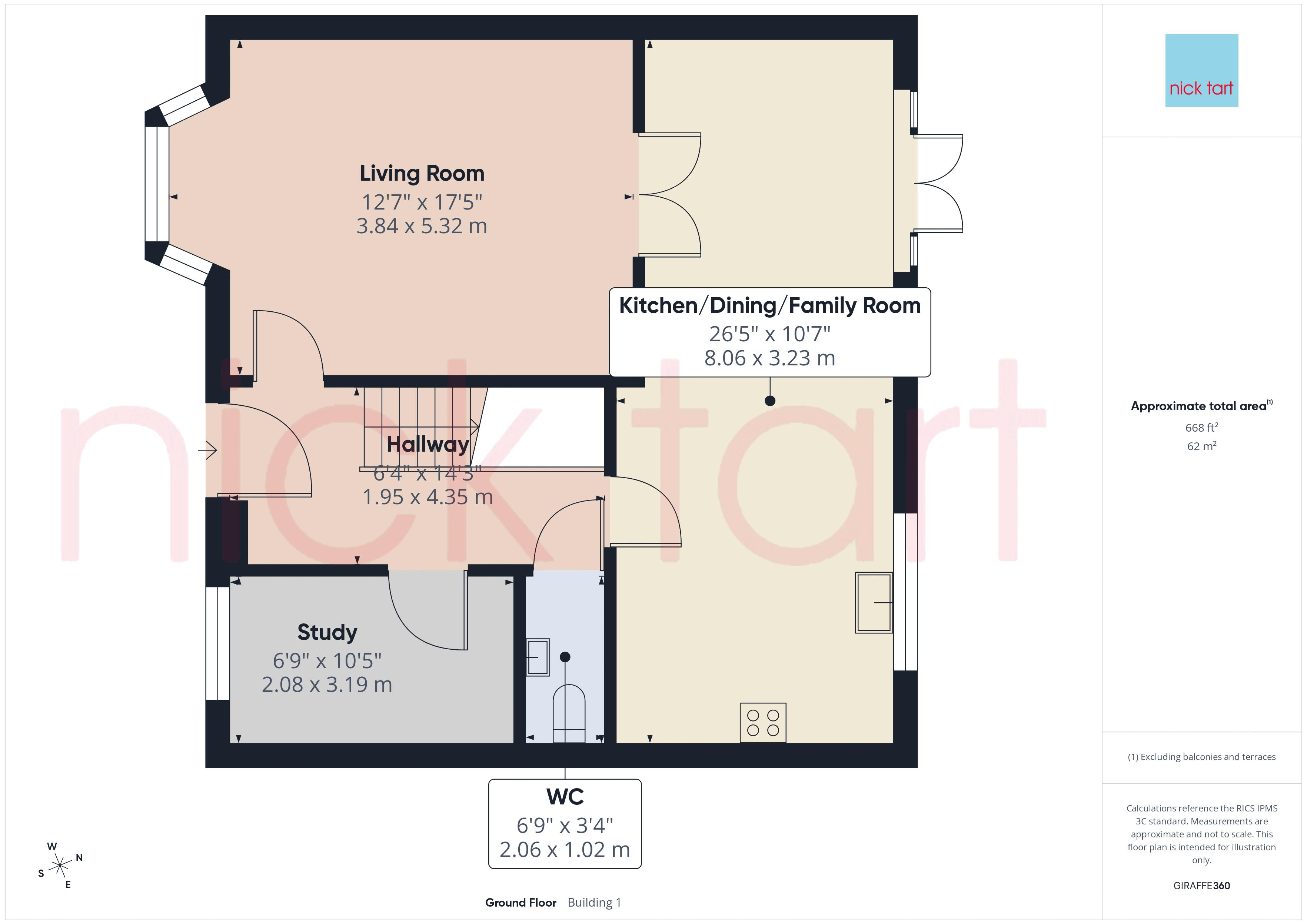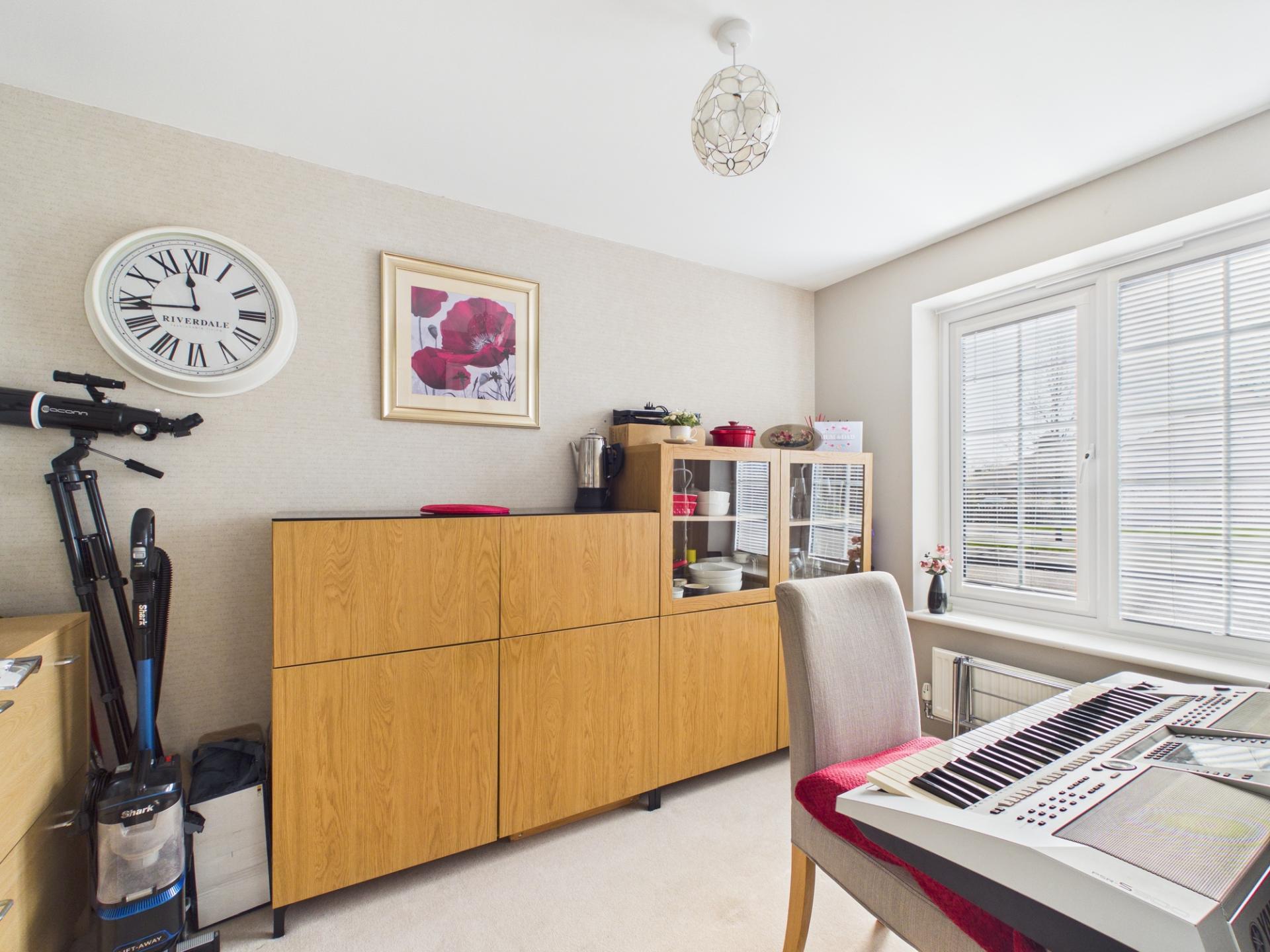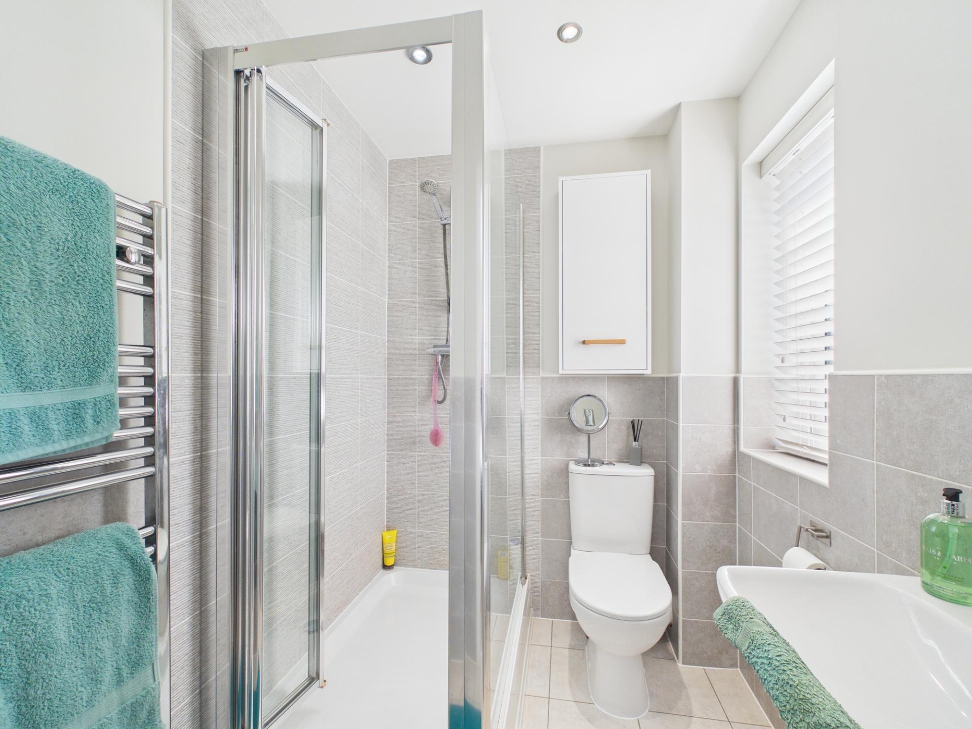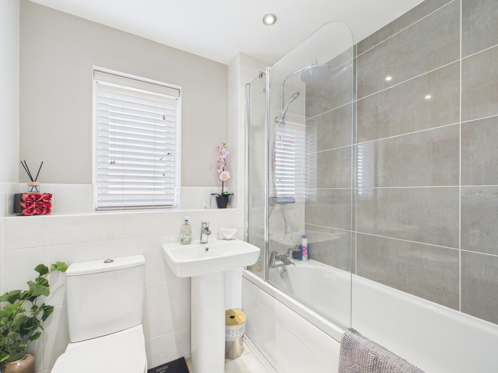 This detached house encompasses a substantial 1524 square feet of living area, perfectly laid out to deliver comfort and functionality. On the ground floor, a spacious kitchen/dining/family room benefits from a range cooker, washing machine, Bosch dishwasher and an American style fridge freezer being included in the sale. From the kitchen, further French doors offer unconstrained access to the rear garden, which is bathed in radiant sunlight. Adjacent, a living room is made inviting with a bay window that provides a pleasant view of the frontage. A convenient WC and study are also available on this level.