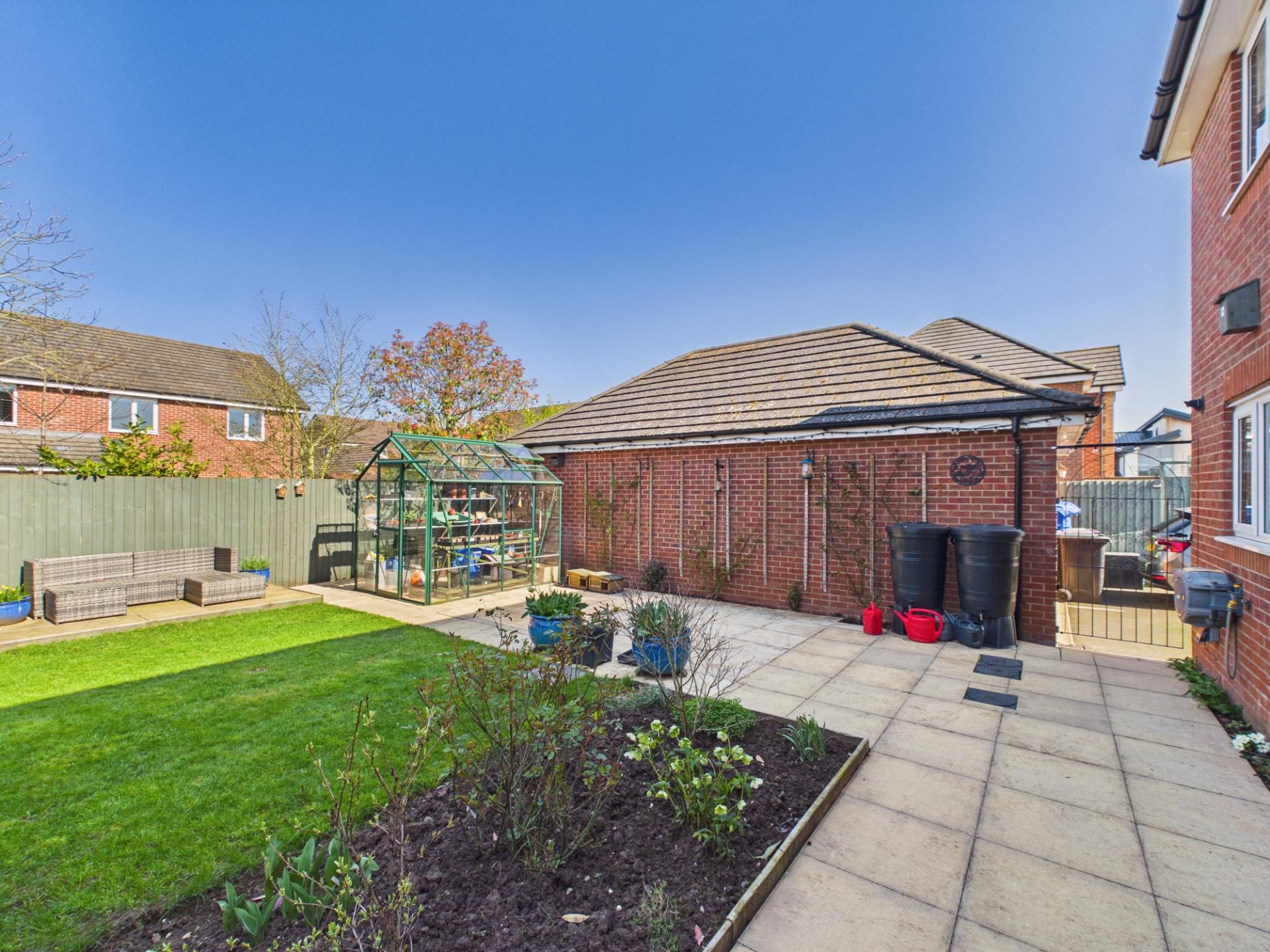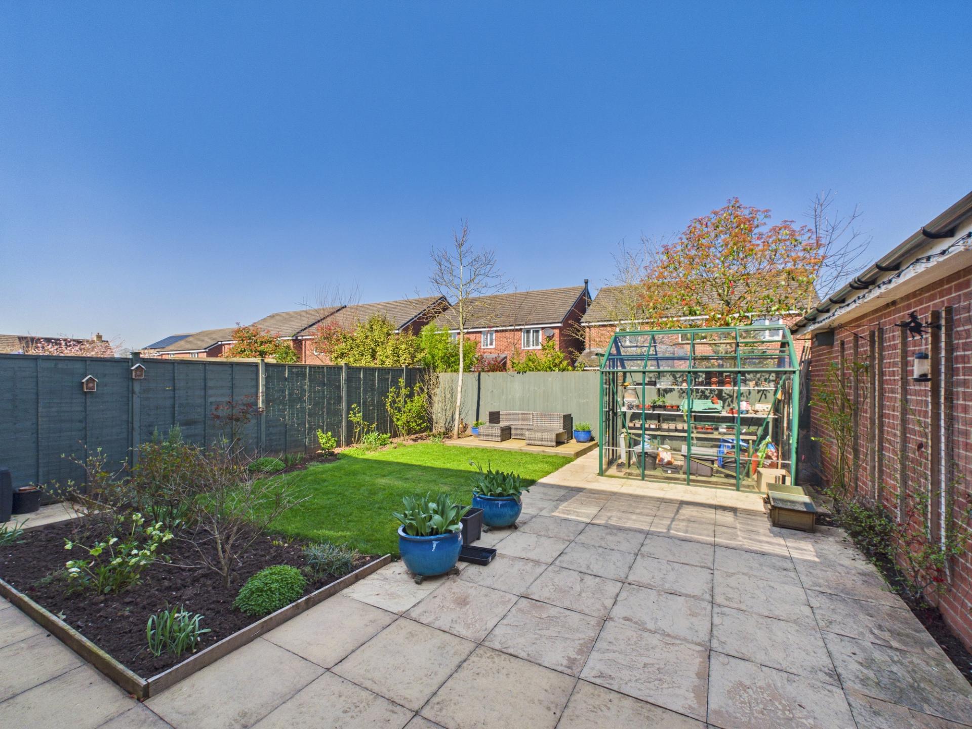 The enclosed rear garden has a paved patio area for entertaining and a laid lawn, access leads to the side driveway which lead up to a spacious double length garage.