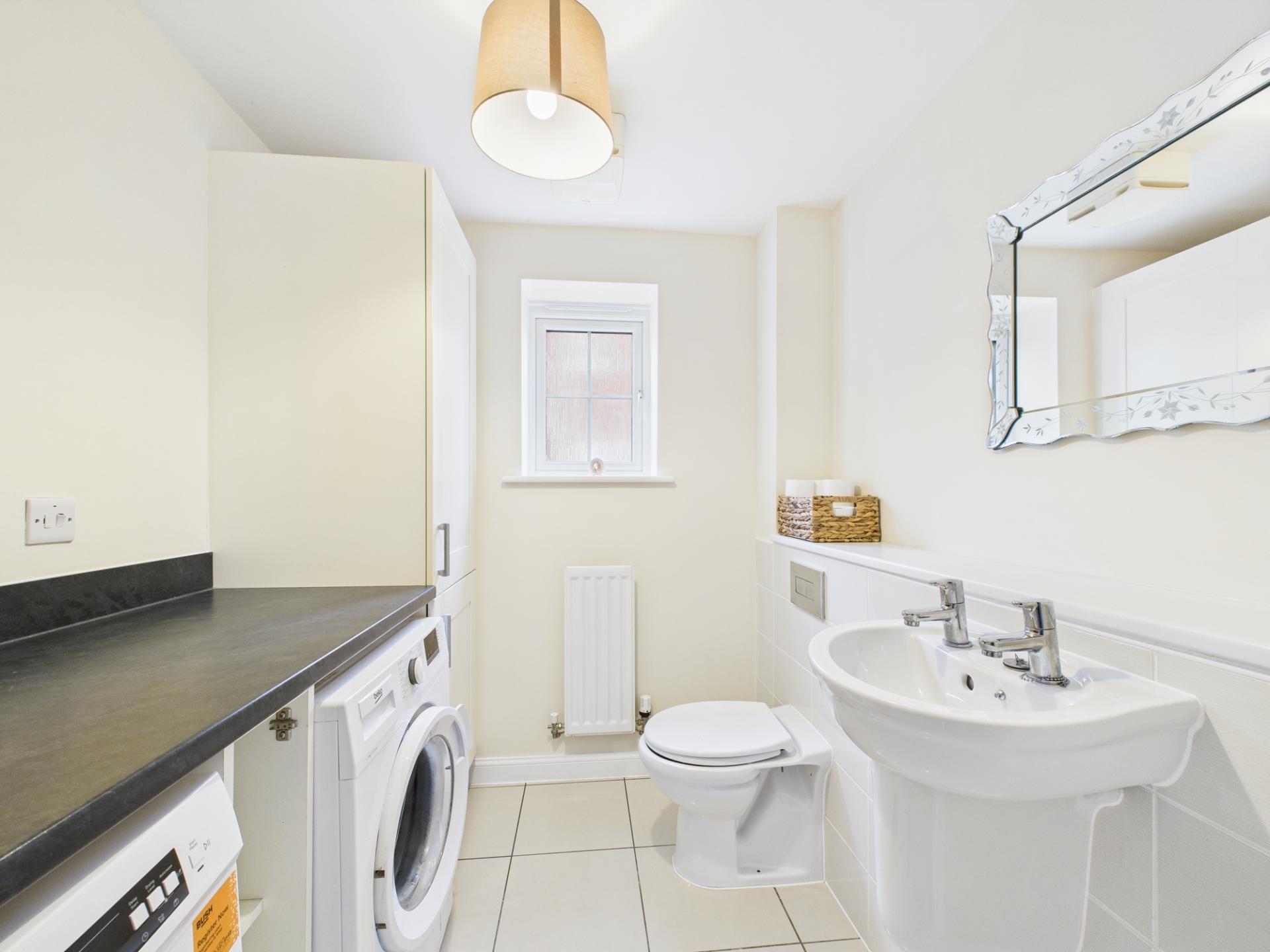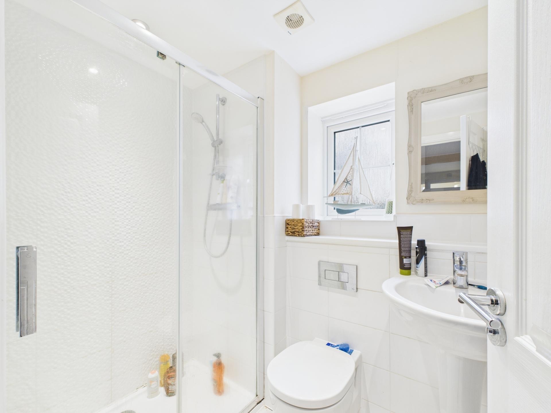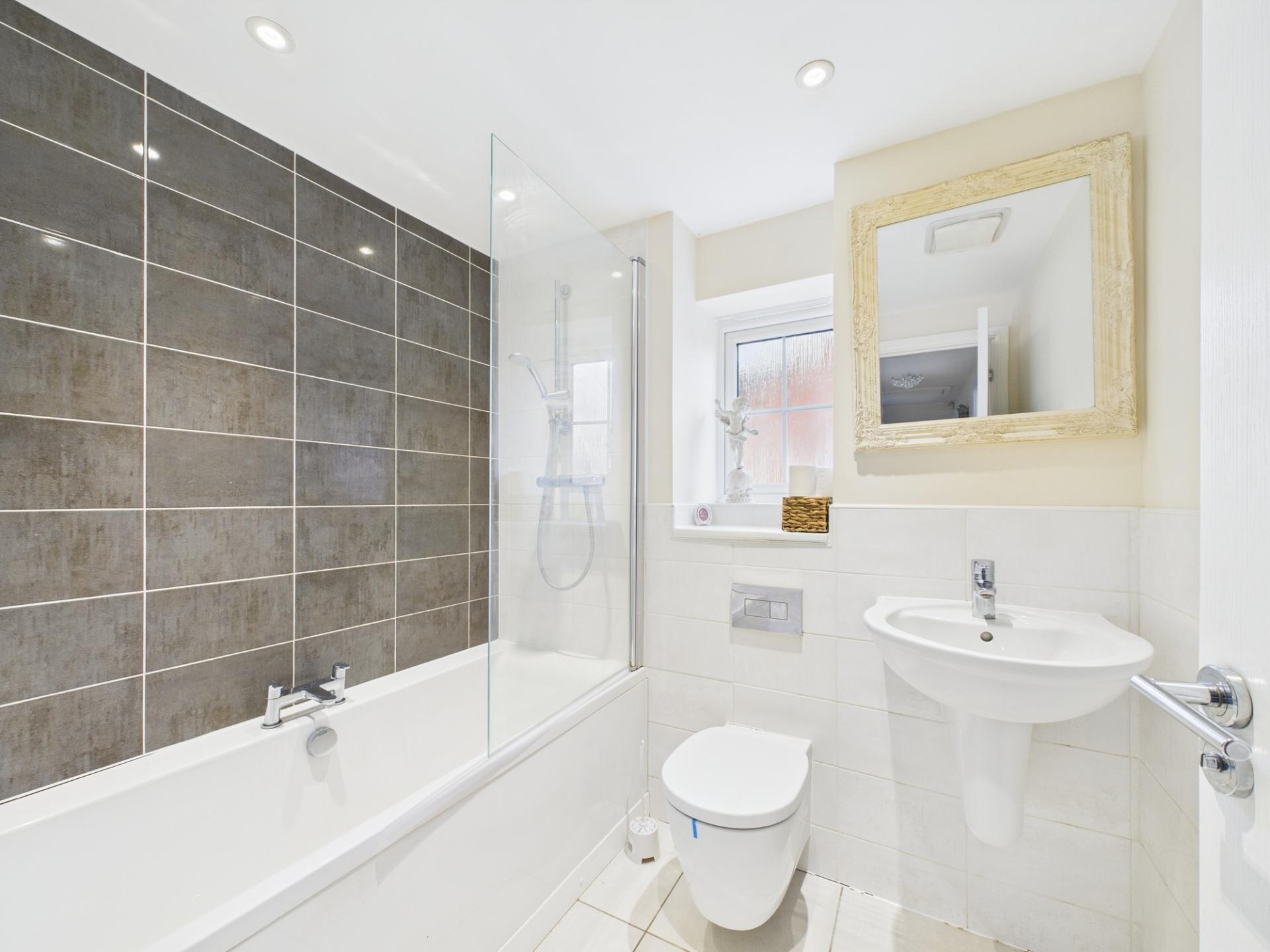On the first floor landing, there is access to five bedrooms and the family bathroom. Two of the bedrooms, including the main bedroom have an outlook towards the front, with the main bedroom benefitting from built in wardrobe space & en-suite. The en-suite comprises of pedestal wash hand basin, WC & shower. The family bathroom comprises of pedestal wash hand basin, WC & bath with overhead shower facility, with a useful ladder style towel rail. There is a loft hatch access point above the landing.