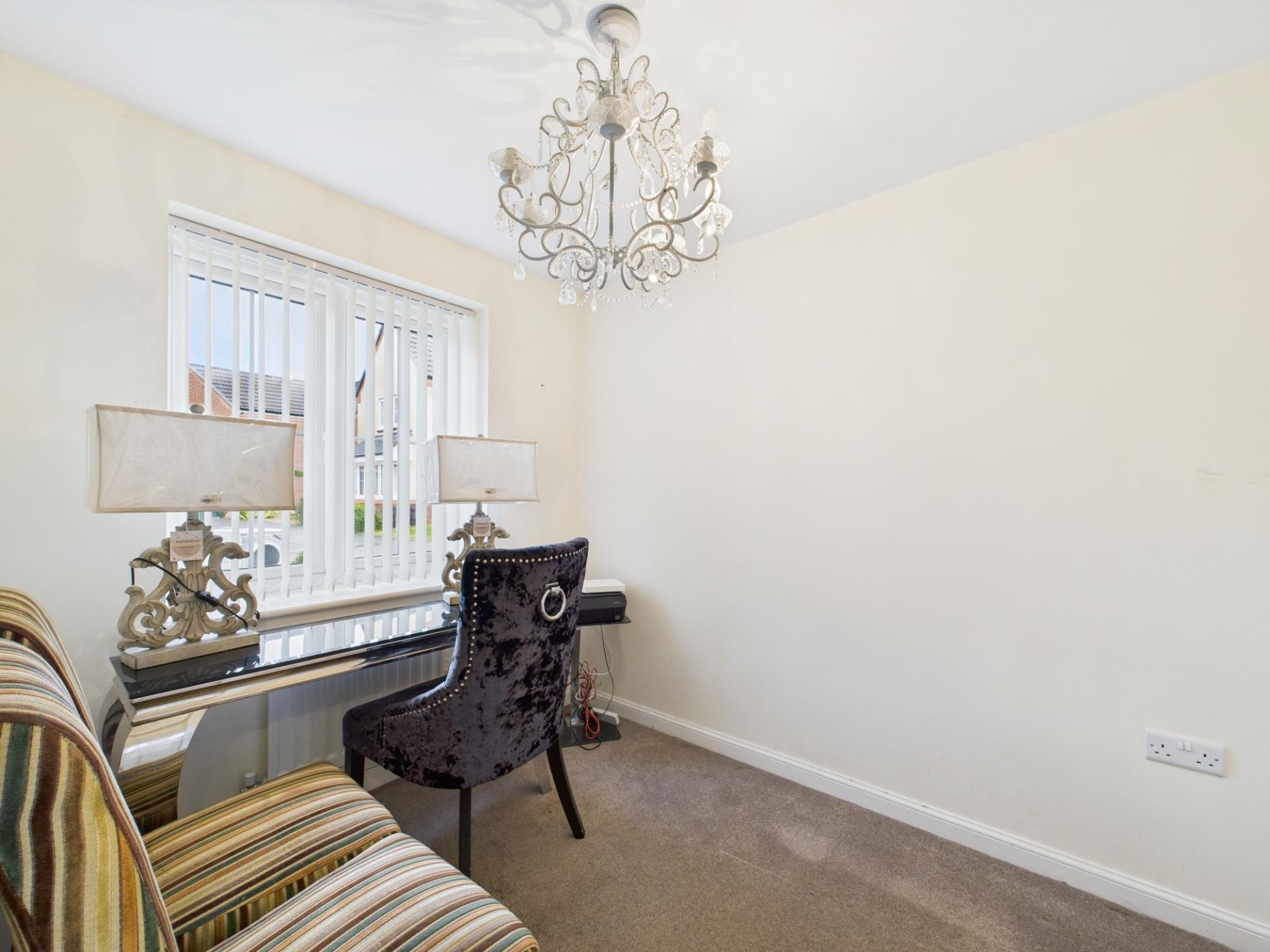 The living room has a bay window with an outlook towards the front. There is access to the kitchen via double opening doors. The kitchen is made up of a range of base and wall units with an integrated fridge freezer, oven & grill, hob with extractor hood over & dishwasher. The kitchen extends into a fantastic open plan dining area with French doors leading to the rear garden. The utility has the benefit of a WC & pedestal wash hand basin with further cupboard space & worktop with space below for appliances. The study has an outlook towards the front. There is a useful understairs storage cupboard.