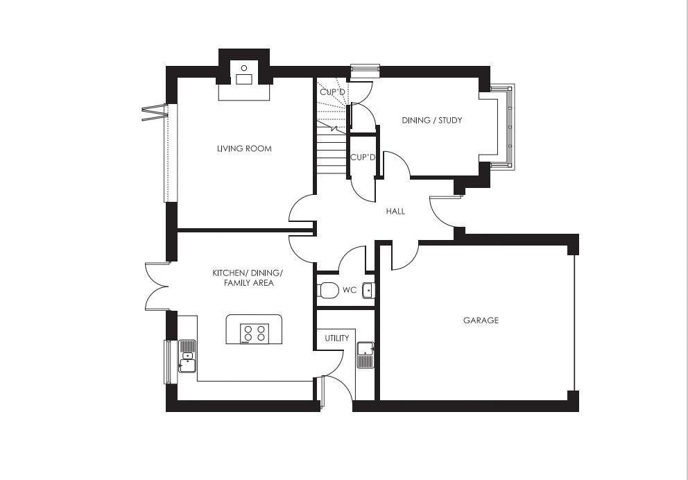 The Derwent is an impressive four-bedroom family home, boasting a large hallway that leads off to the various reception rooms and kitchen/dining/family room. To the side of the hallway is the dining room/study, a versatile room to suit your living needs. The living room leads straight on from the hallway and benefits from bifold doors leading out to the secluded private garden, and a feature log-burner, perfect for those winter evenings.