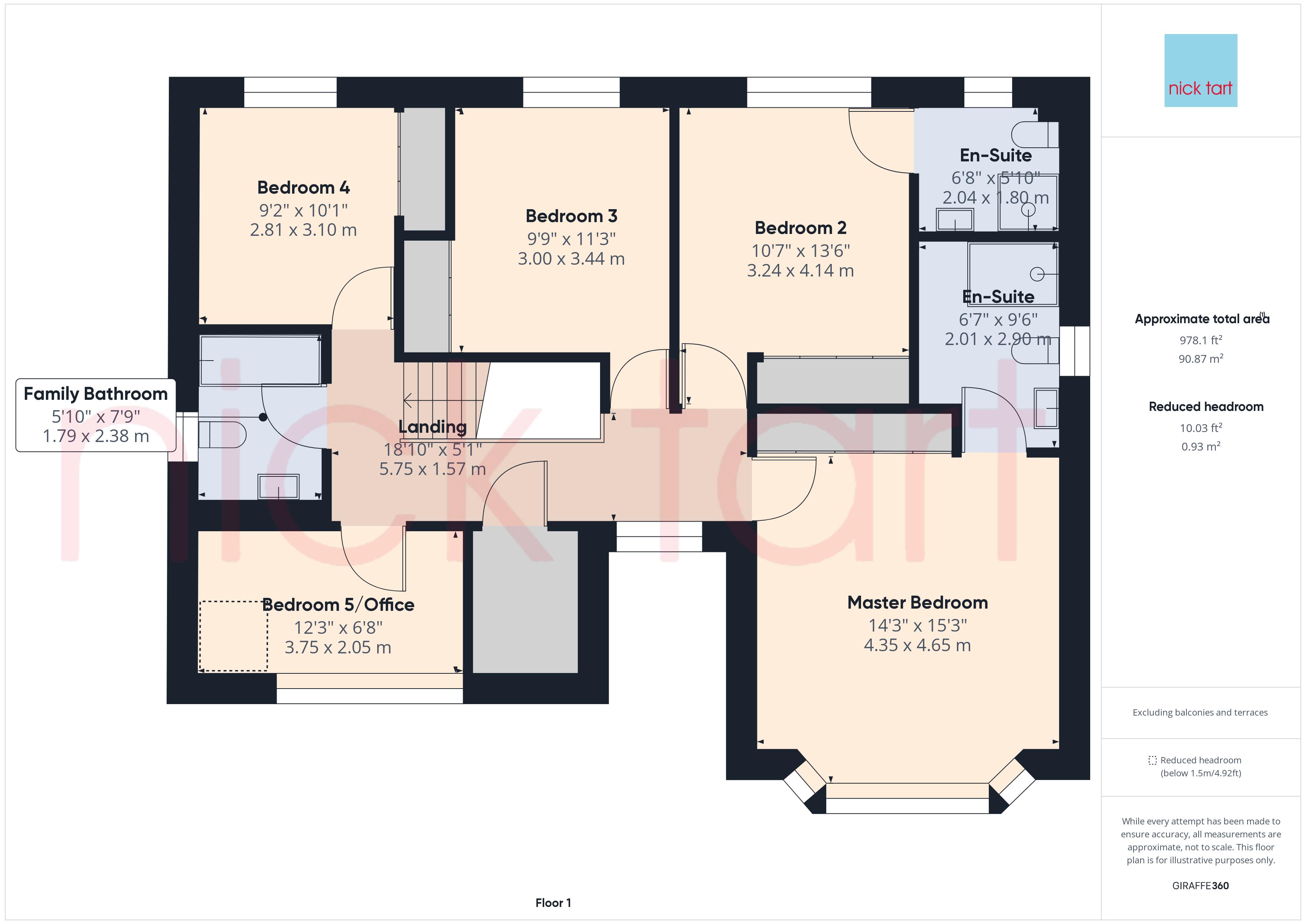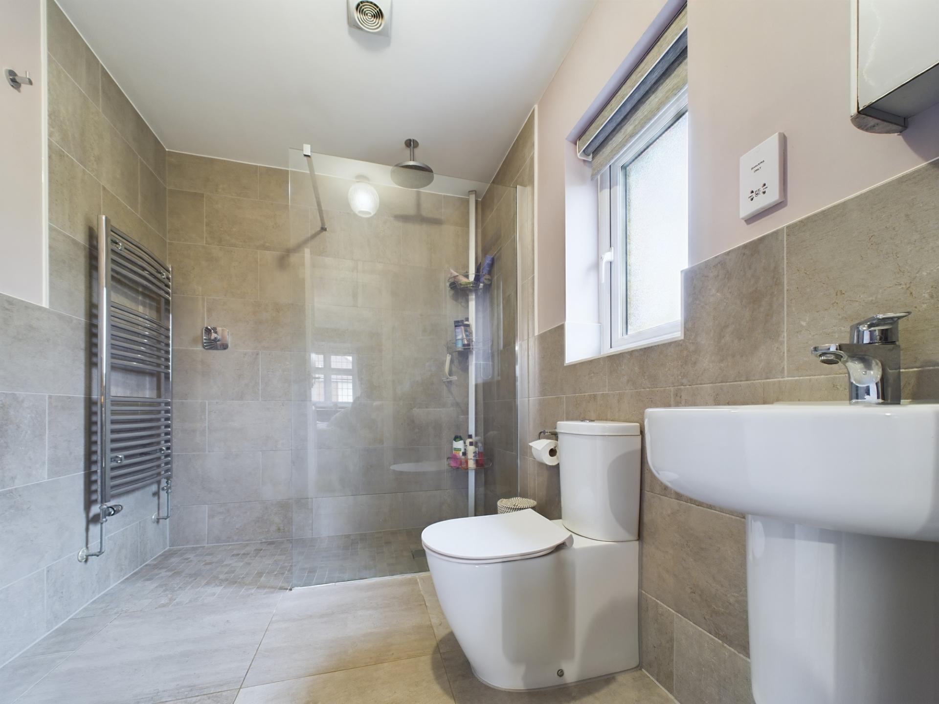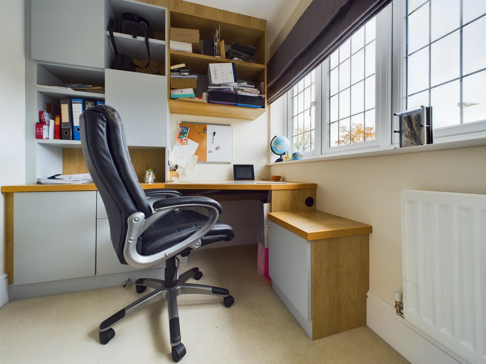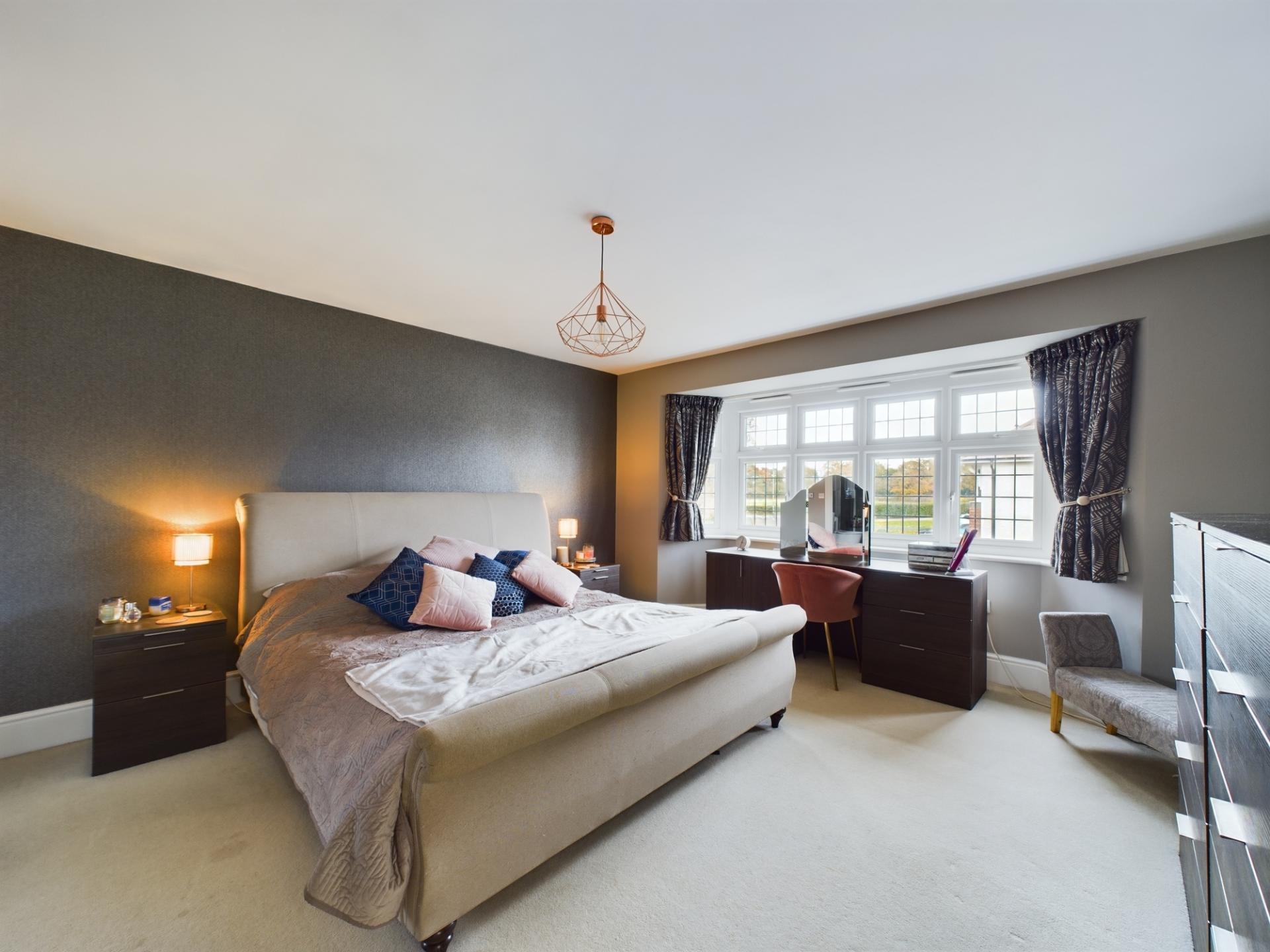 The master bedroom has a large bay window and fitted wardrobes to one wall providing an abundance of hanging and shelf space. The en-suite has a walk in double shower with side screen and main shower, pedestal wash hand basin and WC. Bedroom 2 is a double room with a rear garden aspect and fitted wardrobes to one wall. The en-suite shower room consists of a corner shower cubicle with mains shower, pedestal wash hand basin and WC. Bedroom 3 and 4 are double bedrooms with fitted wardrobes to one wall. bedroom 5 is a single room and is currently used as an office with a fitted desk and bookcases. The family bathroom consists of a panelled bath with mains shower over and side screen, pedestal wash hand basin and WC. The galleried landing has a large storage cupboard and access to an insulated loft, boarded with light and power.