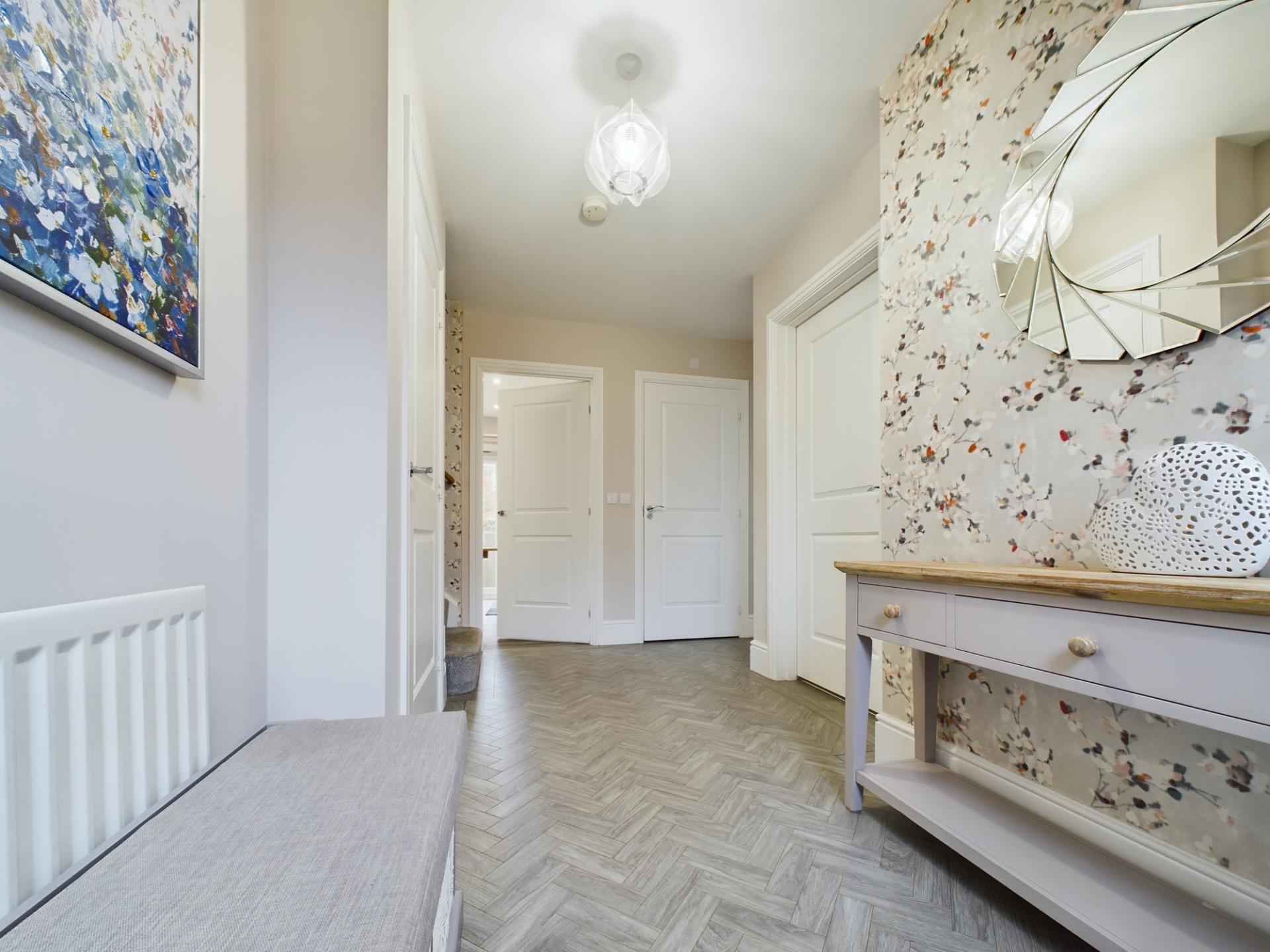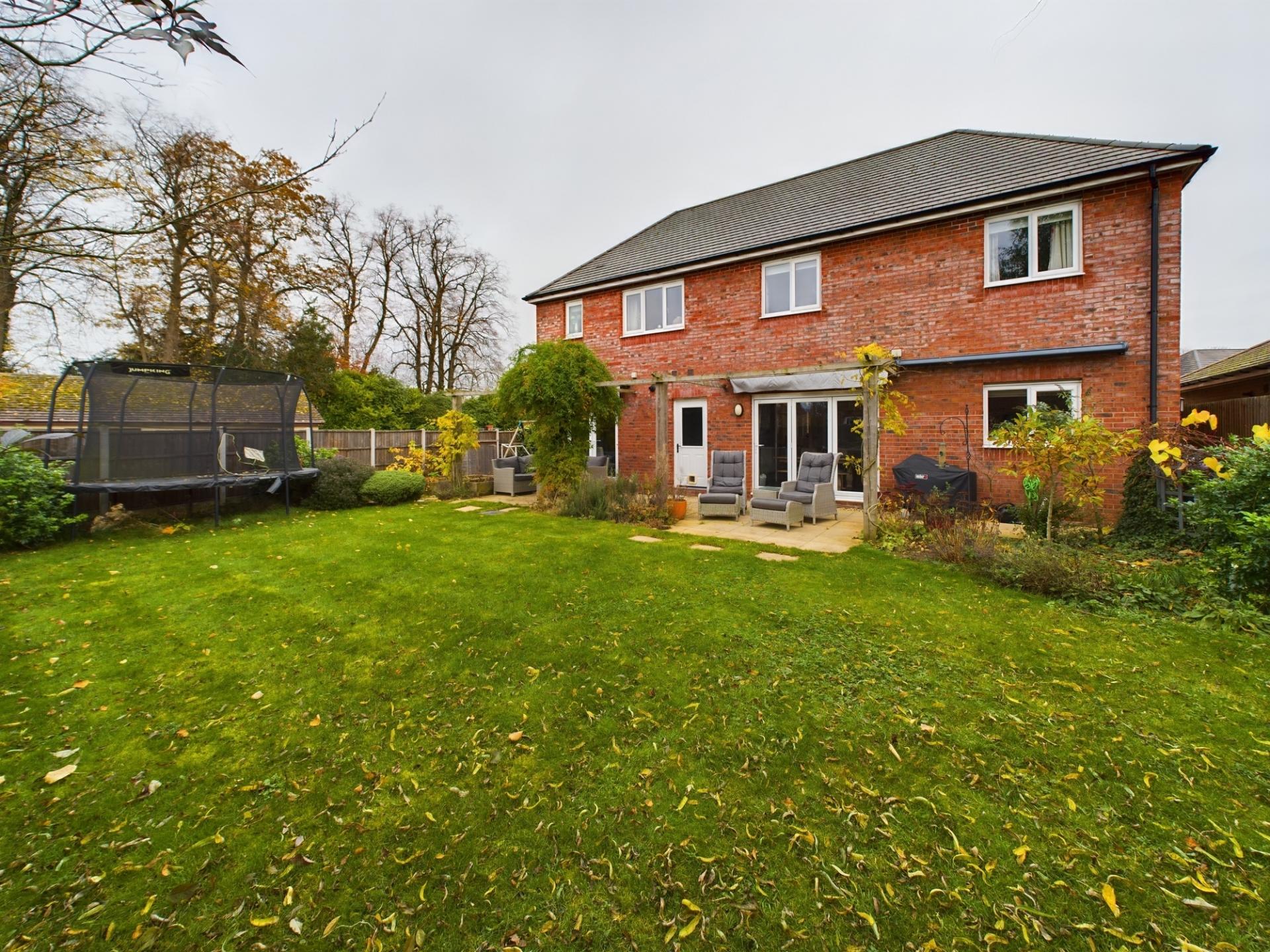This 5 bedroom executive family home is positioned within a corner plot on an exclusive development built by Redrow Homes in 2016. The property boasts very spacious and well proportioned accommodation throughout offering flexible layout to suit modern family living and has approximately 3 years NHBC warranty. The current owner has added further updates giving consideration to the quality of fixtures and fittings and this includes a bespoke re-fitted kitchen with marble work surfaces, Amtico flooring and to the outside landscaping to the rear garden. The driveway provides parking for approx three vehicles and the double garage offers space for vehicles, outdoor storage or a gym.