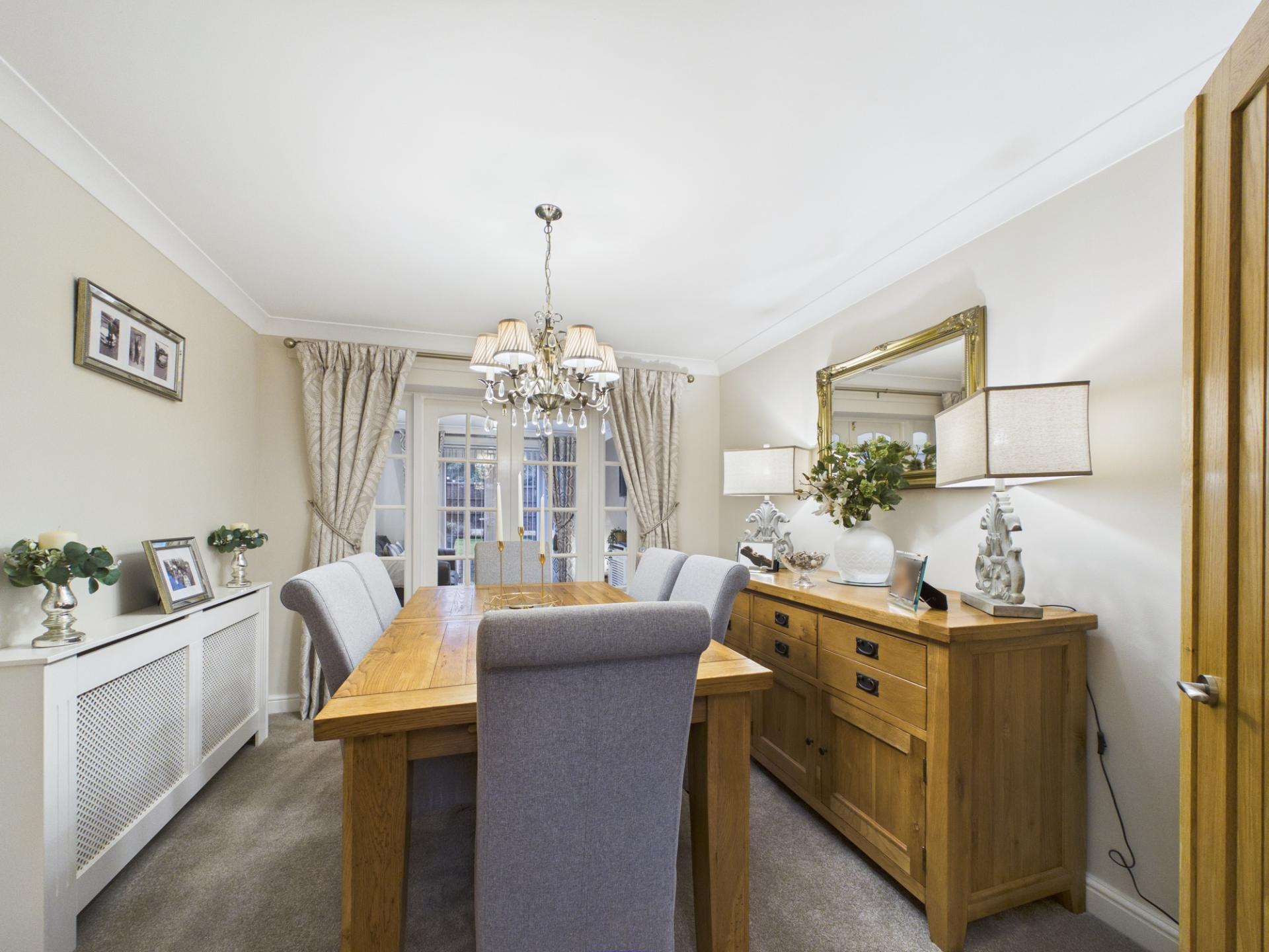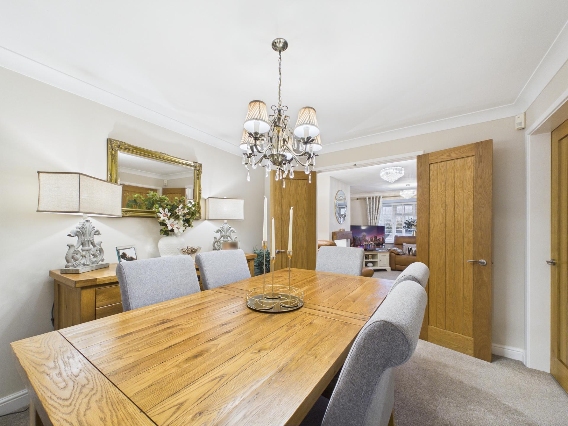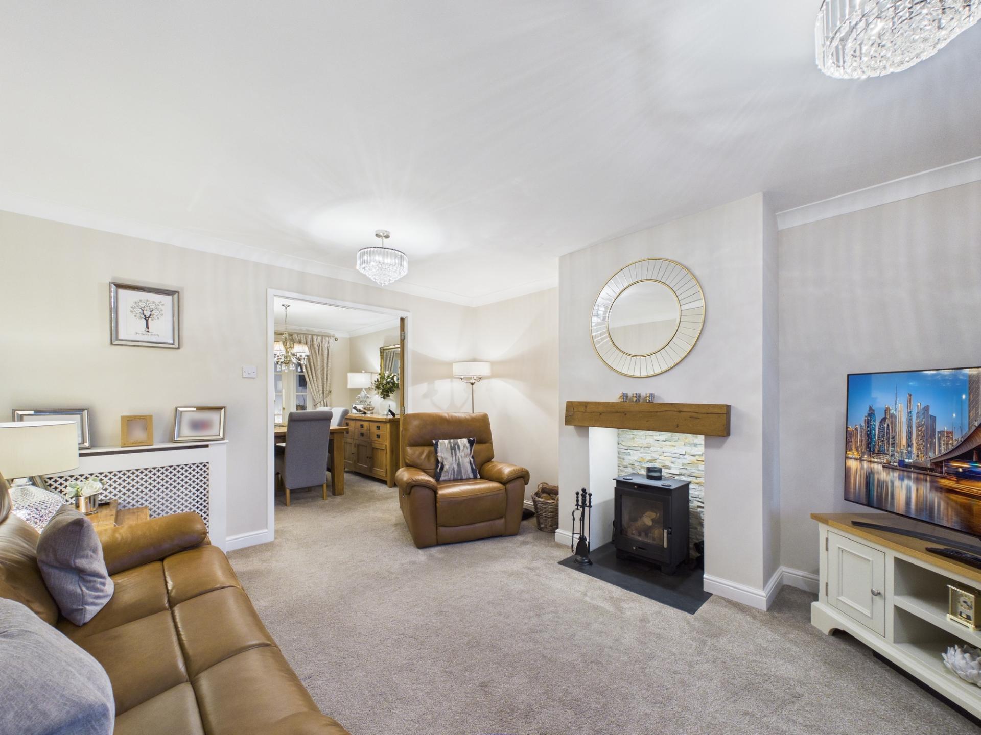 Welcome to Harley Close, an exceptional residence located in north Telford. This stunning family home, sprawling over 1681 square feet, accommodates your every need with its comprehensive two-level design. The ground floor is an invitation into style and comfort, offering a vast combined kitchen/living/dining space accentuated with a range of base & wall units, space for a Rangemaster & further appliances, extractor hood & a useful breakfast bar. There are French doors leading out the rear garden. For the avid host, a separate dining room presents a perfect setting for intimate dinner parties or large gatherings. A cosy living room with a fireplace provides a perfect retreat for relaxation. A utility, a WC, and a capacious garage complete this versatile level.