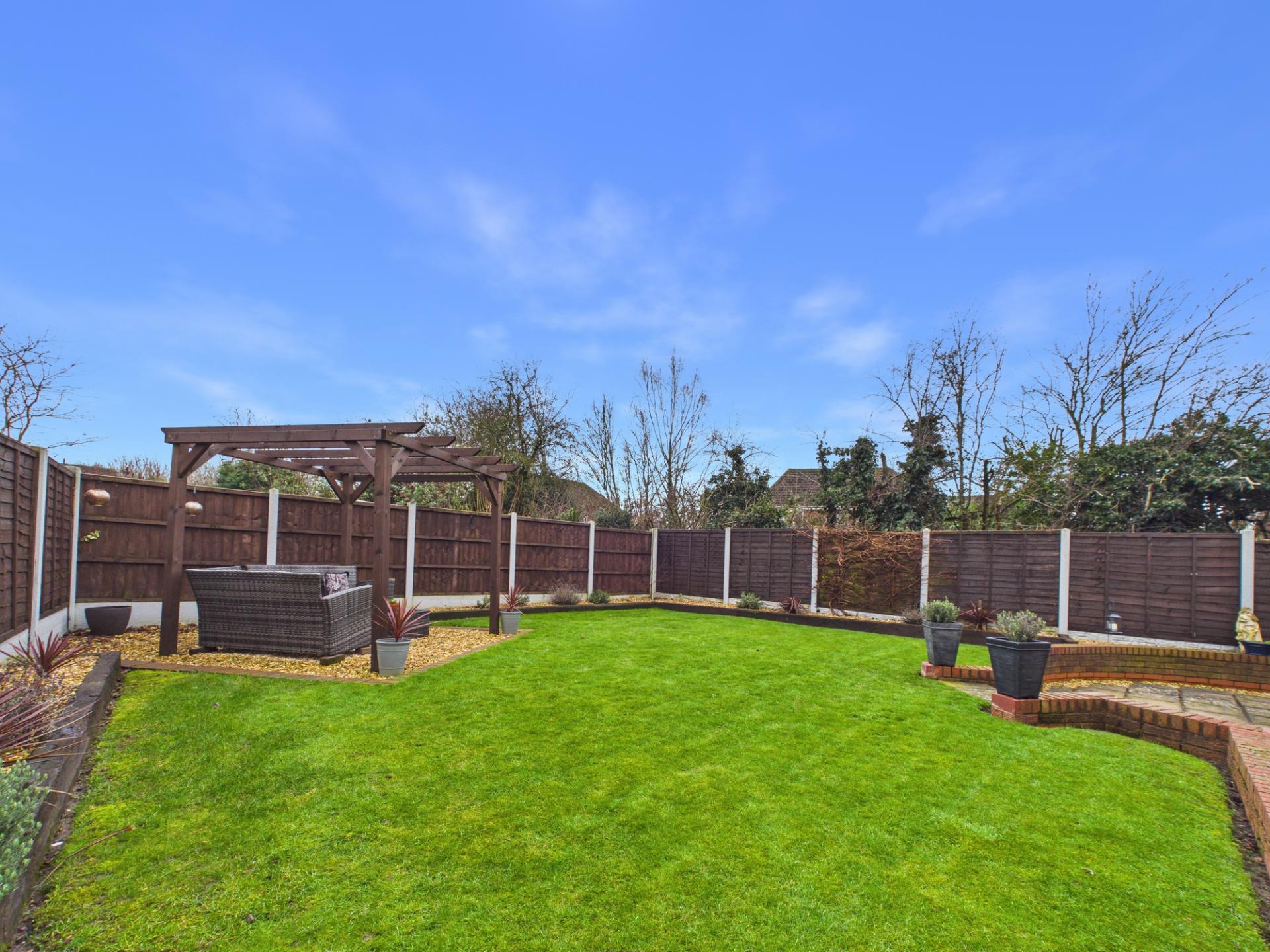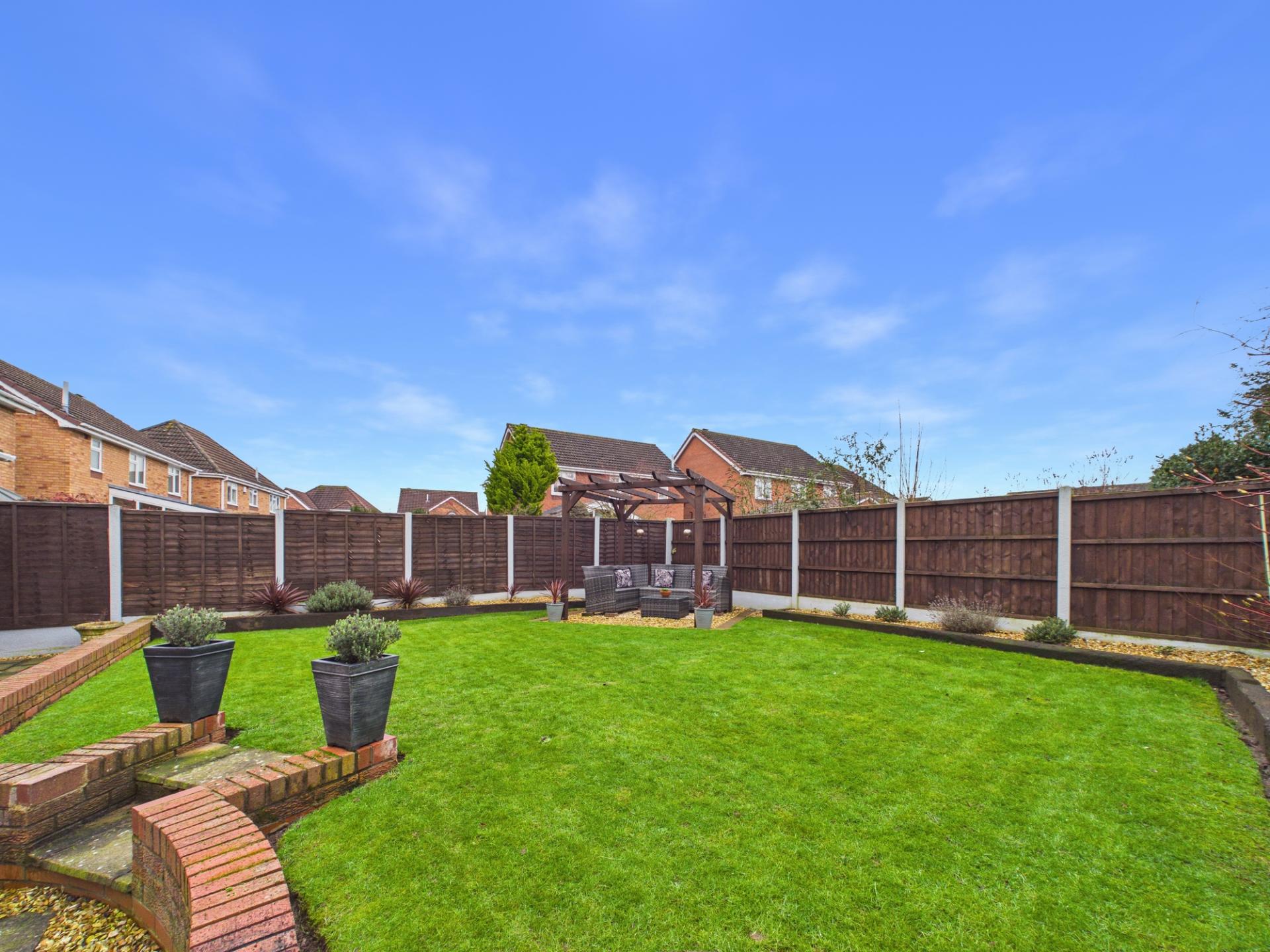 The beautifully landscaped rear garden is predominantly made up of laid lawn with paved patio & planted gravelled borders. A pergola presents the ideal location to while away a summer's day. There is useful side access to both sides of the home. There is an electric garage door & copious amounts of driveway space to the front.