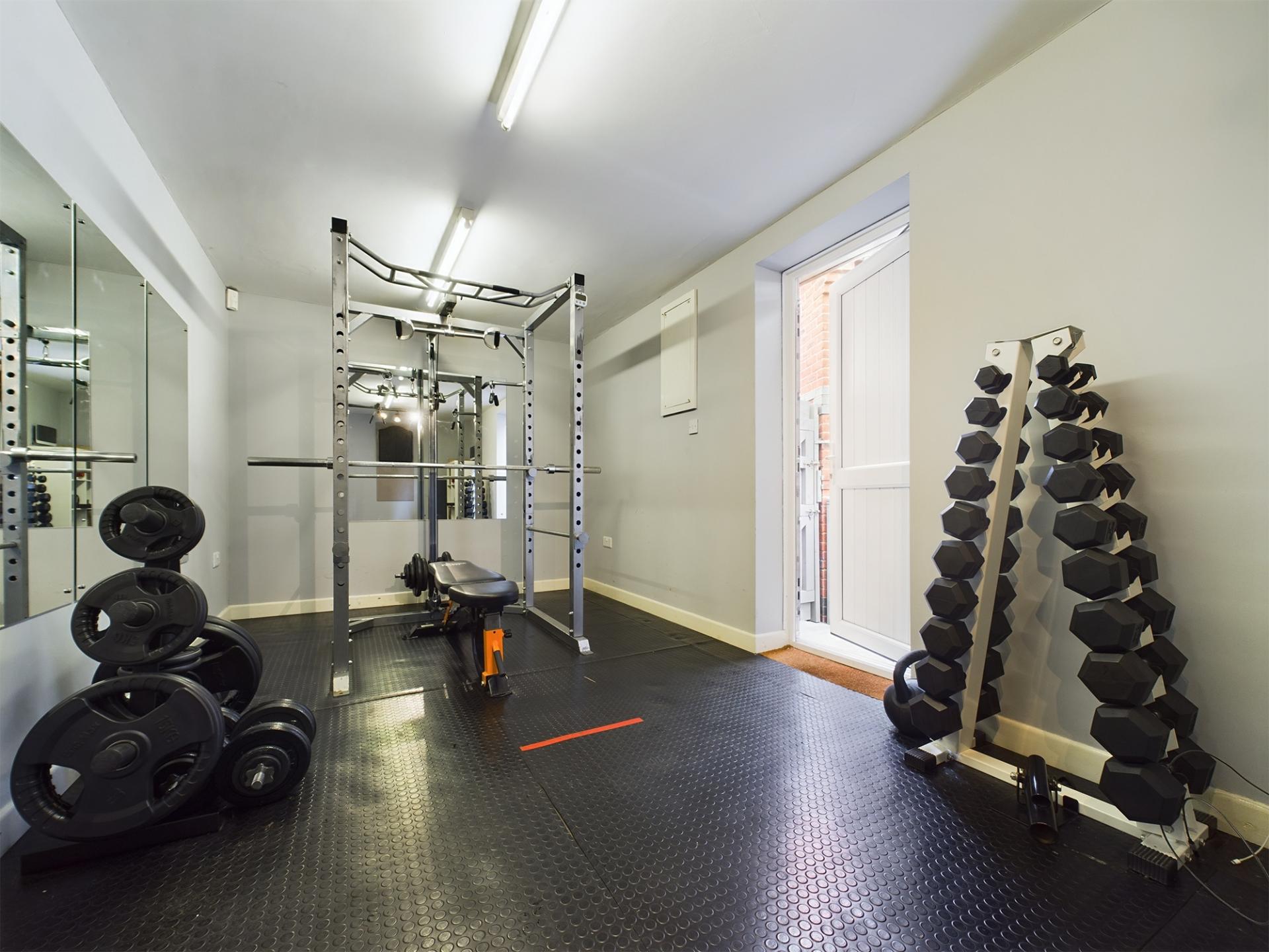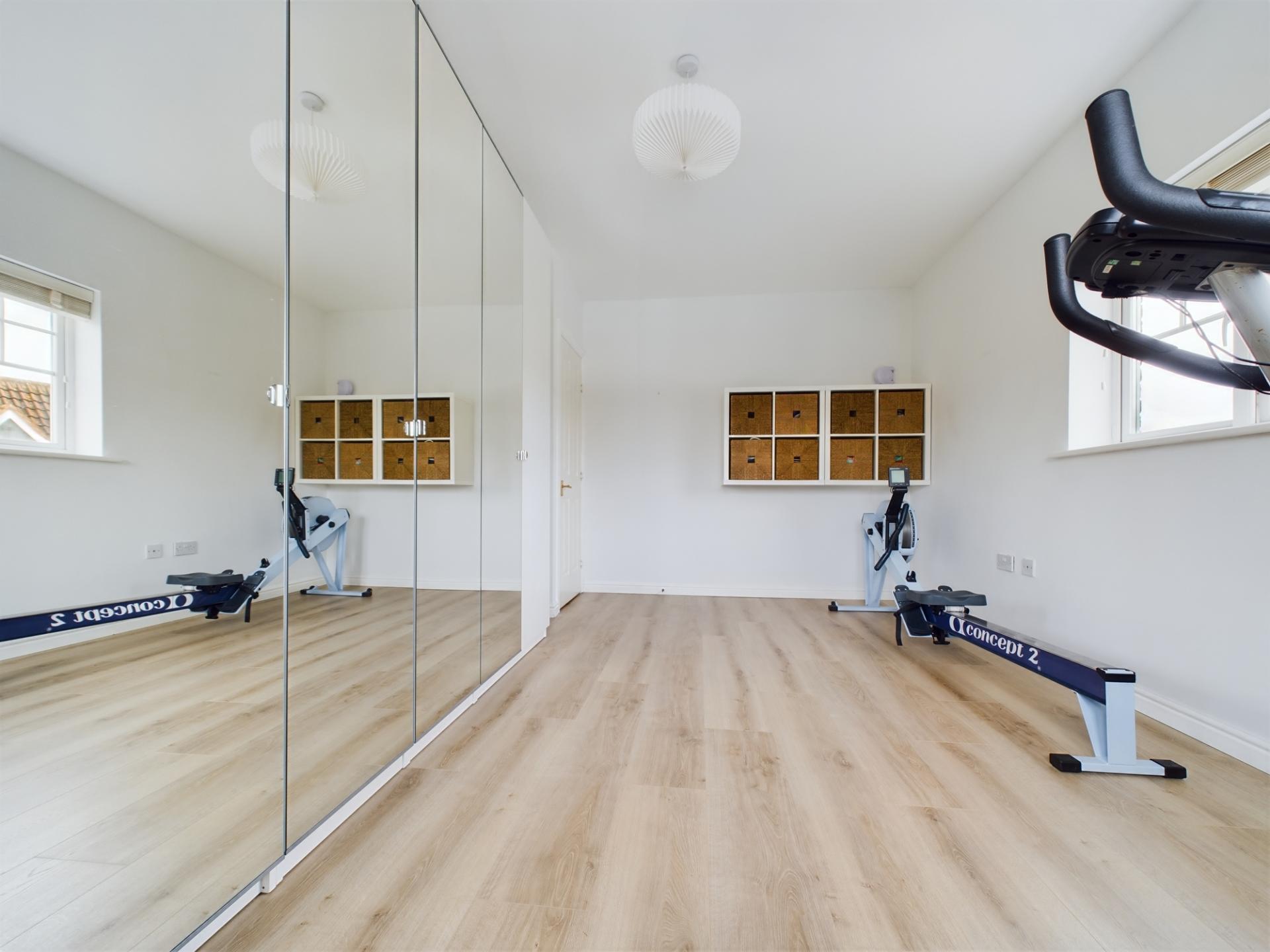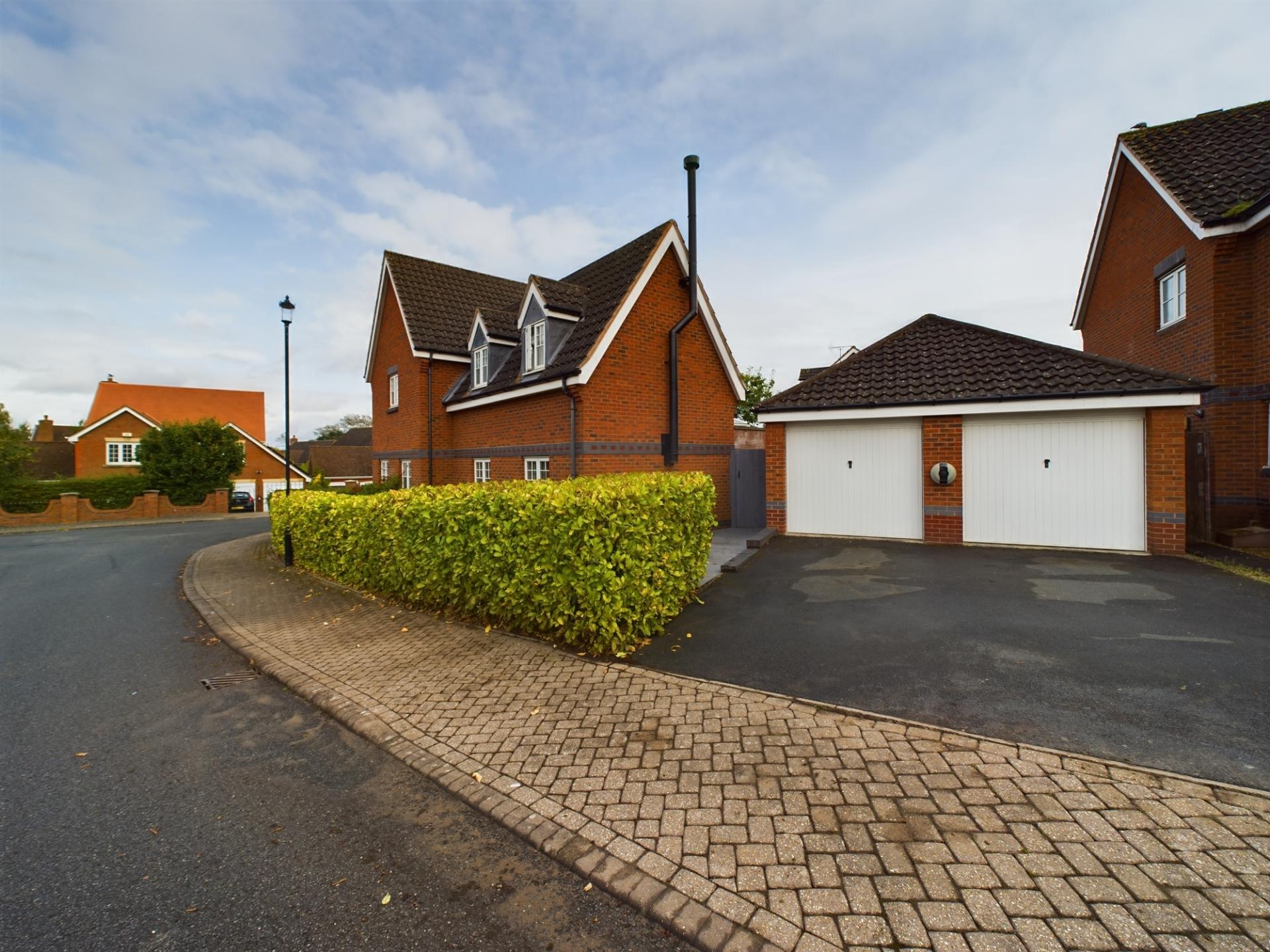 The property is approached over paved steps leading to the main entrance with a canopied porch. The plot is edged with ornamental walls and mature hedging. To the side of the property is a double garage with a tarmacadam driveway providing parking for two vehicles and EV charge point. The garage has up and over doors, light and power with provision for additional roof space storage. The present owner has partitioned the garage into a gym and storage area however this can be simply converted to a garage only space.