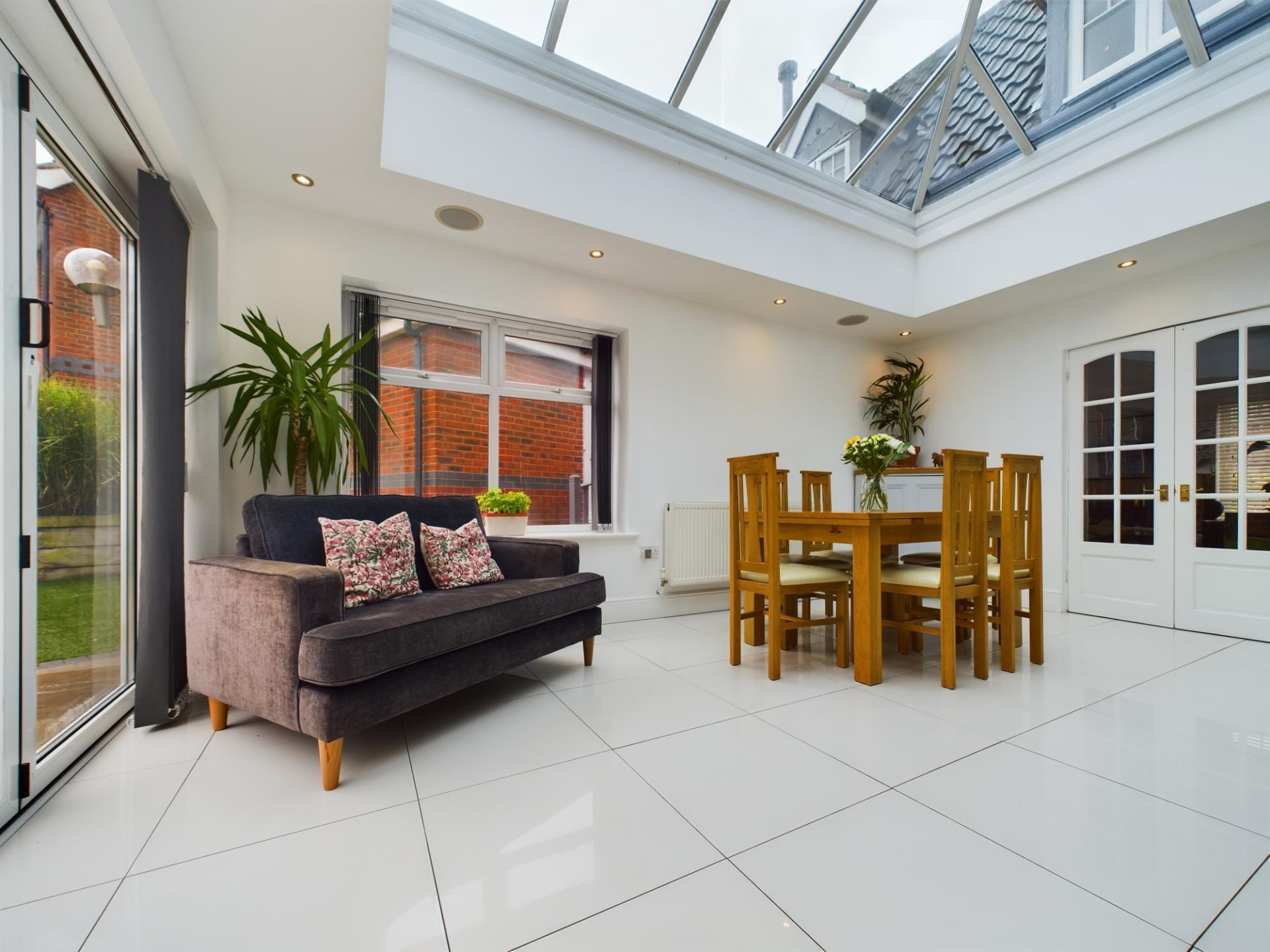 This executive family home is presented to a high standard and is positioned on a substantial corner plot within the sought after area of Apley. Accommodation throughout is spacious and well proportioned while three reception rooms provide flexibility of space to suit modern family living. In the heart of this home is a superb orangery which is incorporated into the kitchen resulting into a contemporary, open plan kitchen/living/dining space filled with an abundance of natural light from dual aspect windows including bi-fold doors. The private rear garden is of low maintenance having an artificial lawn, a large paved terrace and raised beds. The property benefits from a large driveway with EV charger and double garage which is currently partitioned and used as a gym and a store room by the present owners.