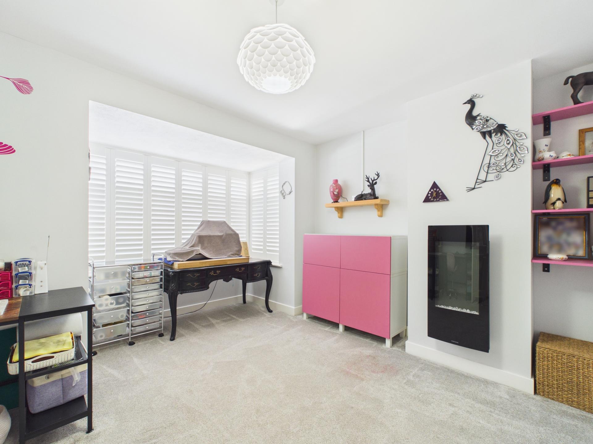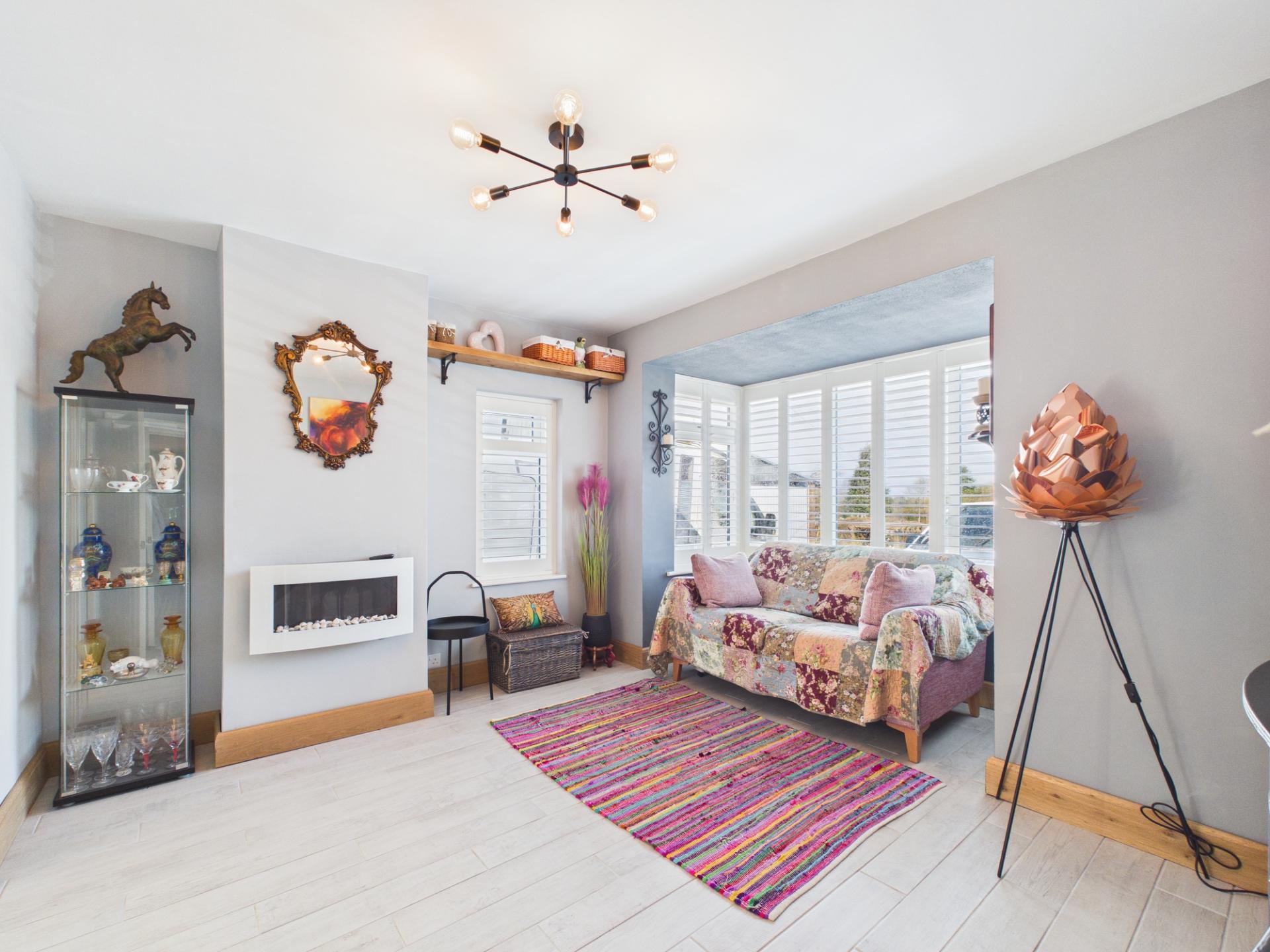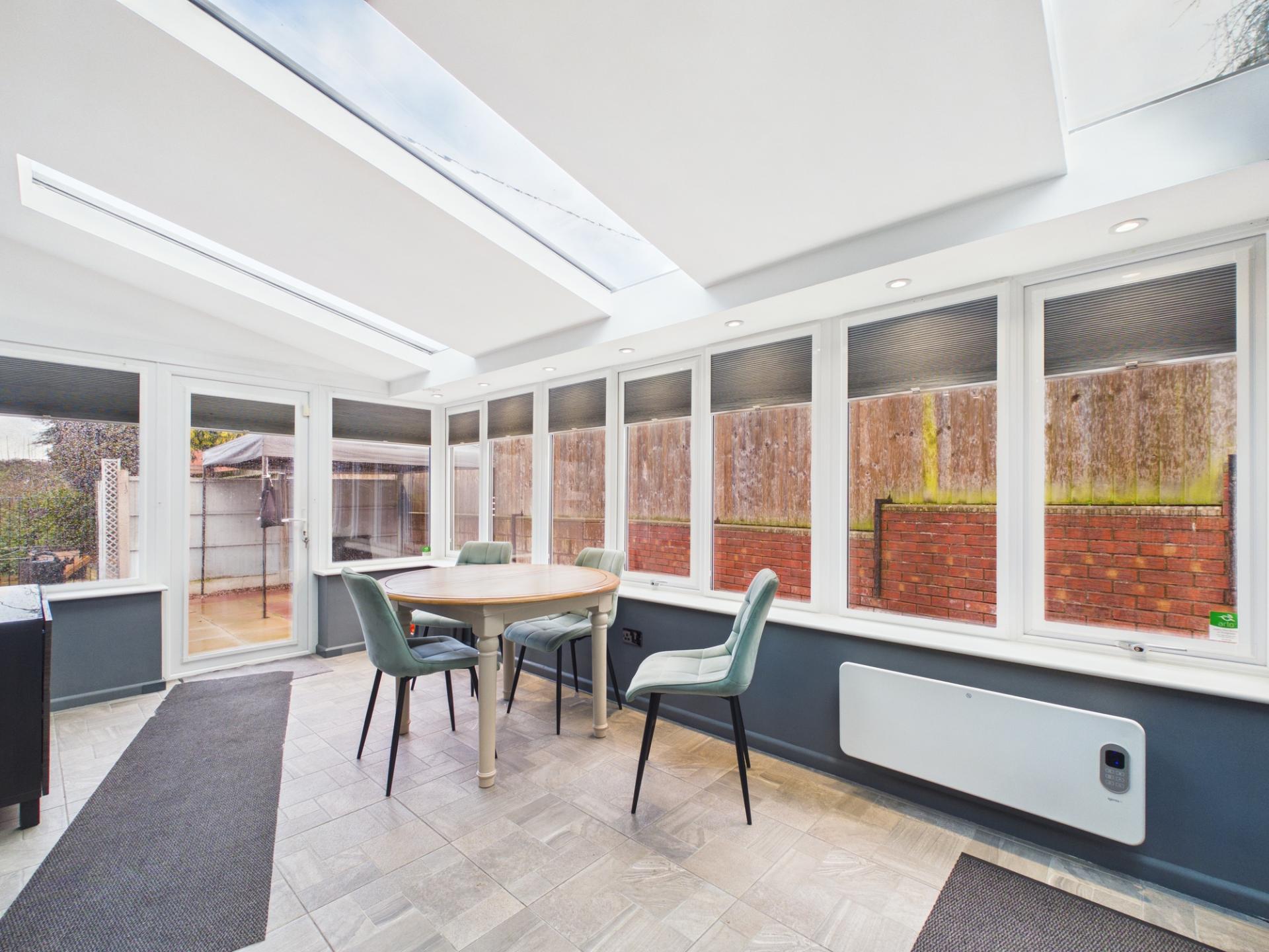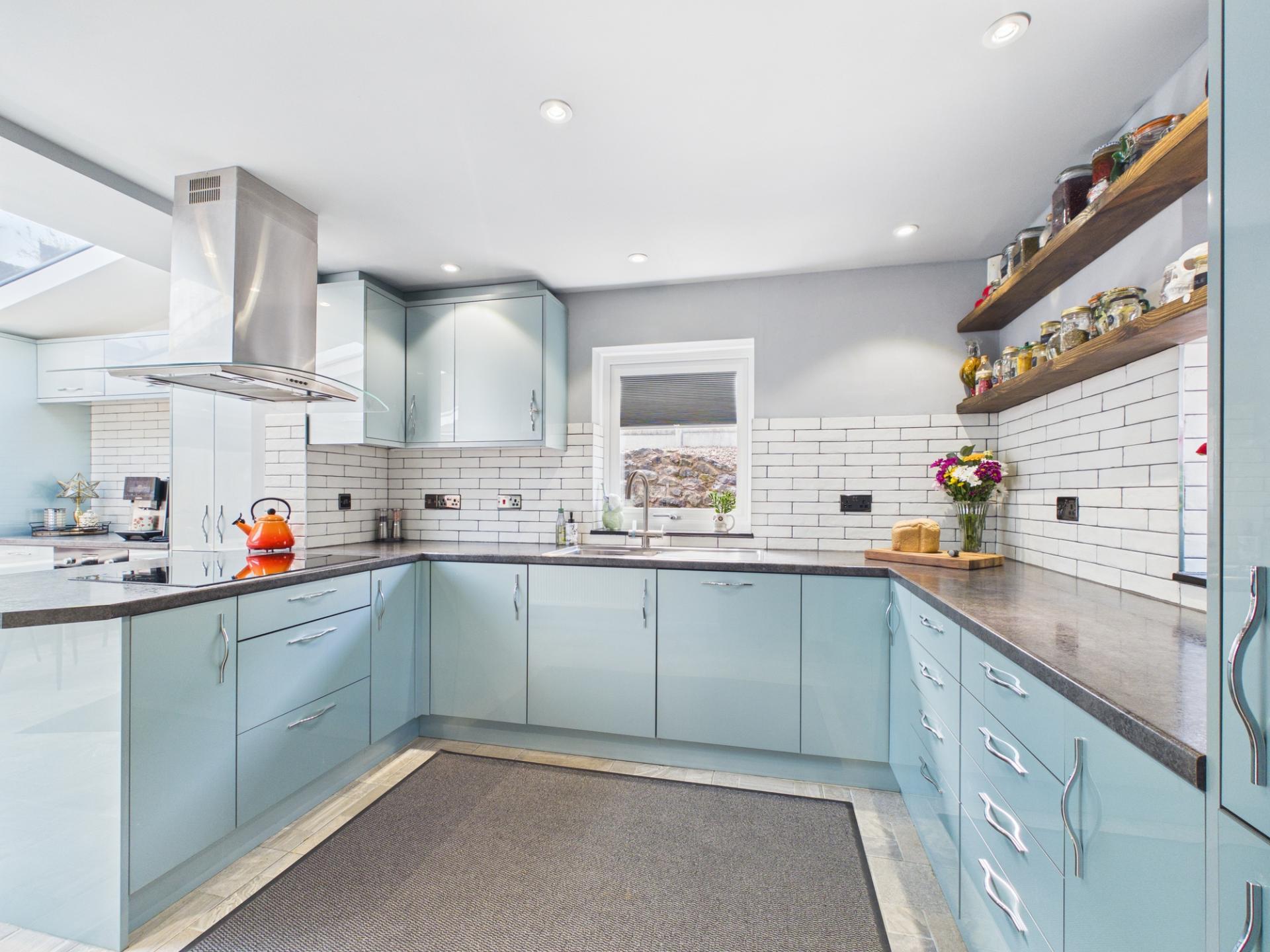 The ground floor offers a comfortable accommodation with a ground floor bedroom with bay window, two large reception rooms, featuring a wood burner, bay window, and French doors opening onto the garden. There is also a utility room, a handy ground floor Wet Room/WC, and a stylishly fitted kitchen/dining room featuring high gloss units, an oven, a hob, and skylight windows that bathe the dining area in natural light.