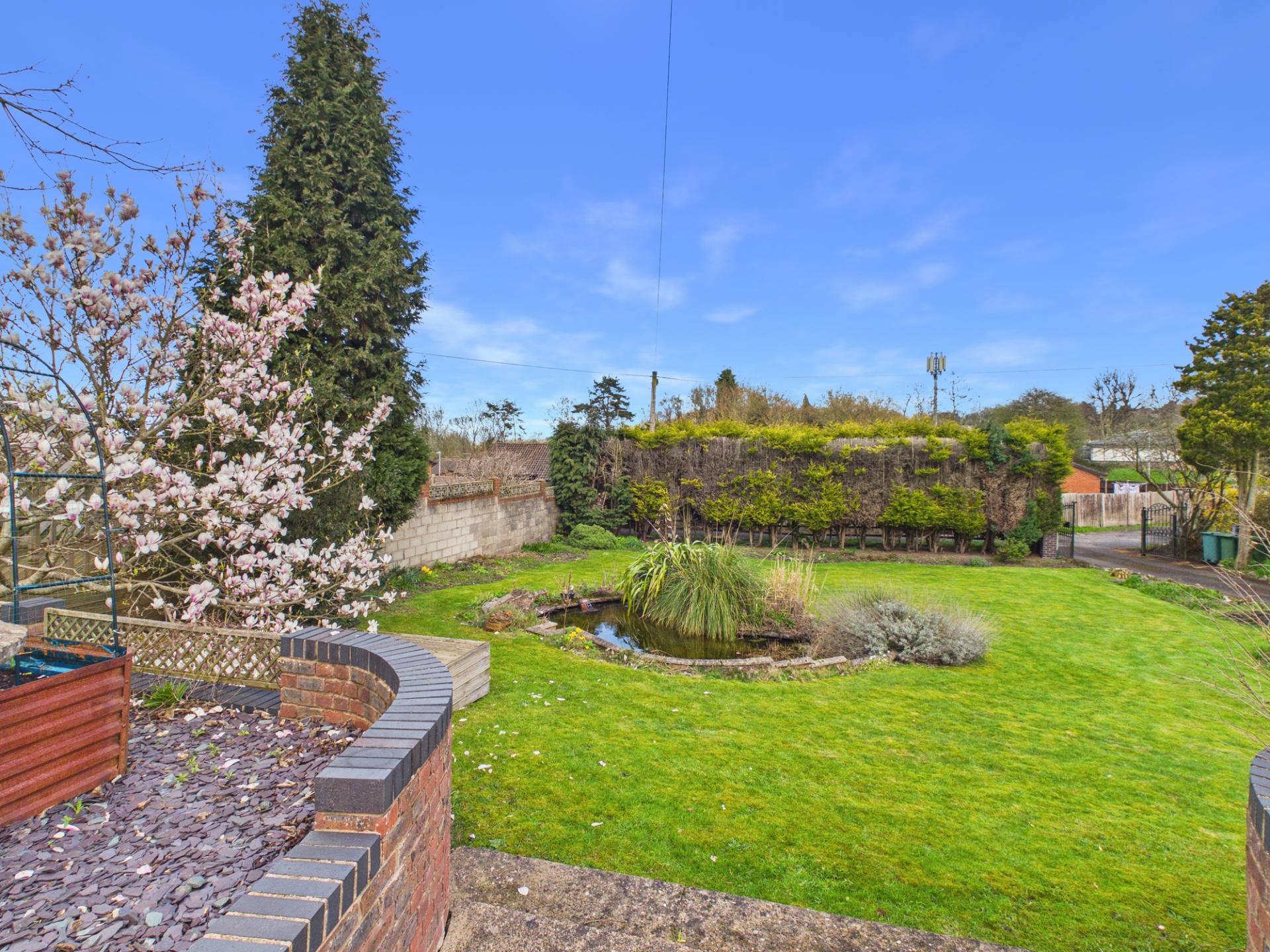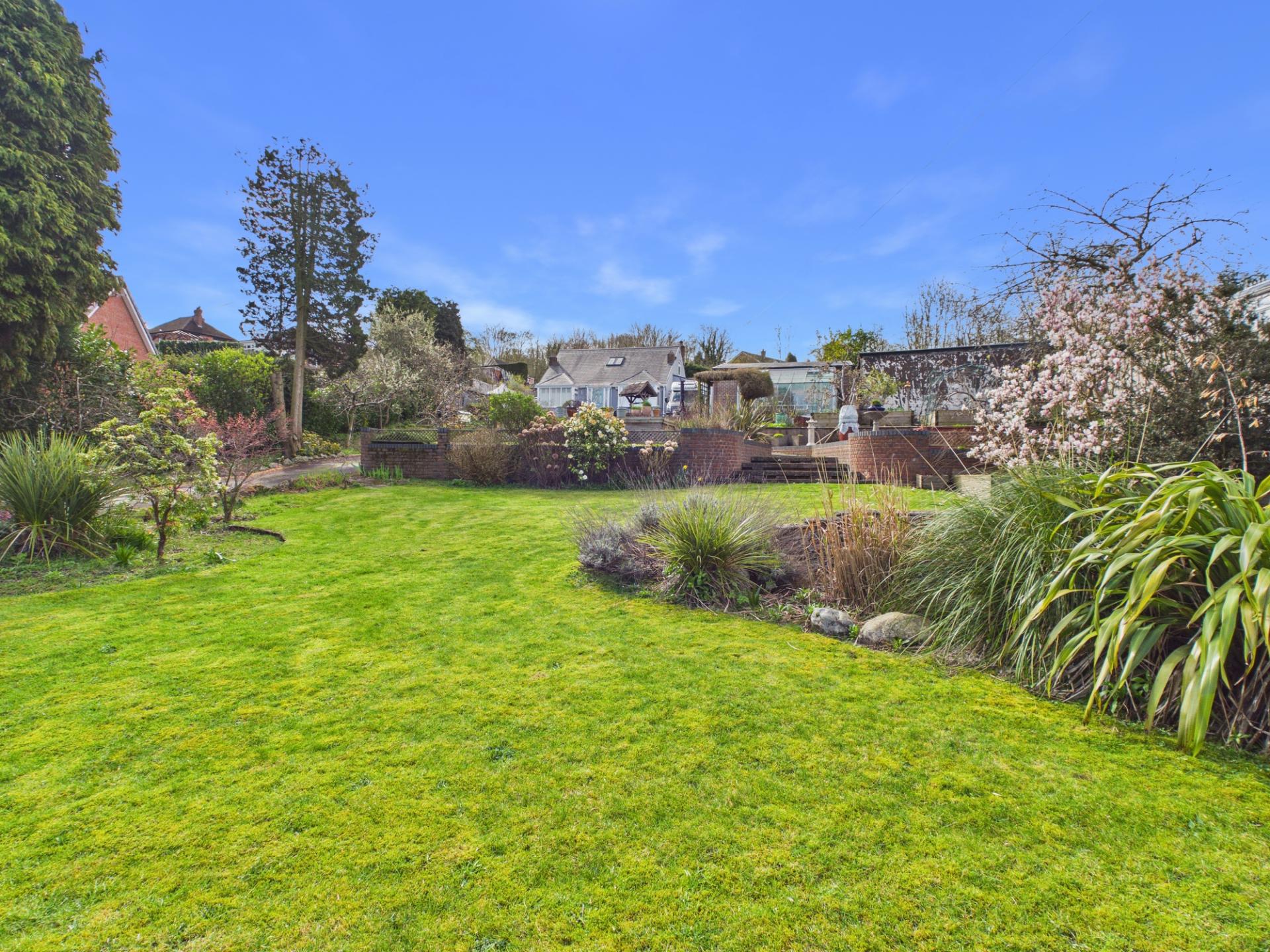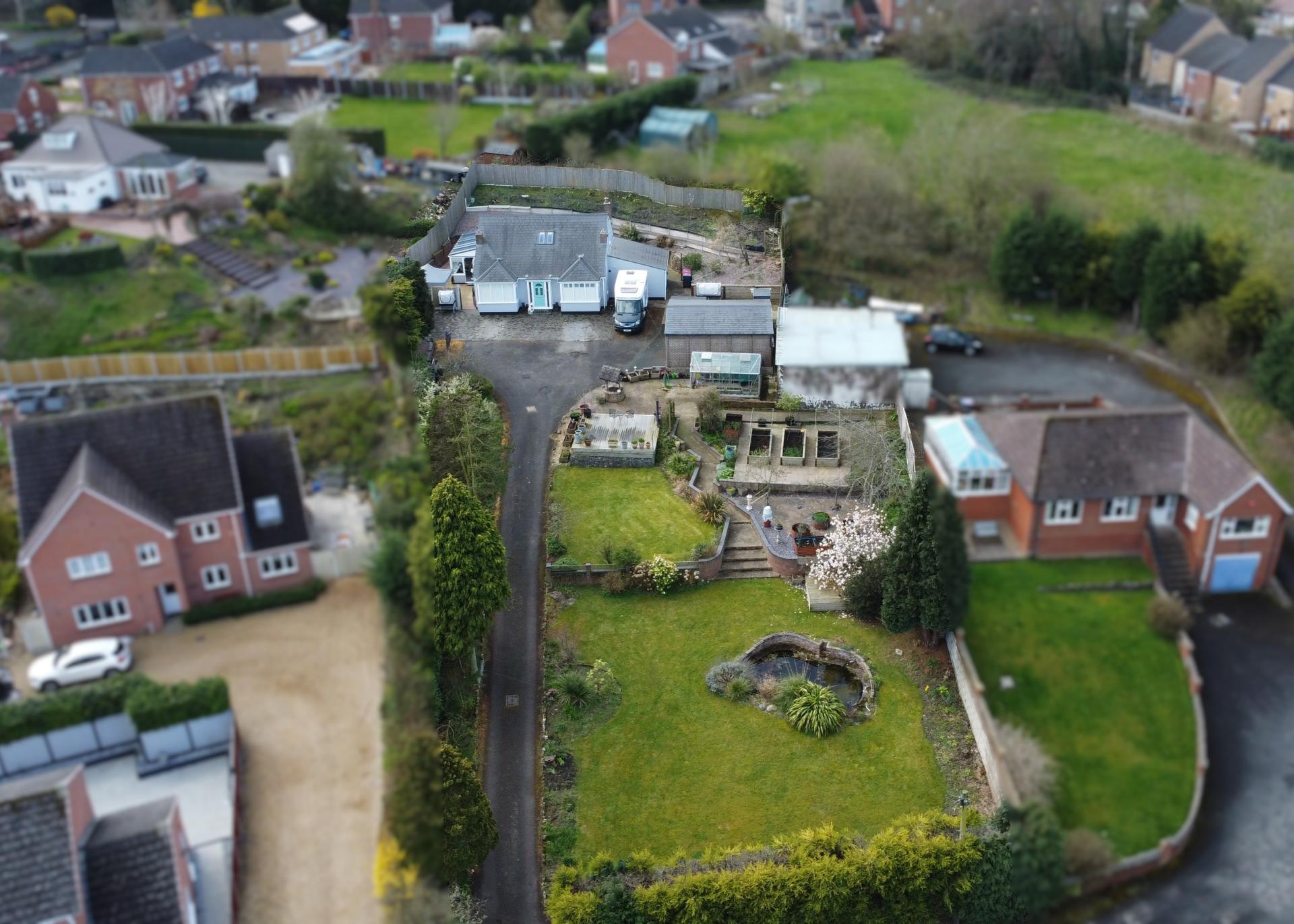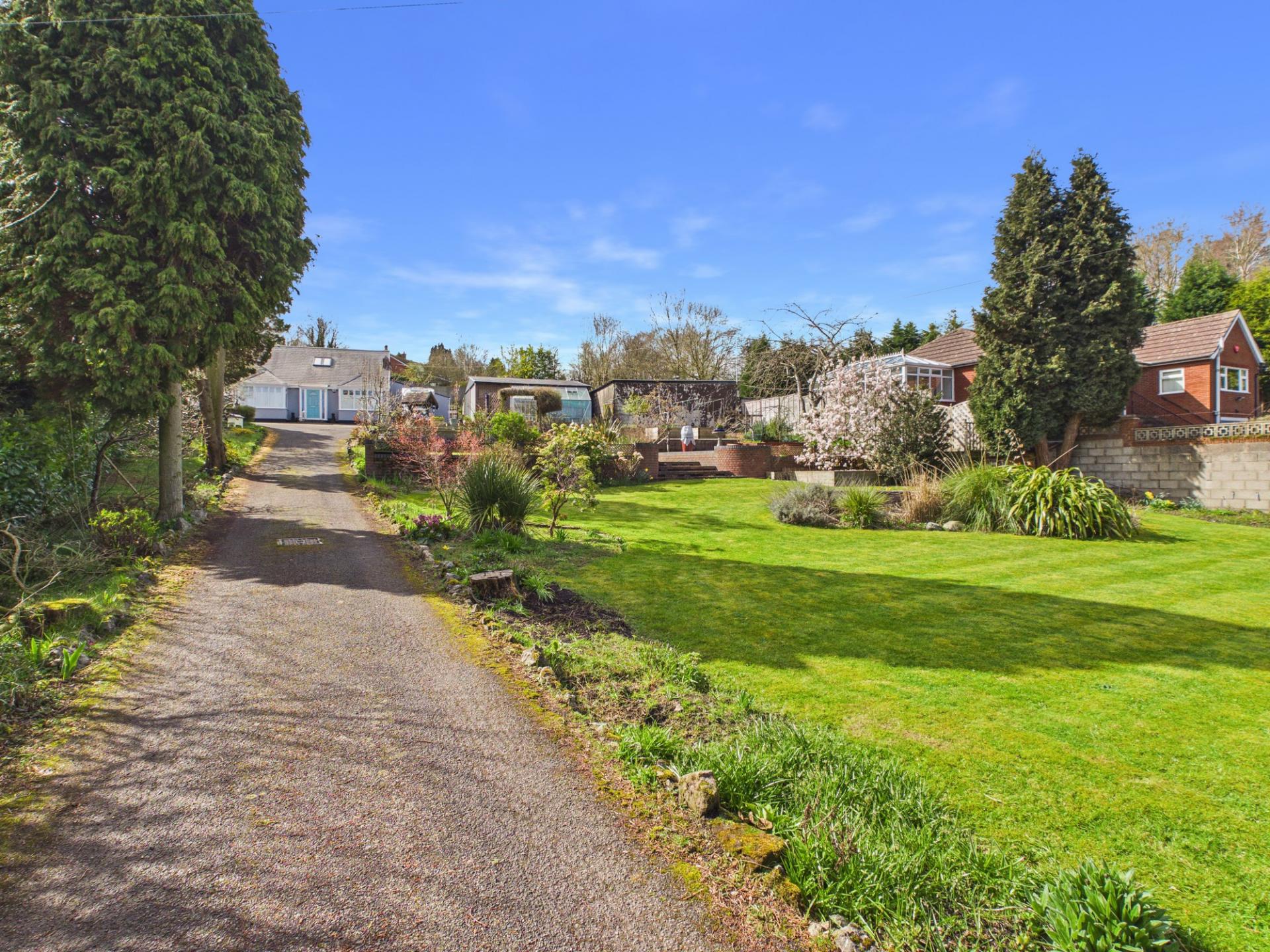 The property is approached along a long gated driveway within generous landscaped gardens incorporating a pond, laid lawn area, detached double garage and access to the side patio, which leads to a tiered rear garden, which provides access to a further store/hobbies room.