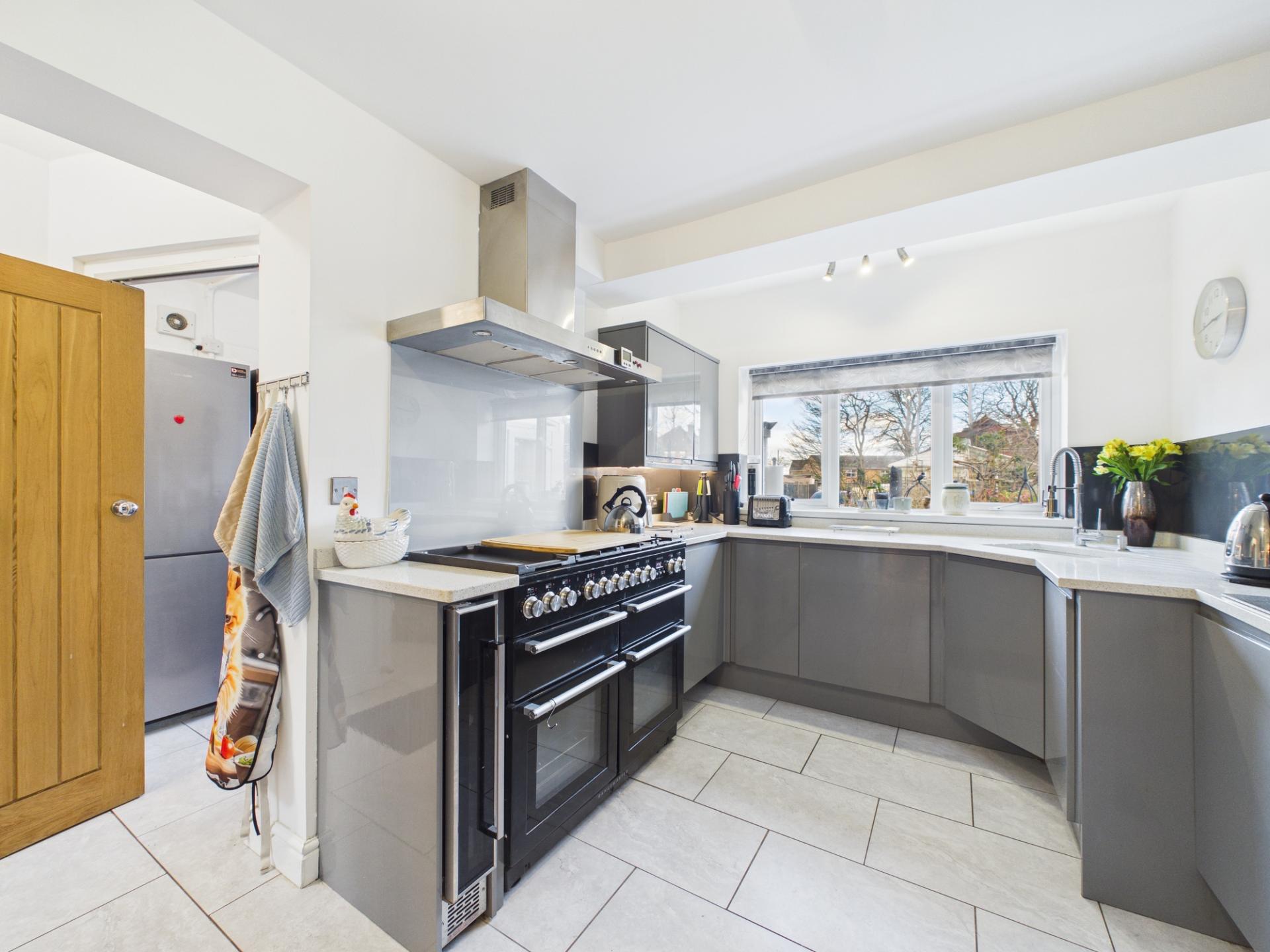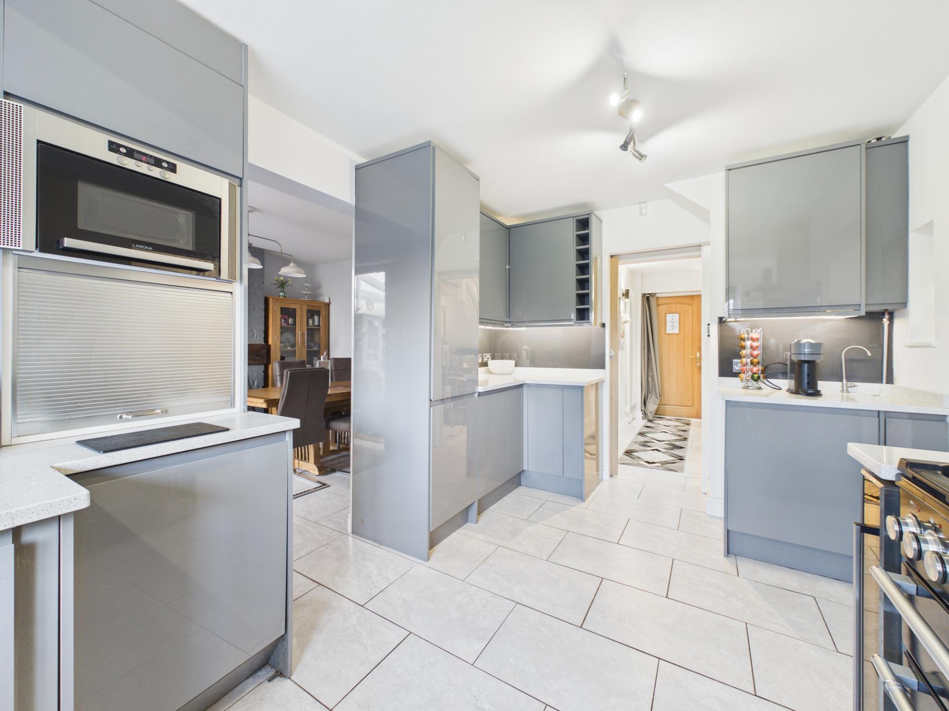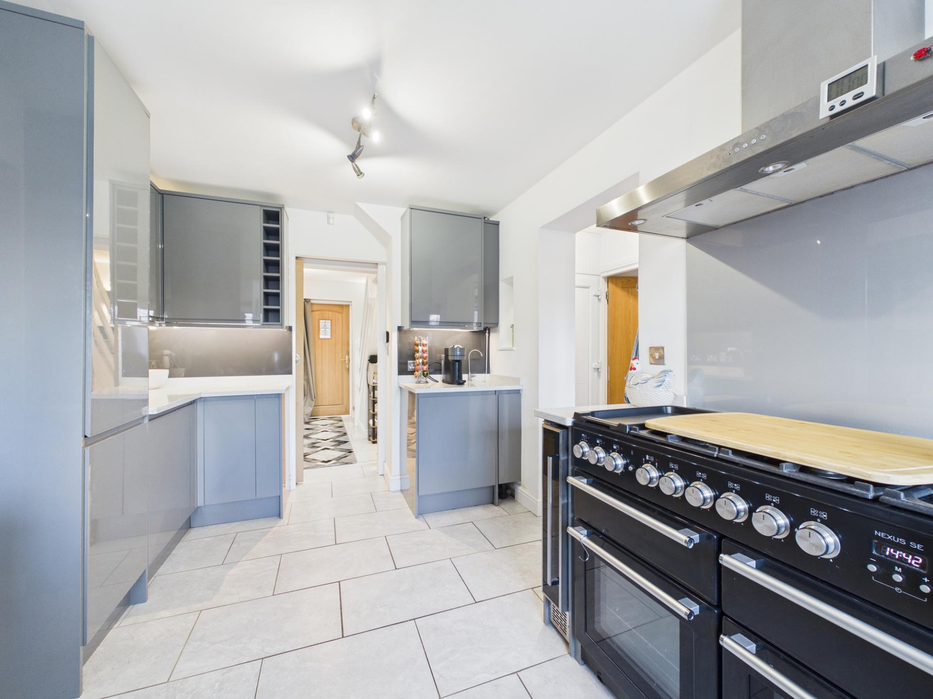 Set over three floors, an entrance porch leads through to a welcoming hallway enabling access to the kitchen, living room & staircase ascending to the first floor. The living room flaunts a contemporary fireplace, a front garden view and offers an intimate space for relaxation. A functional kitchen kitted out with contemporary base and wall units, Rangemaster cooker, integrated dishwasher, microwave & wine cooler and space for further appliances, shares a pleasant outlook of the rear garden. The utility is home to a wall-mounted boiler, space for appliances & further cupboard space. Adjacent, is a WC & external access. There is a beautiful fireplace in the dining room with the conservatory accessible through elegant French doors - a perfect place to bathe in sunlight whilst enjoying garden views.