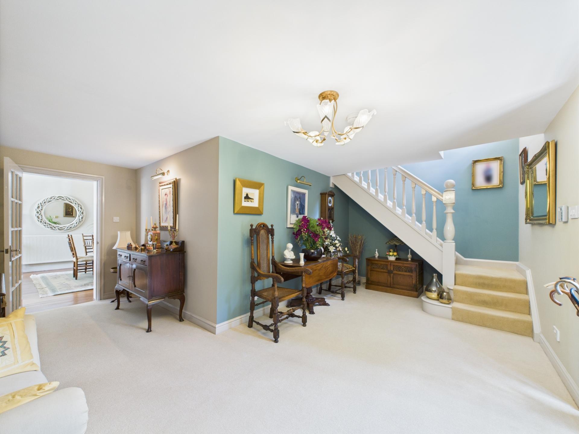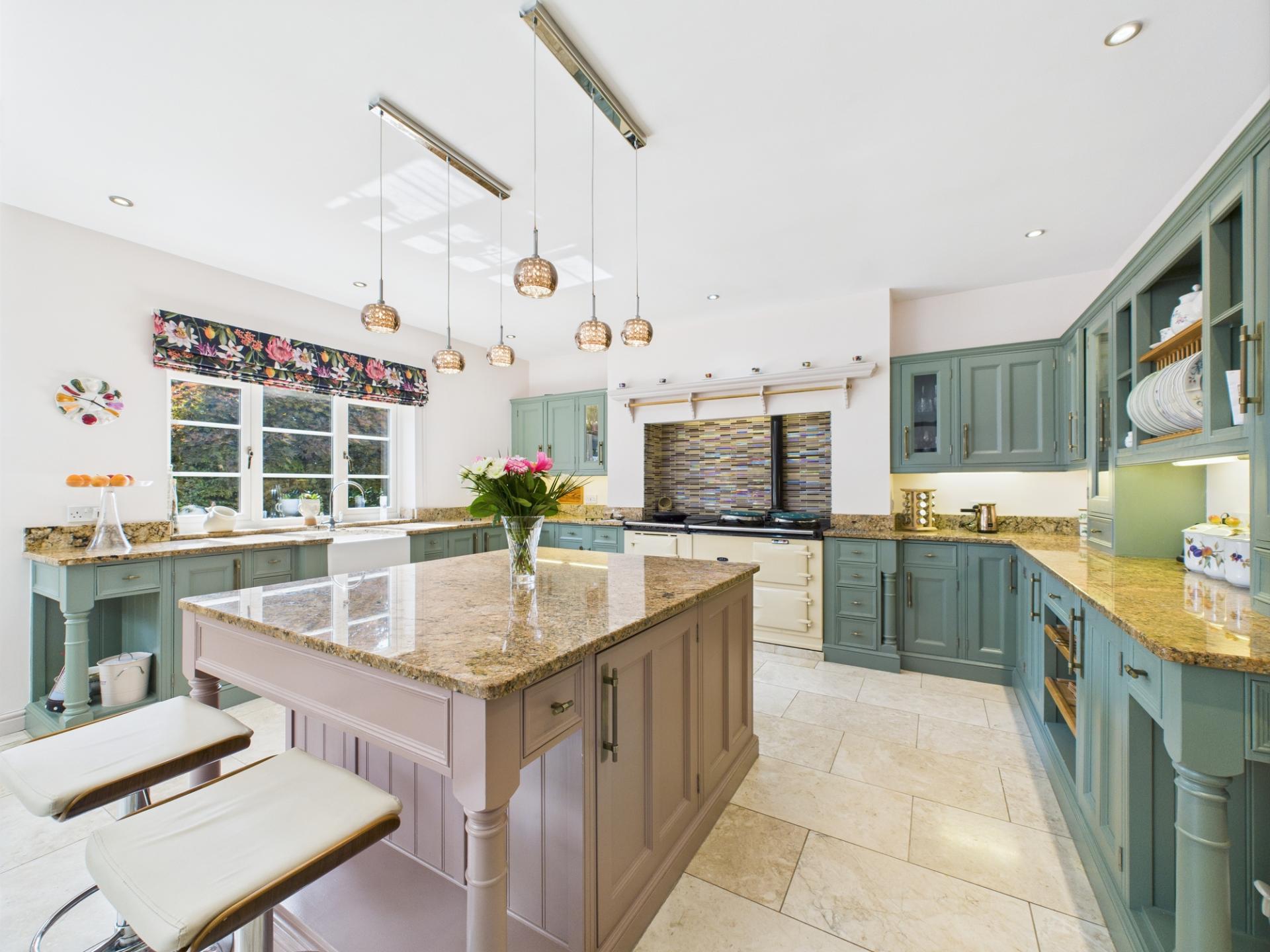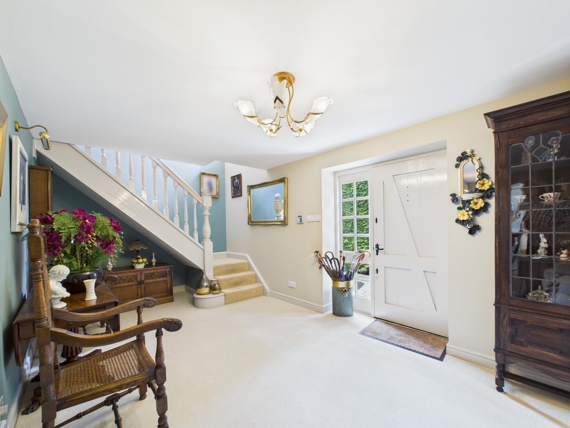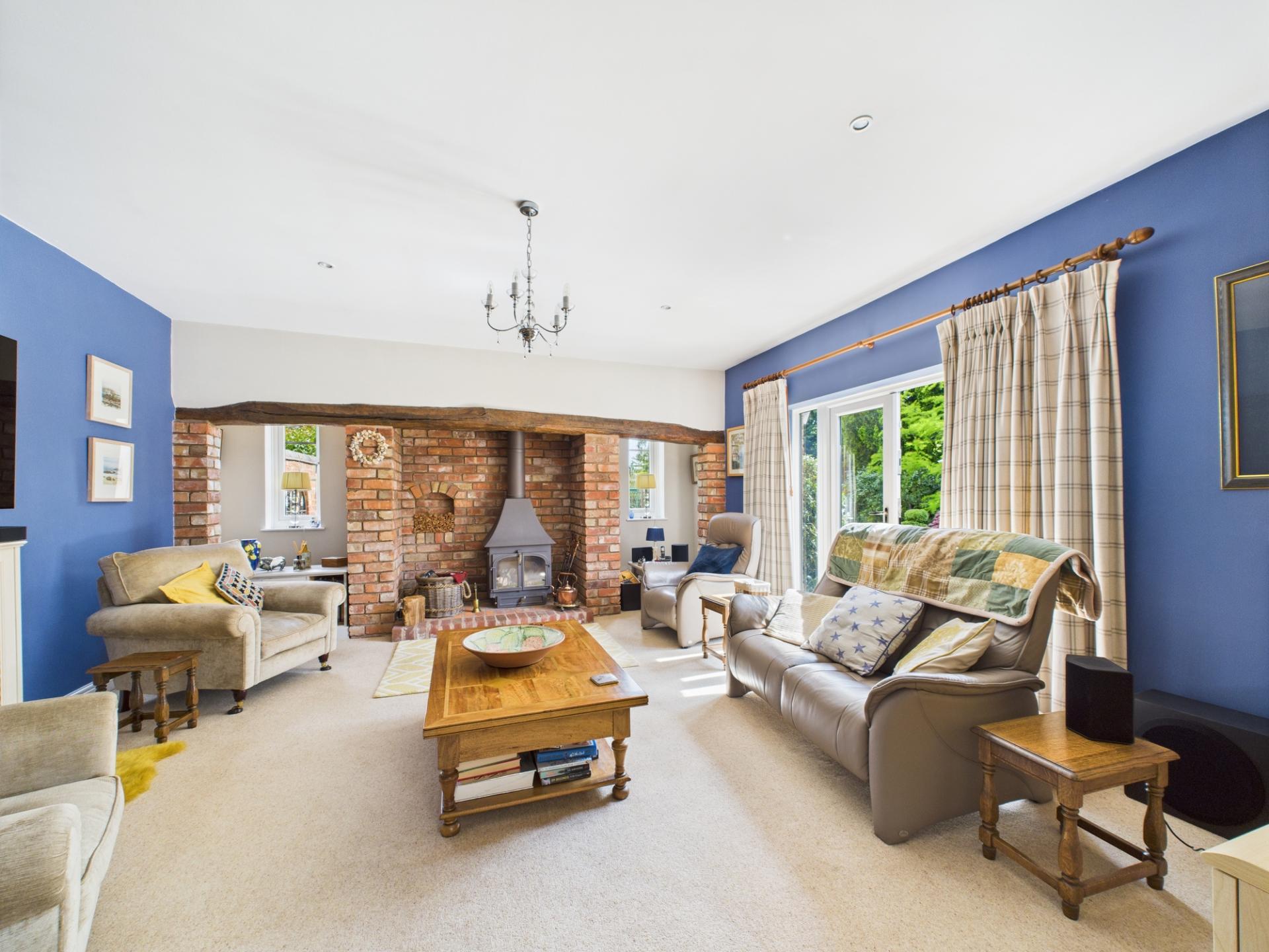 L-shaped hallway, kitchen/breakfast room, utility room, sitting room, living room/dining room with a vaulted ceiling, cloakroom/WC, galleried landing, five bedrooms; four with en-suite facilities & master bedroom with a dressing room, stunning gardens and grounds, detached outbuilding (currently configured as an office and store rooms), extensive driveway, EPC Rating: Pending.