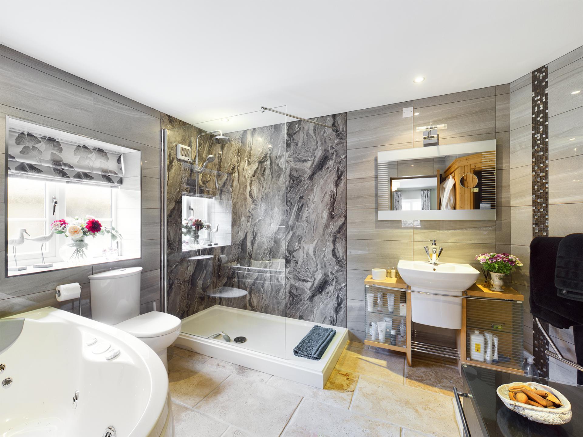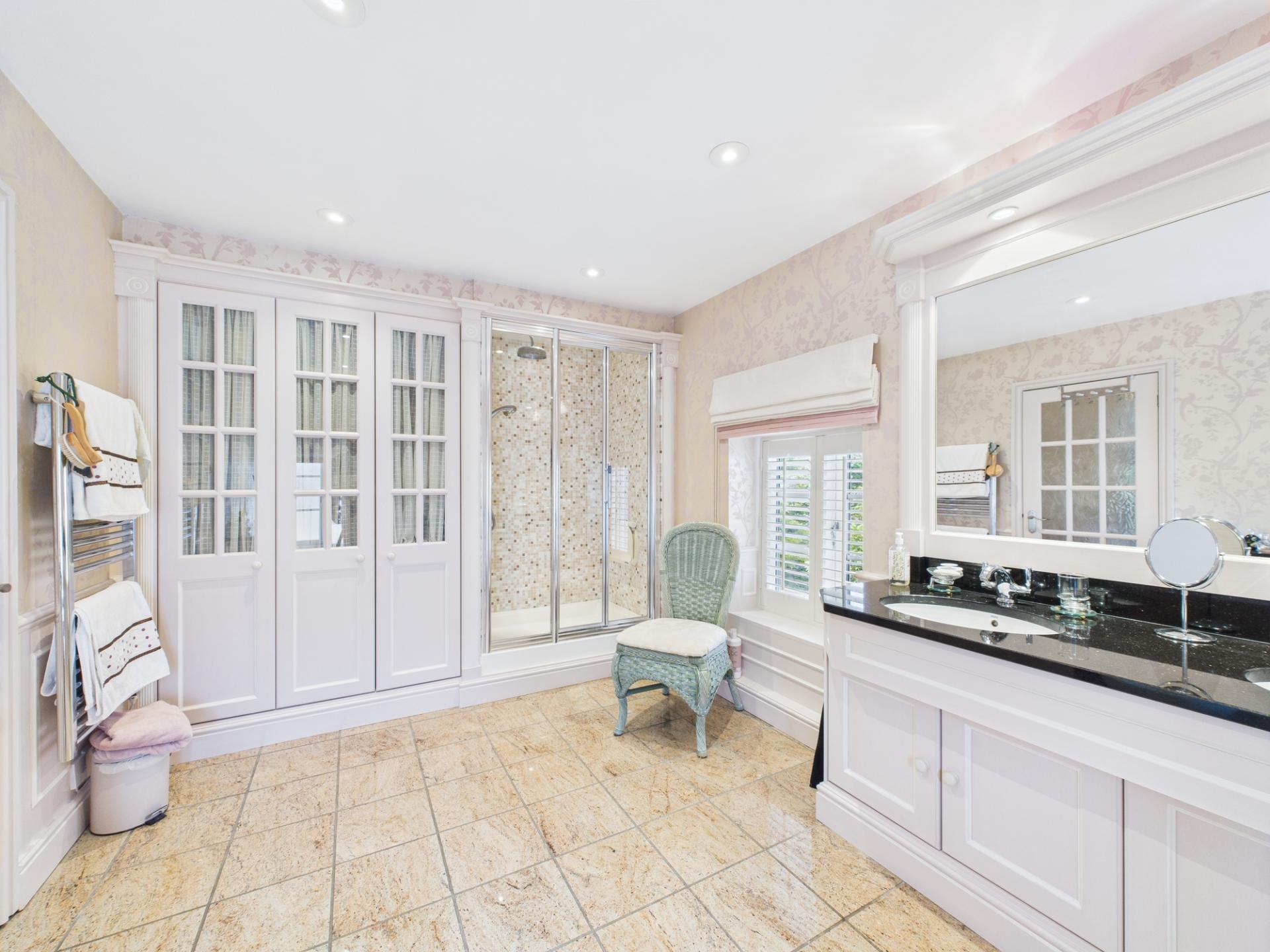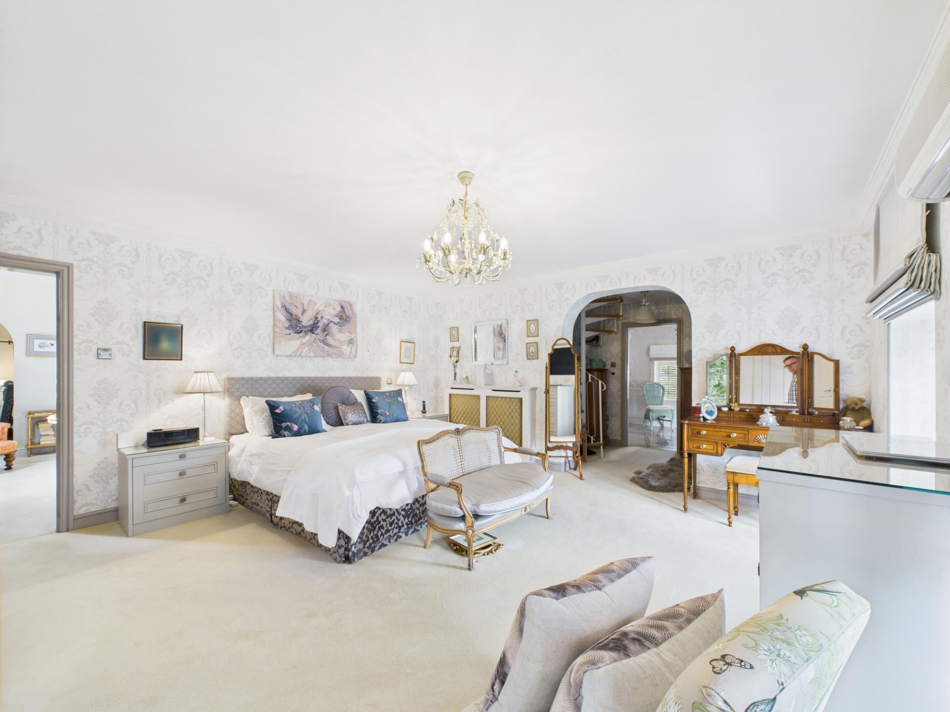 A particular feature to the first floor is the landing which looks out towards the vaulted ceiling and living area and gives access off to a further three bedrooms; all of which have en-suite facilities. The master bedroom also having a dressing room area with a spiral staircase leading up to the attic space, which is currently used as an extended dressing area & storage facility. Extensive fitted wardrobes are in the two main first floor bedrooms together with a fitted cupboard on the landing.