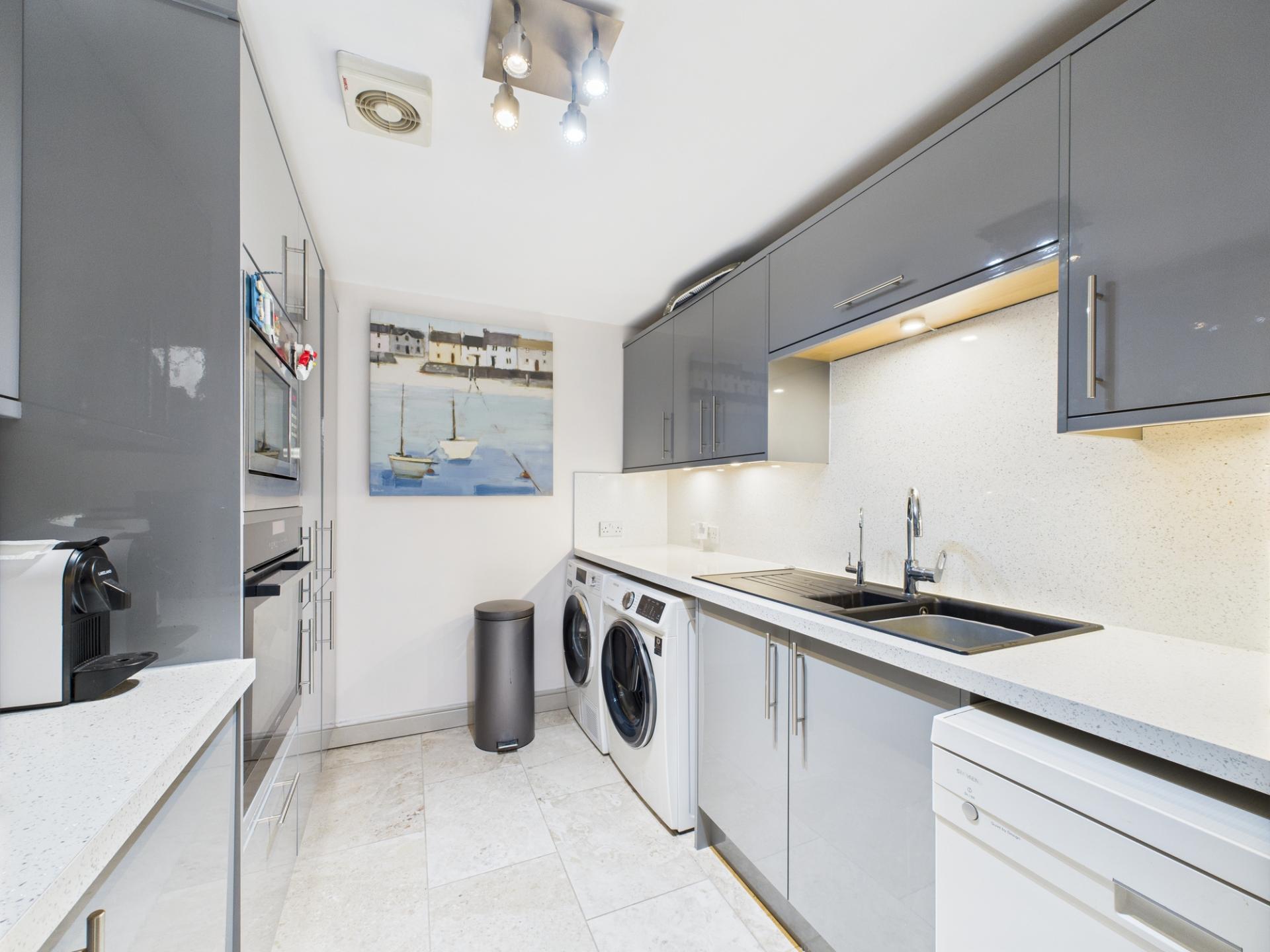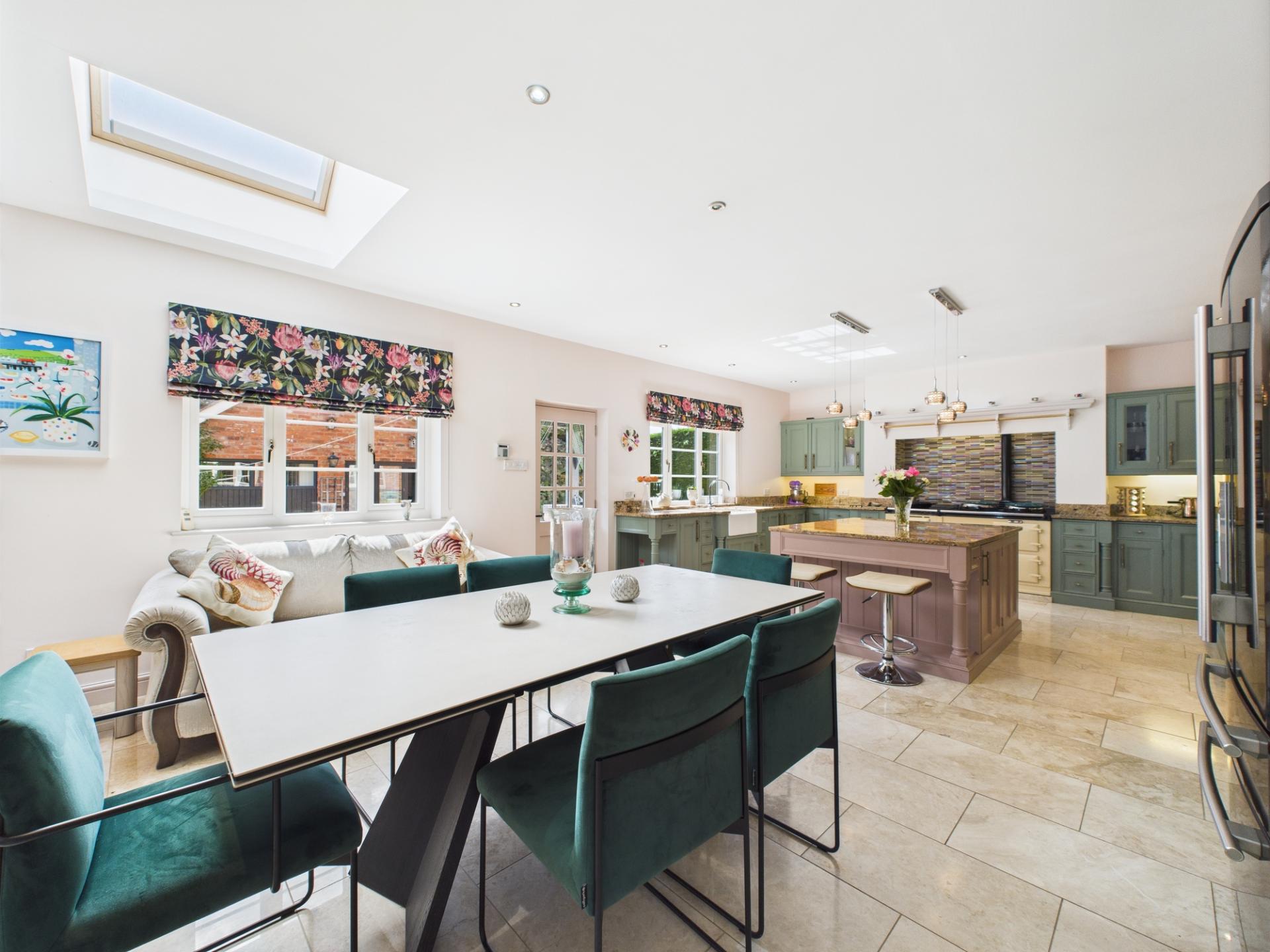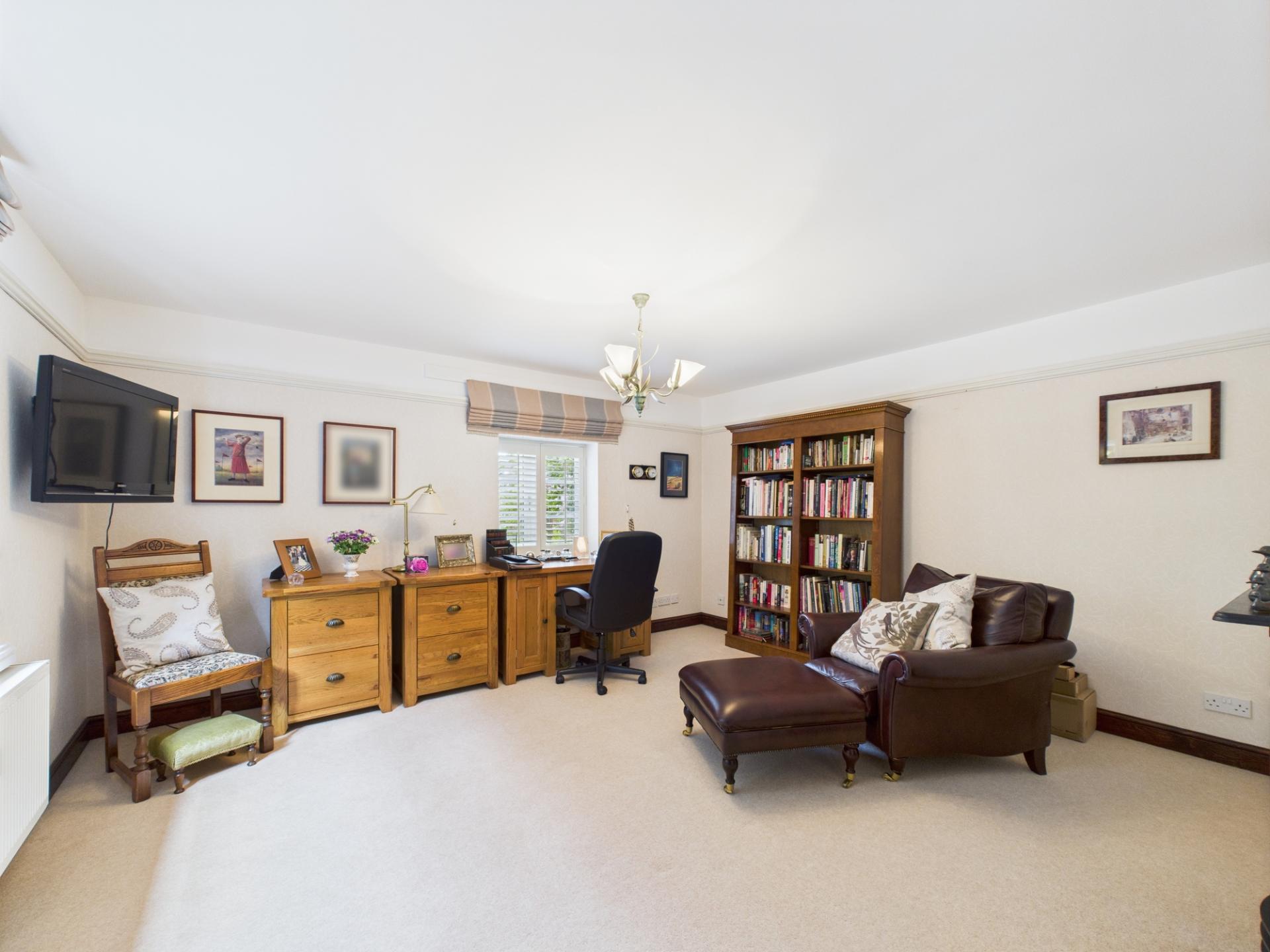 Is a detached former coach house and offers stunning accommodation throughout and generous accommodation for a family including many character features. The property is approached into an entrance hallway which has a staircase ascending to the galleried landing and gives access into the bedroom/study and open-plan living room and dining room. A particular feature to the living room is the beautiful featured window, brick inset wood-burning stove and vaulted ceiling looking up towards the galleried landing and opens through to the dining area, also providing access off to a cloakroom/WC, fitted cupboards, breakfast/kitchen and ground floor bedroom which has an en-suite bathroom and a built-in sauna. The breakfast/kitchen is beautifully presented with an extensive range of bespoke kitchen units with an AGA cooker, central island, display cabinets and Belfast sink. The tiled flooring continues through to a useful utility room which has a range of contemporary high-gloss base and wall cupboards and is also used as an additional cooking area with integrated appliances and space/provision for a washing machine, tumble dryer and dishwasher. Tiled flooring then continues through to the dining area with an archway leading through to the sitting room. The sitting room has a brick inset wood-burning stove and French doors out to the rear garden.