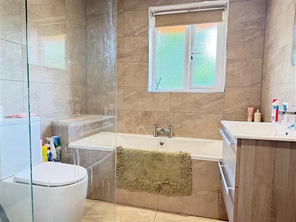 Frosted UPVC double glazed window, central heating towel rail, fully tiled and spotlights.