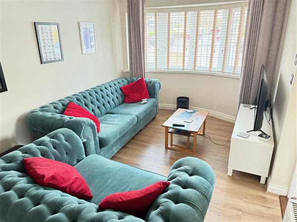 Front facing, UPVC double glazed bay window, radiator and wood effect flooring.