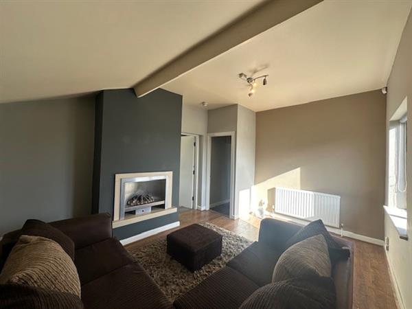Side facing uvpc double glazed window, radiator, corner sofa set, inset living flame gas fire with surround and laminate flooring throughout.