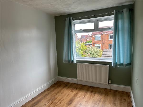 Rear facing uvpc double glazed window, radiator and laminate flooring.